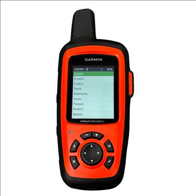 The Garmin inReach Explorer+ is a rugged satellite communicator and GPS device designed for outdoor adventurers. Featuring global Iridium satellite coverage, it enables two-way messaging and SOS emergency alerts from virtually anywhere on the planet. The device includes GPS navigation with preloaded maps and weather forecast updates, making it an essential tool for hiking, camping, and remote exploration. Its durable orange and black housing is waterproof and built to withstand harsh environments, providing reliable communication and navigation in the most challenging conditions.