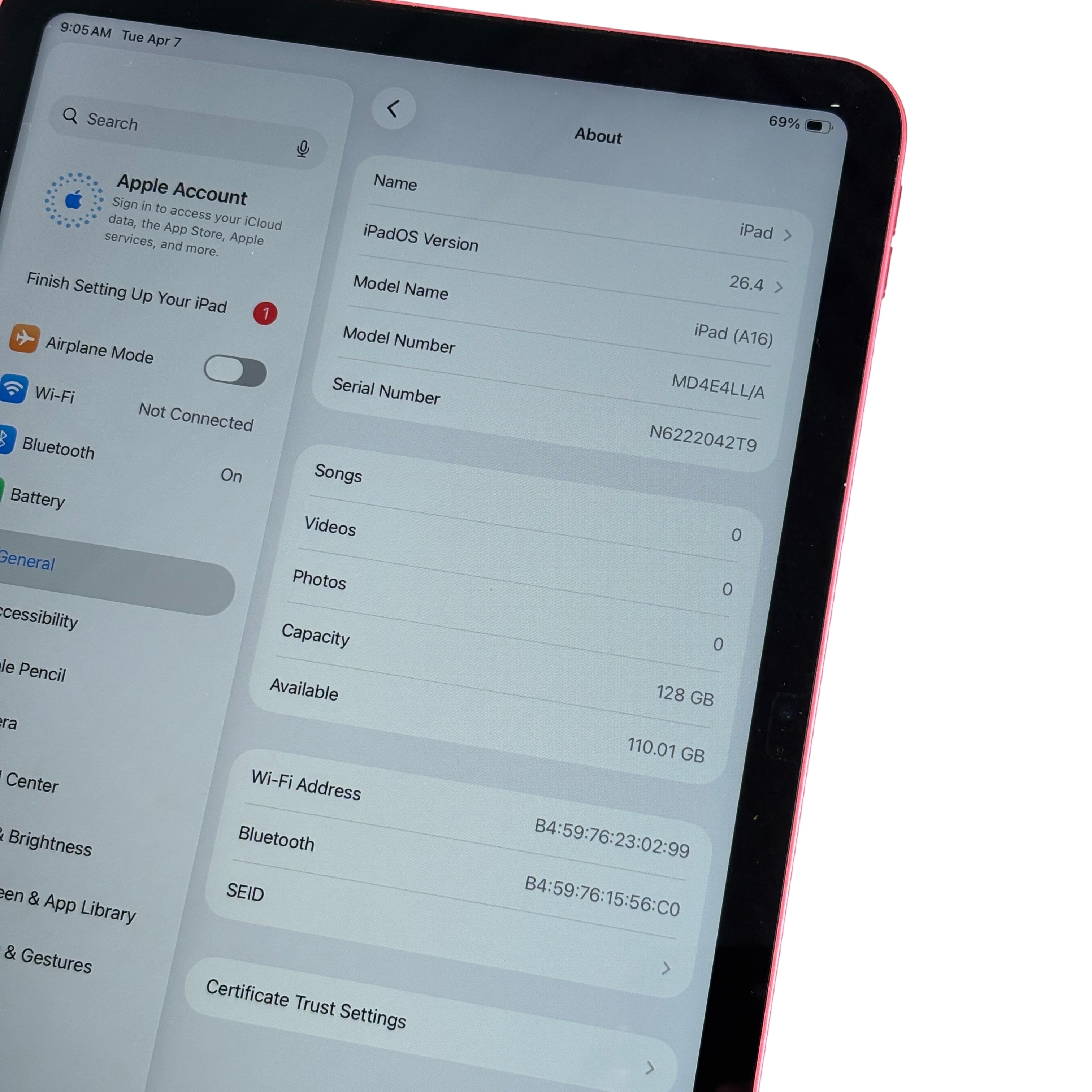 Model: iPad A16 MD4E4LL/A