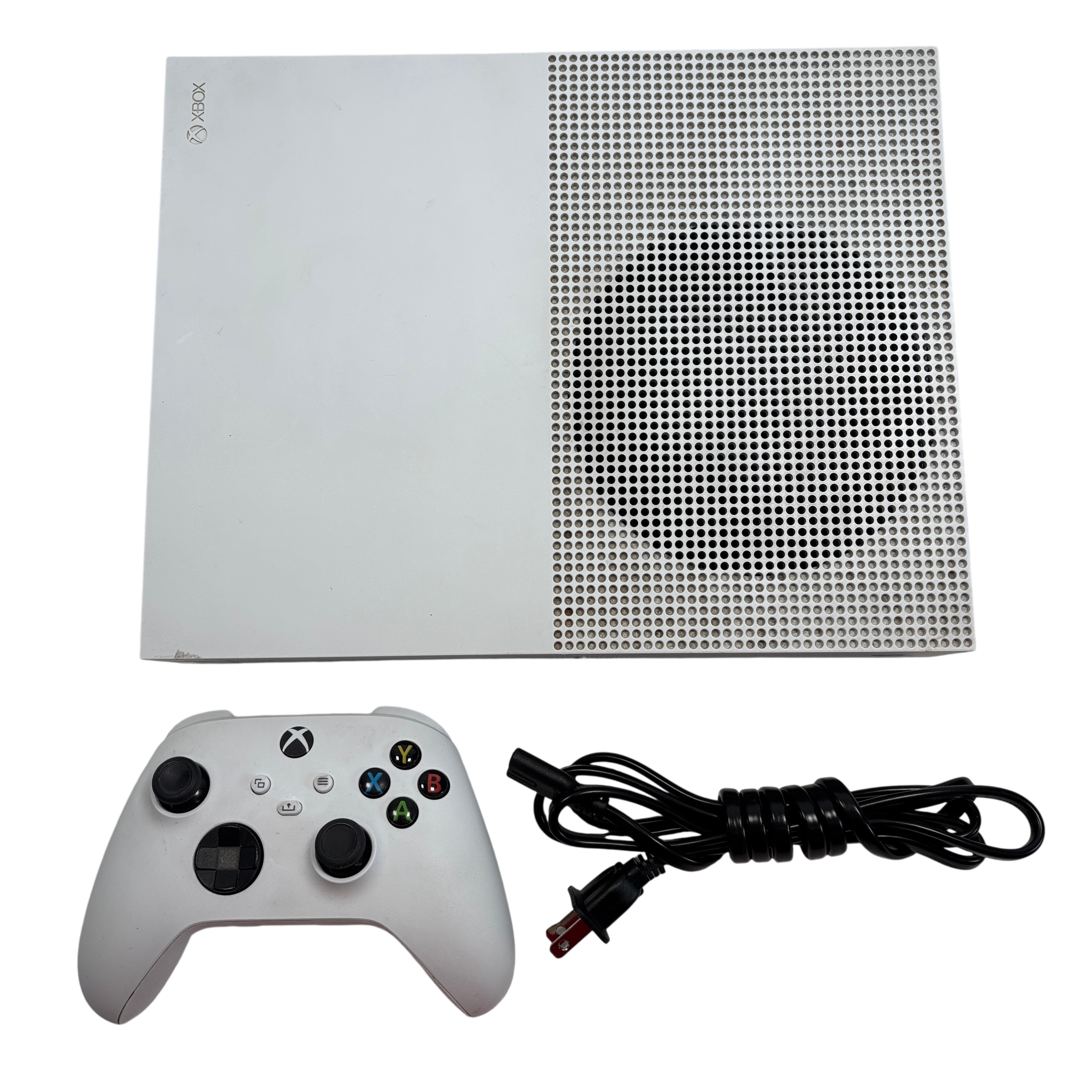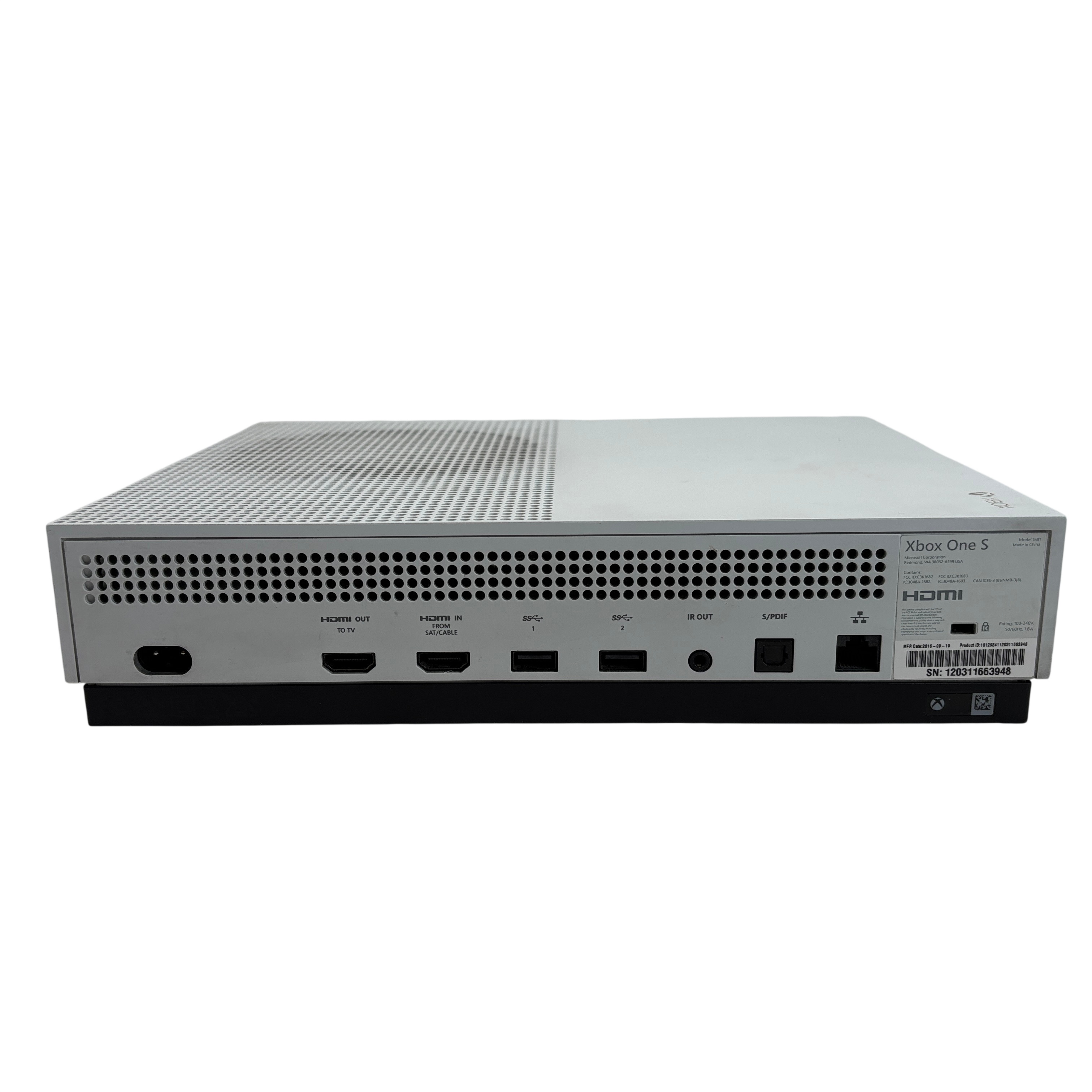 The Microsoft Xbox One S 1681 is a sleek white video game console designed for immersive gaming and entertainment. Featuring HDMI input and output ports, USB 3.0 connectivity, and optical audio support, this console delivers high-definition visuals and rich sound. The package includes the Xbox One S console, a wireless controller, and a power cable. Its compact form factor and versatile connectivity options make it an excellent choice for gamers seeking quality and convenience.