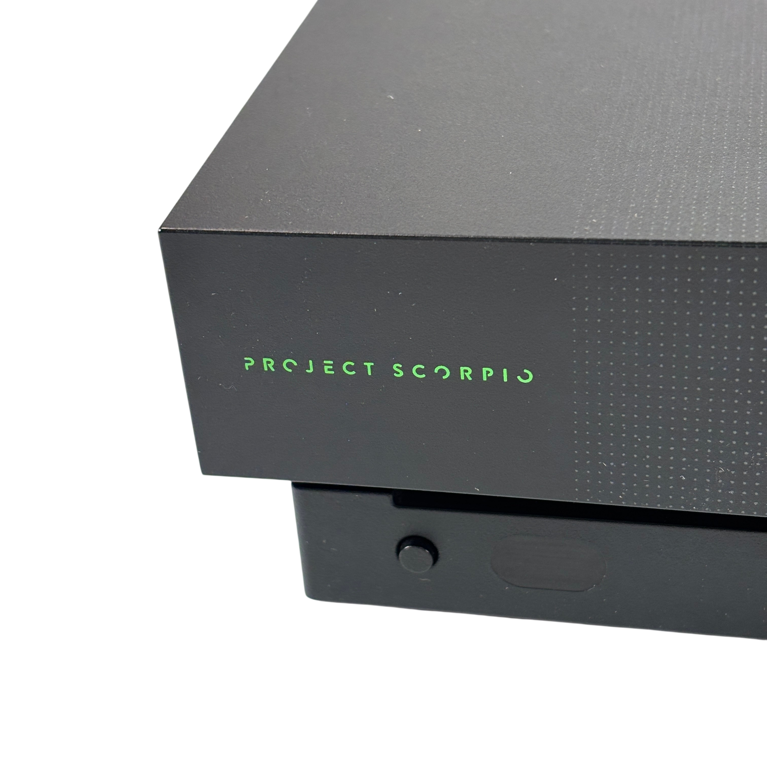 Microsoft Xbox One X Project Scorpio edition home video game console with 1TB of storage, designed for high-performance gaming and 4K visuals. This powerful system delivers enhanced graphics and smooth gameplay, making it ideal for modern titles and immersive entertainment.