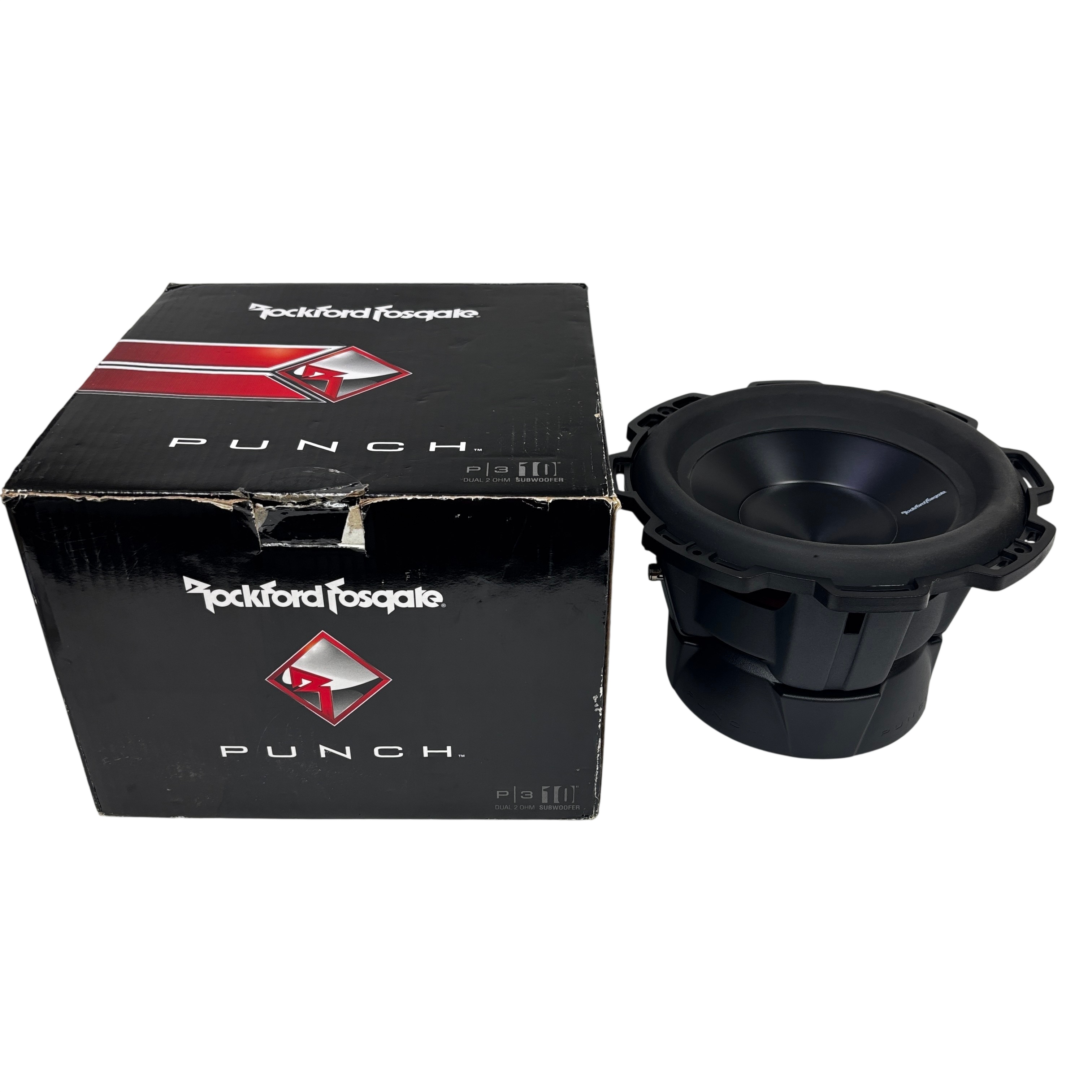 The Rockford Fosgate Punch P3D2-10 10" Dual 2 Ohm Subwoofer delivers powerful, high-quality bass for car audio enthusiasts. Featuring a durable composite cone and rubber surround, this subwoofer is designed to handle high excursion and deliver punchy, deep bass. Its dual 2 Ohm voice coils offer flexible wiring options for various amplifier setups. Ideal for upgrading your vehicles sound system, the P3D2-10 provides robust low-frequency performance in a compact 10-inch size.