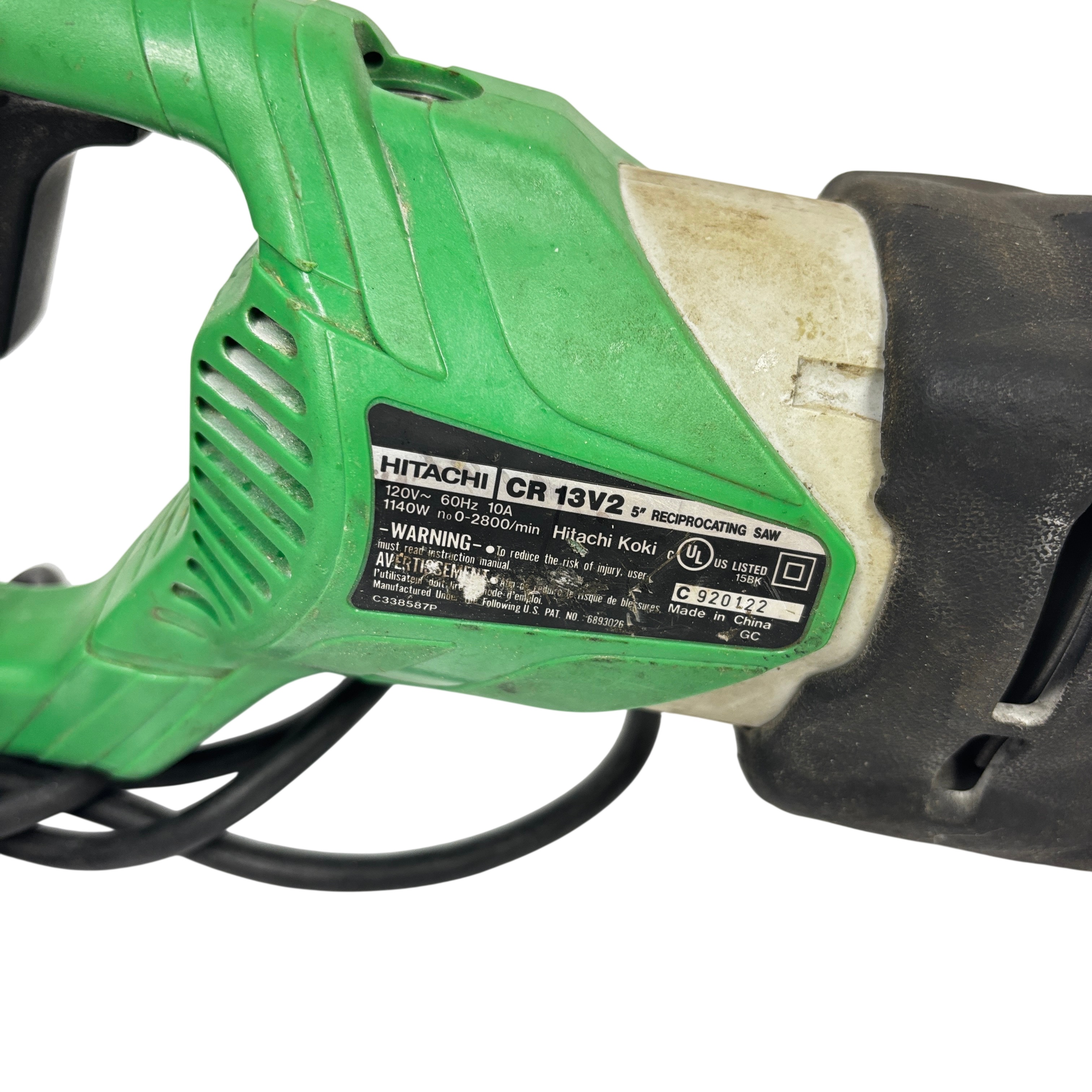 The Hitachi CR13V2 5 Inch Reciprocating Saw is a powerful corded tool featuring a 1140 watt motor that delivers up to 2800 strokes per minute for efficient cutting performance. Operating on standard 120V power. The ergonomic green handle ensures comfortable use during extended operation. Ideal for demolition, remodeling, and general cutting applications, this corded reciprocating saw offers reliable power and control in a compact form factor.