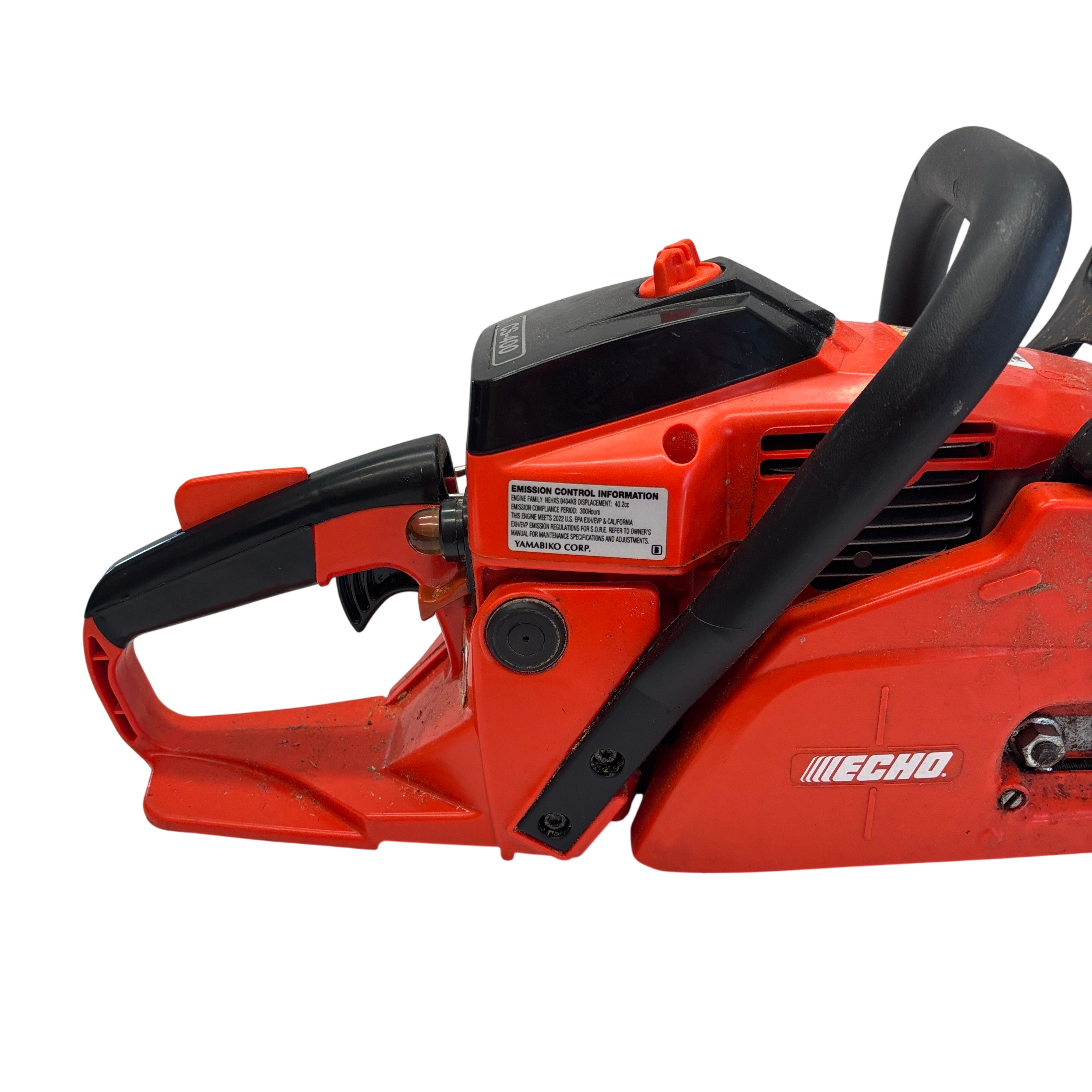 The Echo CS-400 Chainsaw is a reliable gas-powered tool featuring a 16-inch cutting bar and a robust 2-stroke engine designed for efficient cutting performance. This chainsaw offers ergonomic front and rear handles for comfortable use and a chain brake for enhanced safety during operation. Ideal for homeowners and professionals alike, the CS-400 delivers dependable power for trimming, pruning, and light to medium cutting tasks.