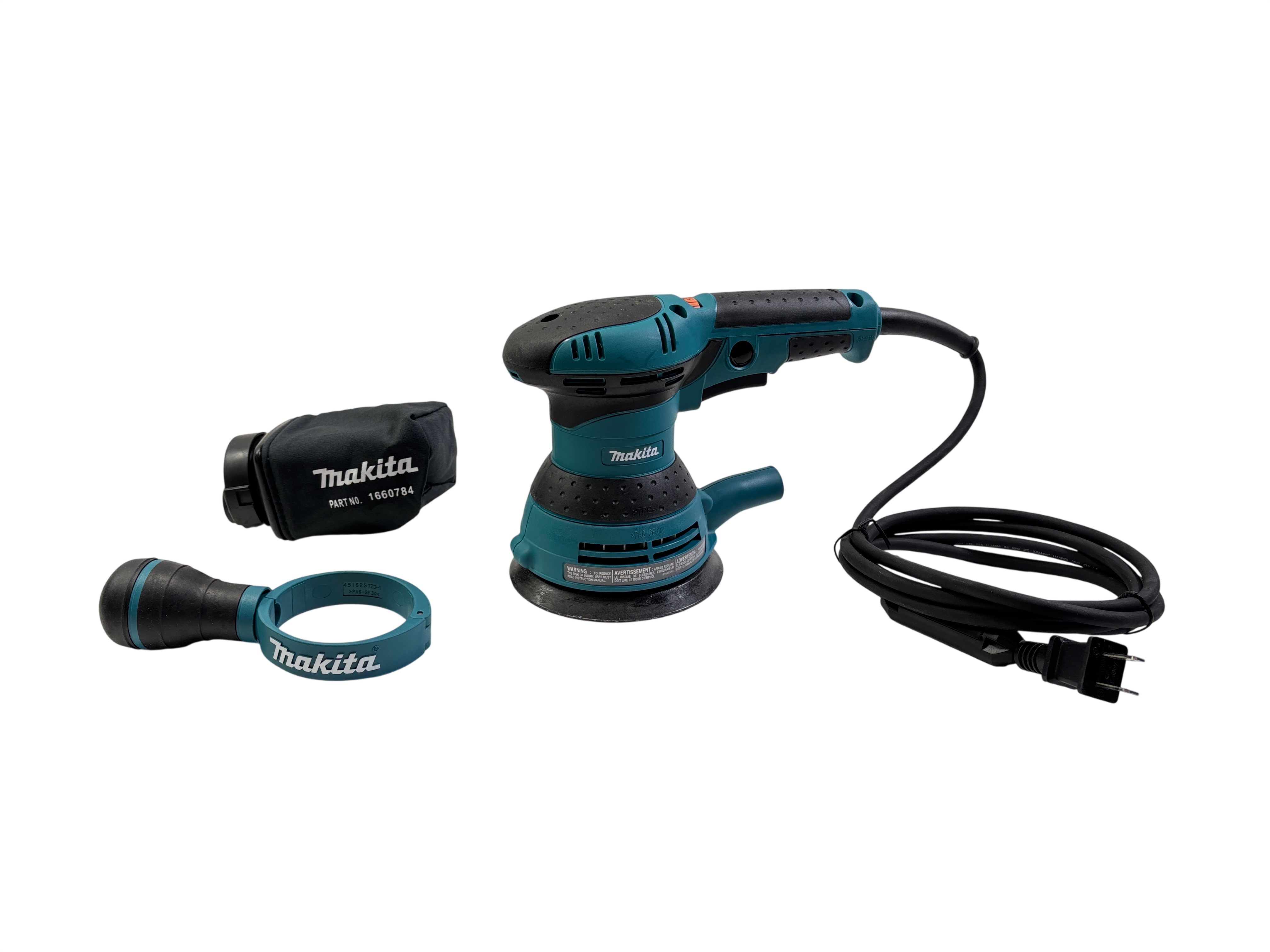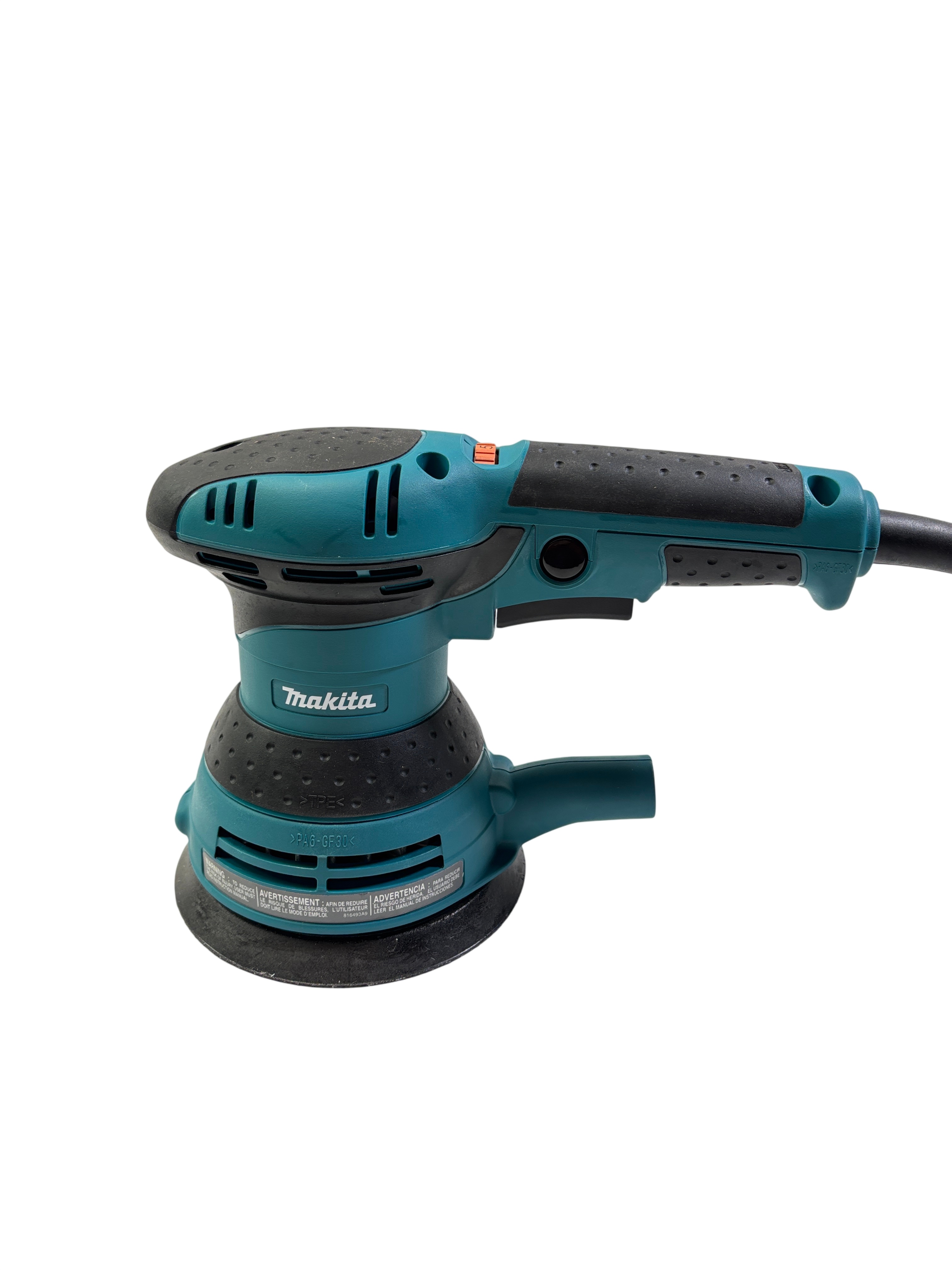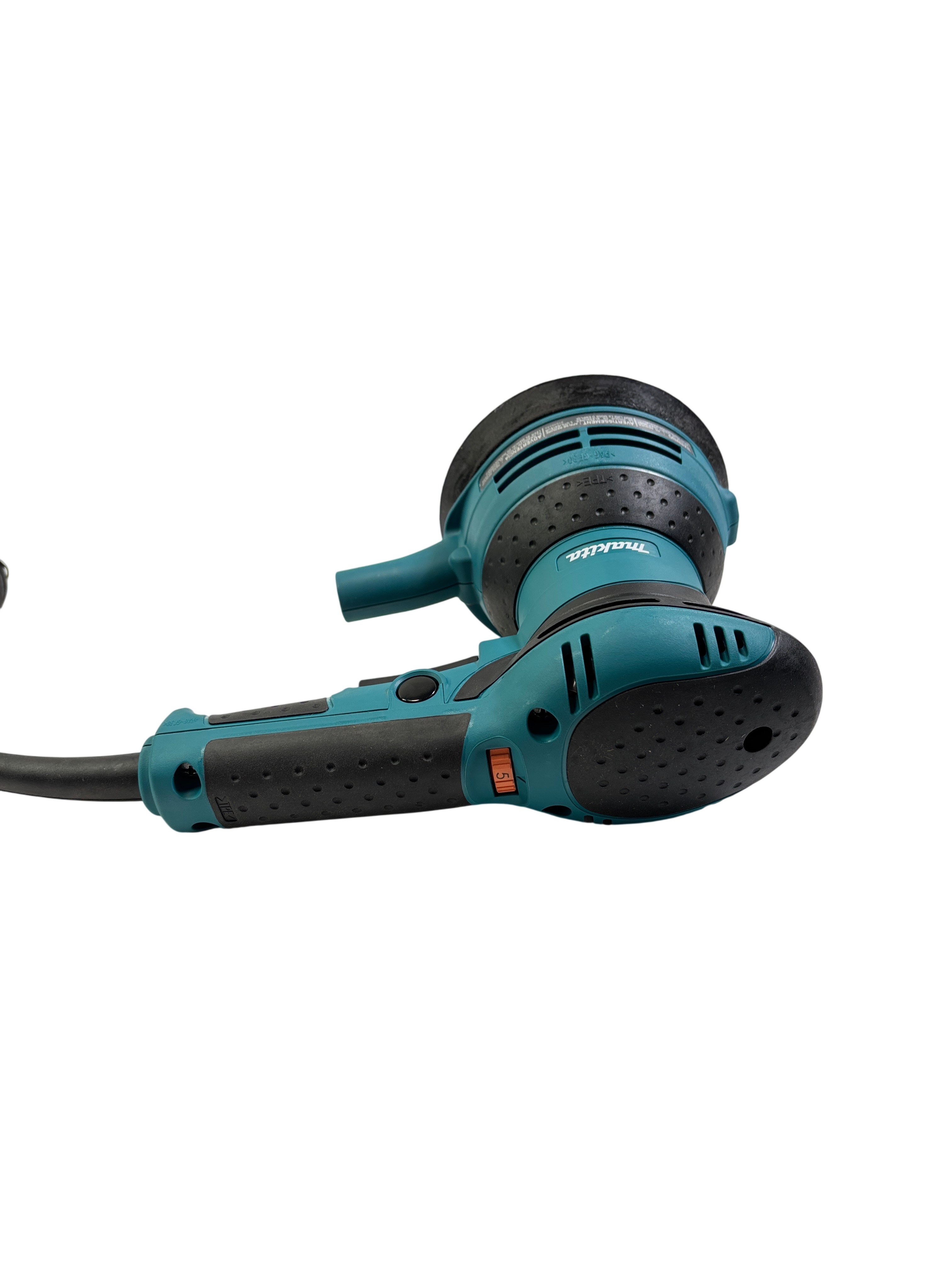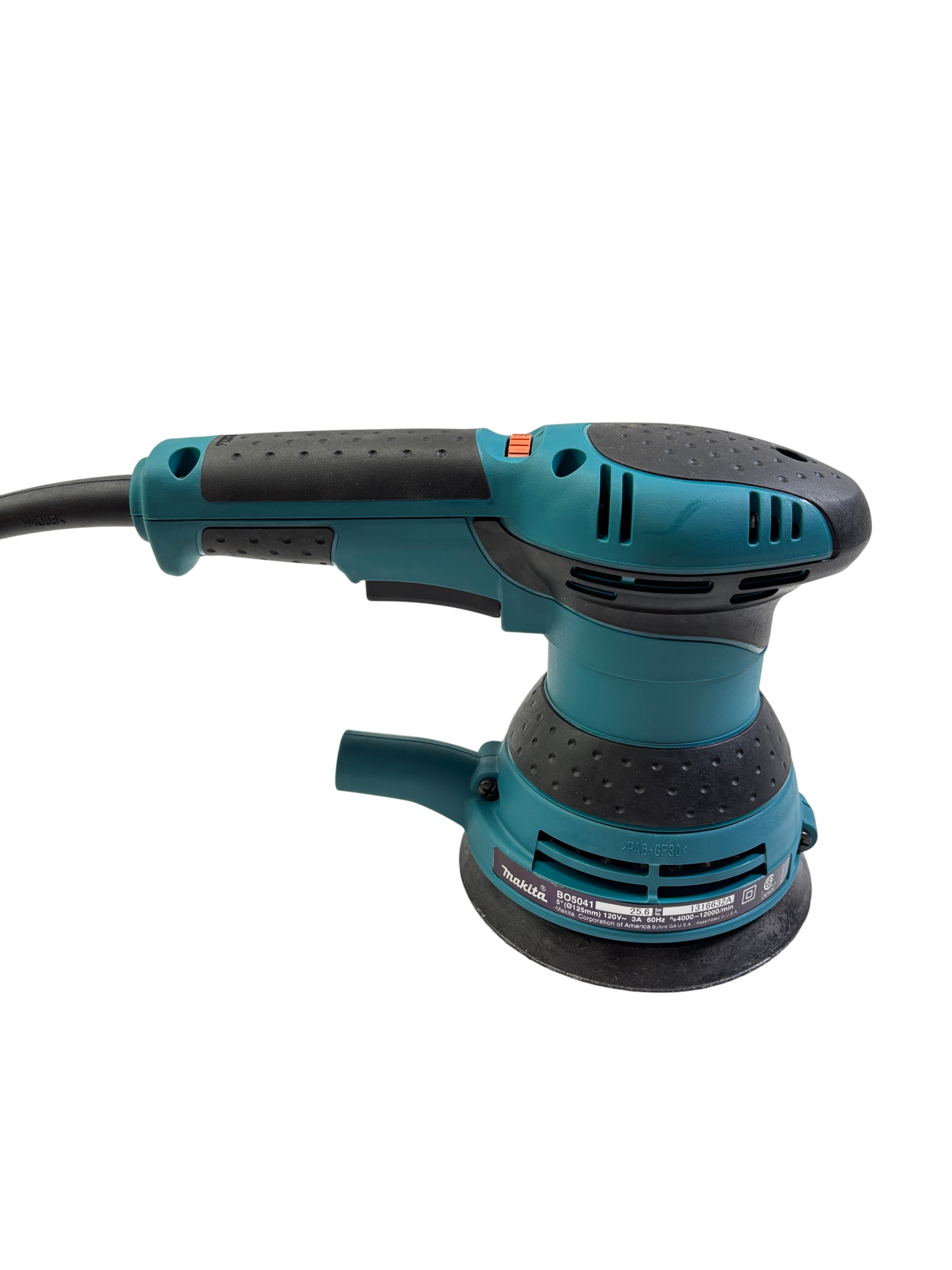 Makita BO5041 5 Inch Random Orbit Sander is a powerful corded electric tool designed for smooth sanding performance. Operating at 120 volts and 3 amps, it delivers variable speeds from 4000 to 12000 orbits per minute, making it suitable for a variety of sanding tasks. This model features an ergonomic design with a rubberized grip for comfortable use and includes a dust collection bag and dust port attachment to help keep your workspace clean. Ideal for woodworking, finishing, and surface preparation, this sander offers reliable performance in a compact design.