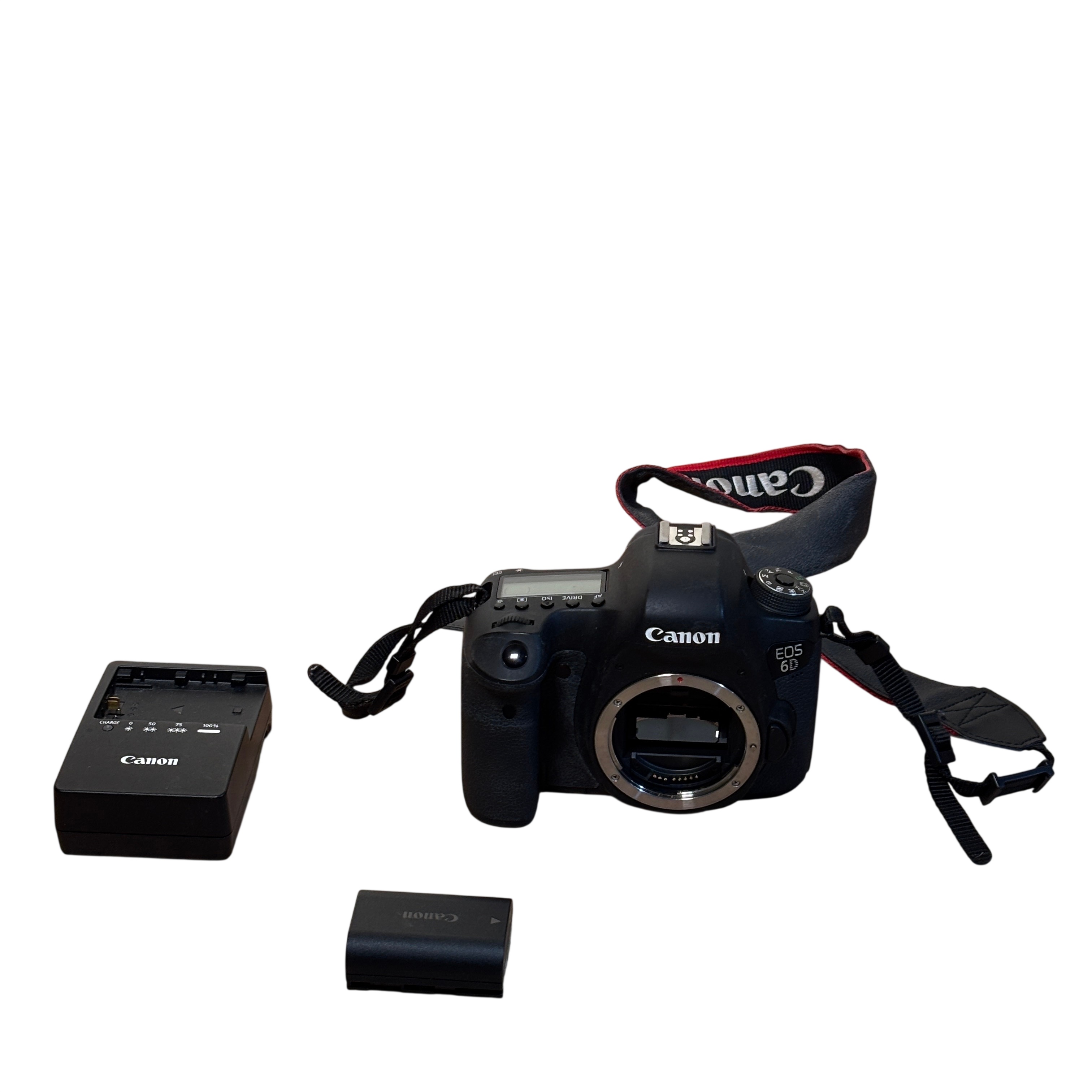 The Canon EOS 6D Camera Body is a full-frame DSLR designed for photographers seeking high image quality and advanced features. This listing includes the Canon LP-E6 rechargeable lithium-ion battery (7.2V, 1800mAh, 13Wh) and the LC-E6 battery charger compatible with 100-240V AC input. The camera body features a compact and ergonomic design, making it ideal for both enthusiasts and professionals. With this bundle, you get a ready-to-use setup for capturing stunning photos and videos.