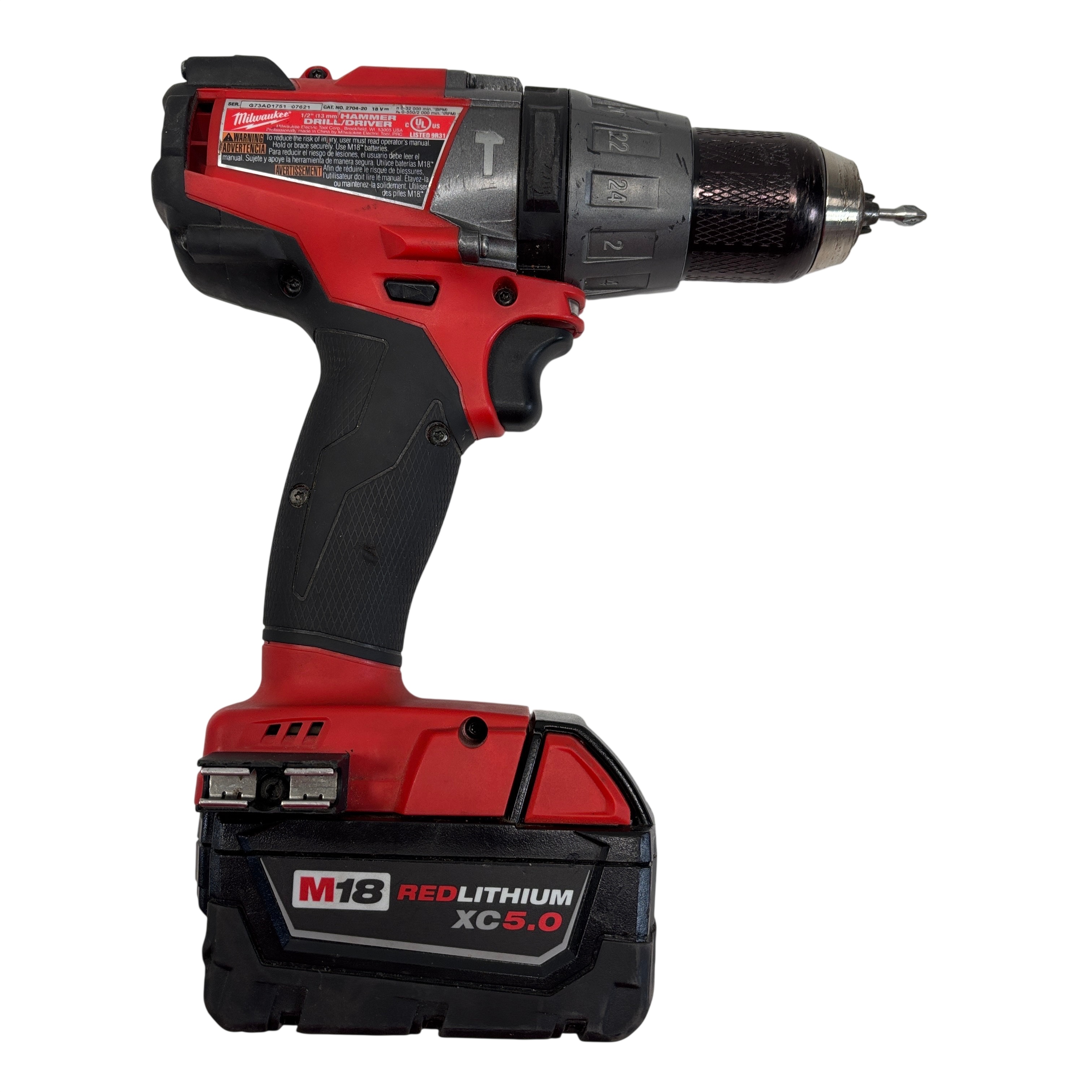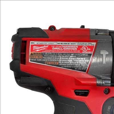 The Milwaukee 2704-20 M18 FUEL Brushless Cordless 1/2" Hammer Drill/Driver is a versatile cordless power tool designed for heavy-duty drilling and fastening applications. Featuring a 1/2 inch (13 mm) keyless chuck and hammer function, this drill delivers variable speeds. The set includes the drill, a high-capacity battery, and a compatible charger, making it ideal for professional contractors and serious DIYers who need reliable performance on the job site.