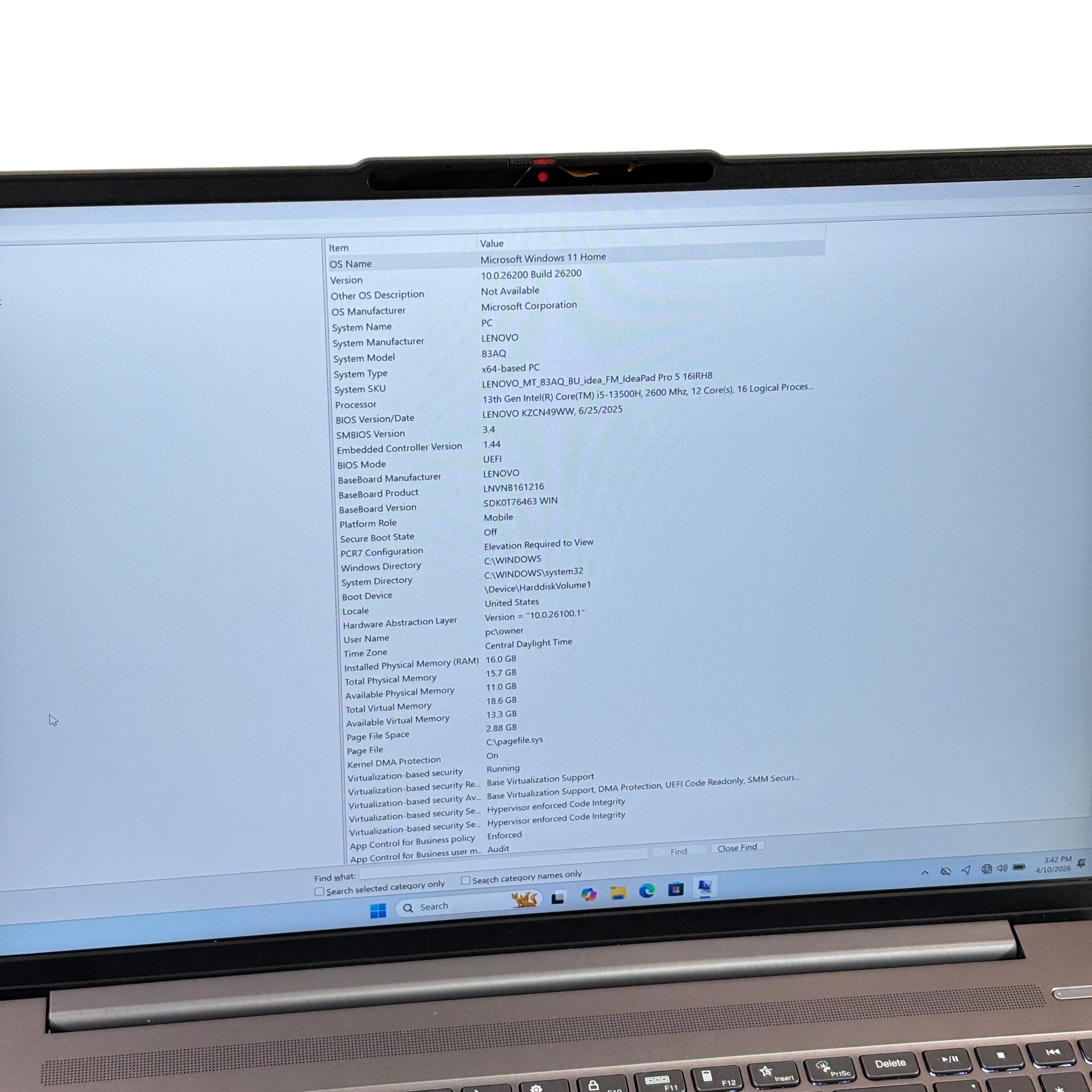 The Lenovo IdeaPad Pro 5 16IRH8 is a 16-inch productivity and creative laptop designed to balance performance and portability. It is powered by an Intel Core i5-13500H processor paired with NVIDIA GeForce RTX 3050 graphics, delivering capable performance for multitasking, content creation, and light gaming.