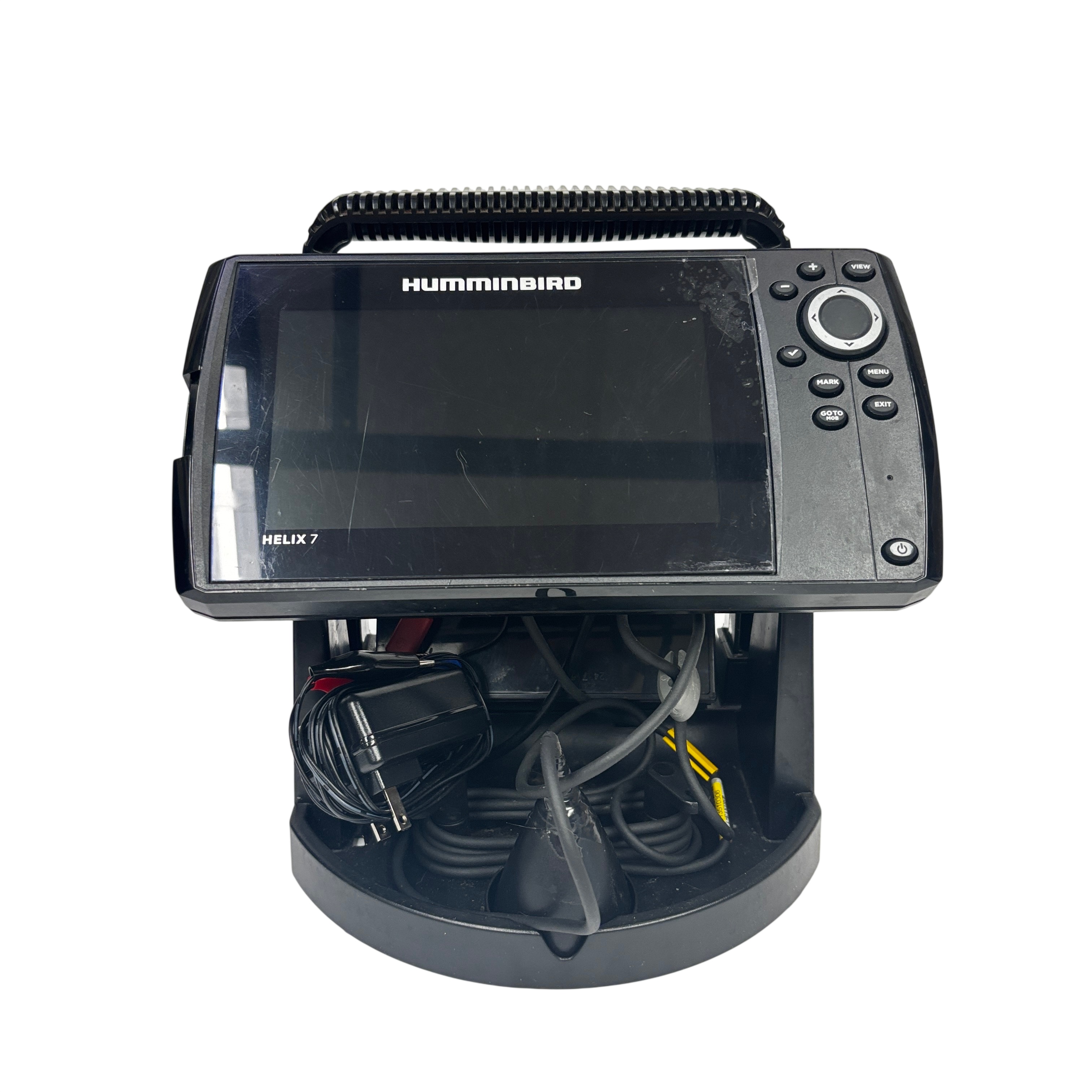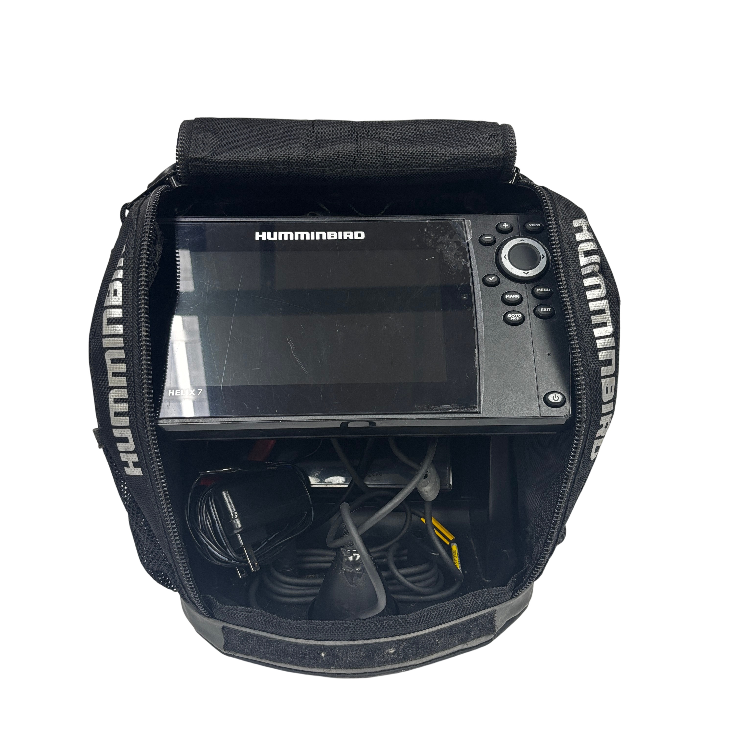The Humminbird Helix 7 Depthfinder Chrip2 is a reliable depthsounder designed for sport and fishing enthusiasts. Featuring a 7-inch display and multiple control buttons for easy navigation, this unit is powered by a 12V 8Ah AGM sealed lead acid battery included in the set. The portable mounting bracket with a sturdy handle allows for convenient placement and transport. Ideal for accurate depth measurement and underwater detection, this depthfinder offers essential features for a successful fishing experience.