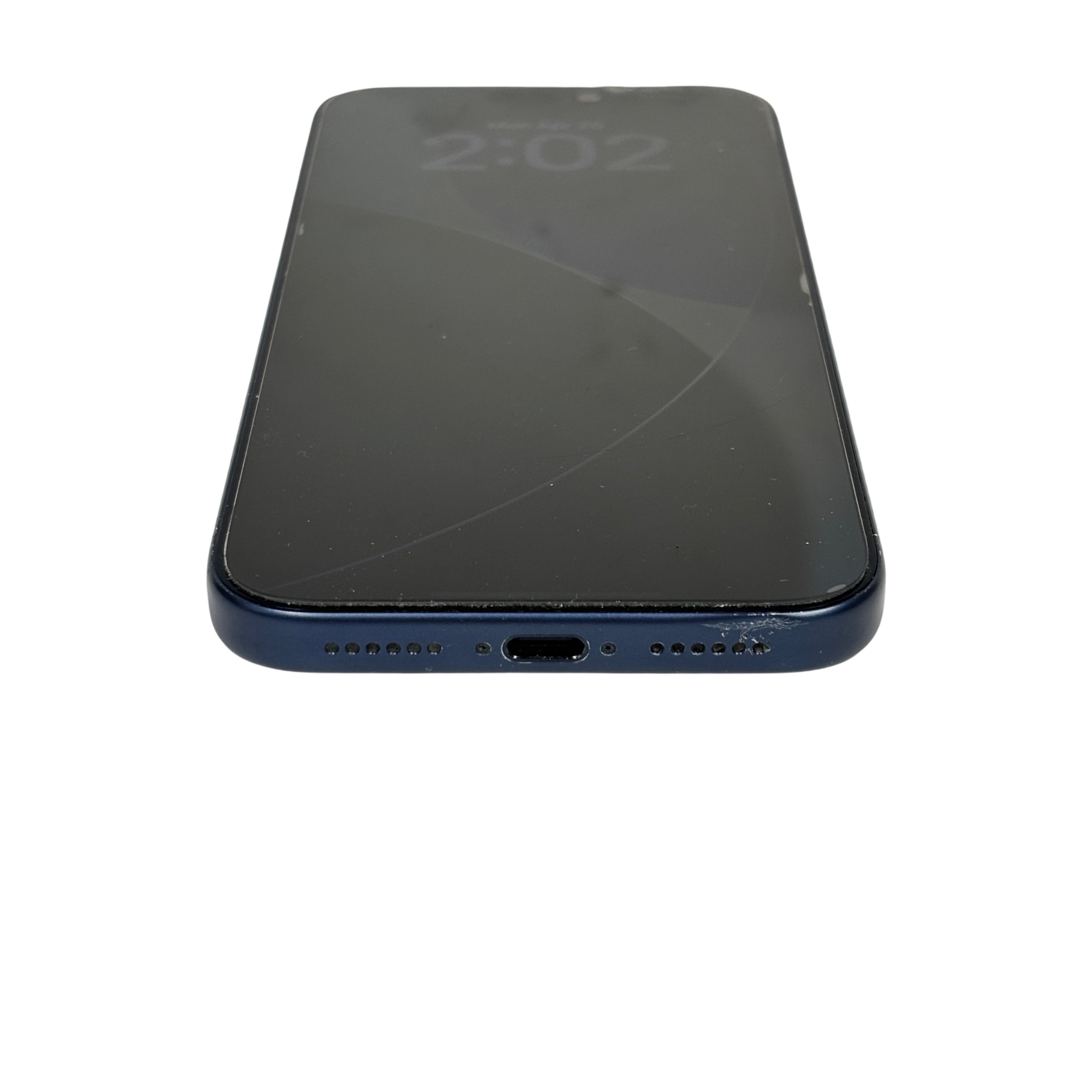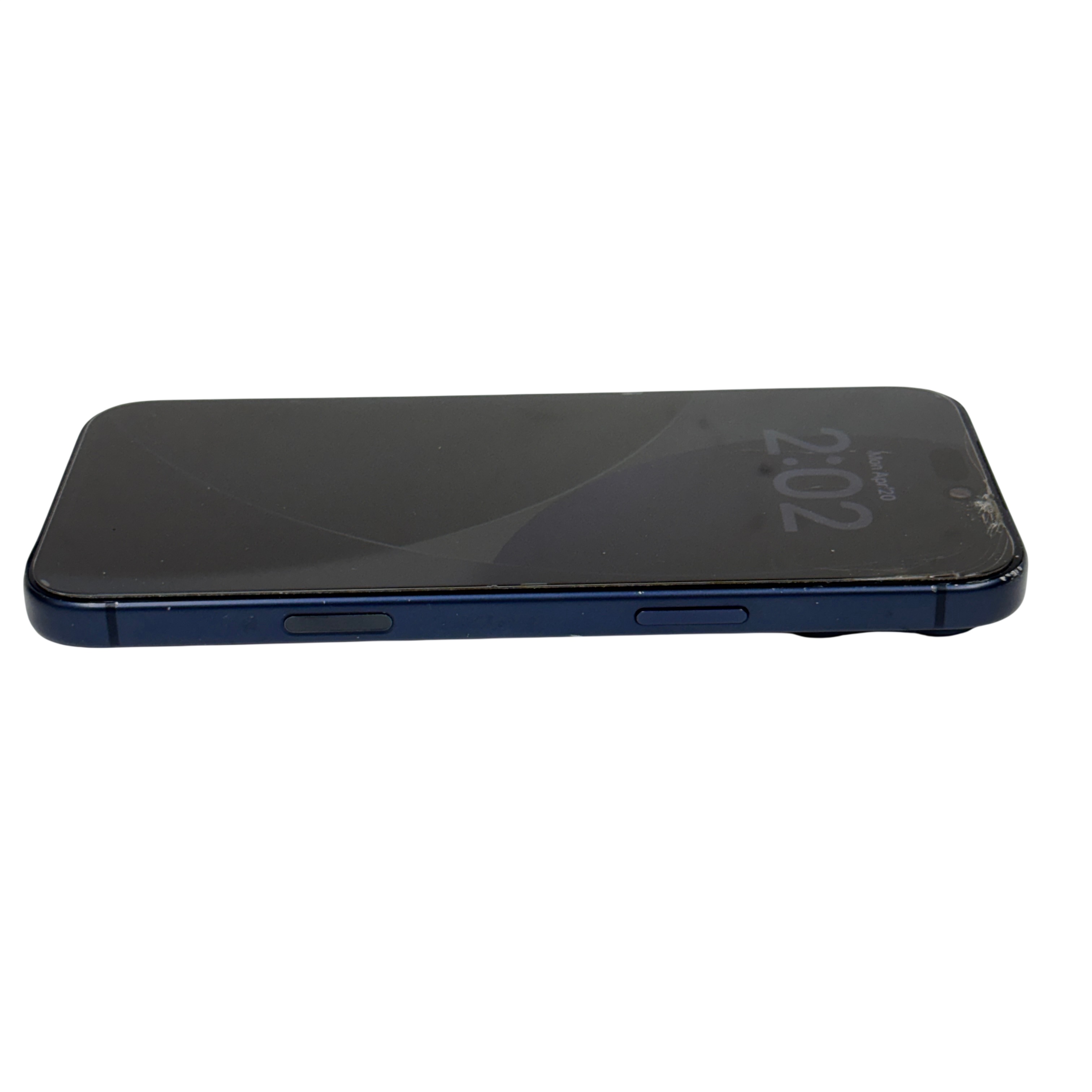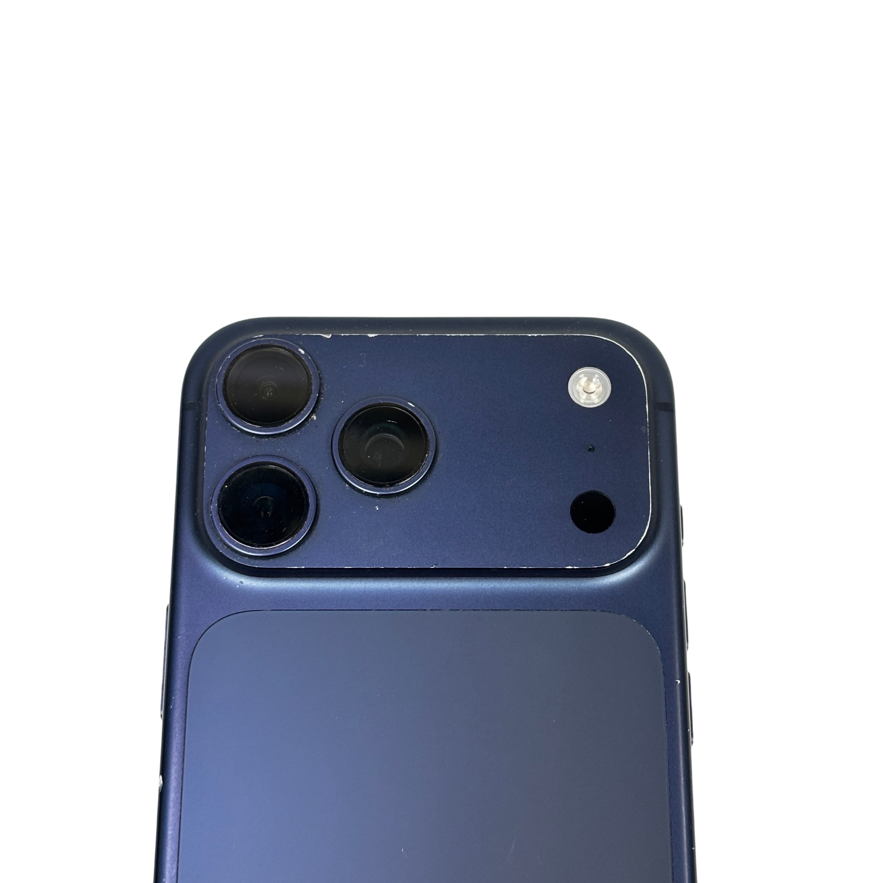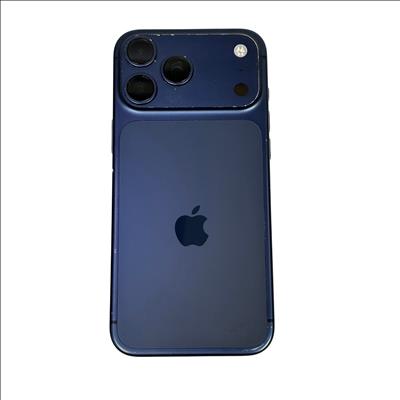 This Apple iPhone 17 Pro Max 256GB (Model MFXJ4LLA) is a premium cellular phone featuring a large 6.7-inch Super Retina XDR OLED display and the powerful A17 Pro chip. This model offers ample 256GB storage capacity and a sophisticated triple 48MP rear camera system for professional-quality photos and videos. Despite visible screen cracks and wear on the edges, this device remains fully functional and includes the original battery. Ideal for users seeking top-tier performance and advanced photography capabilities in a sleek deep blue finish.