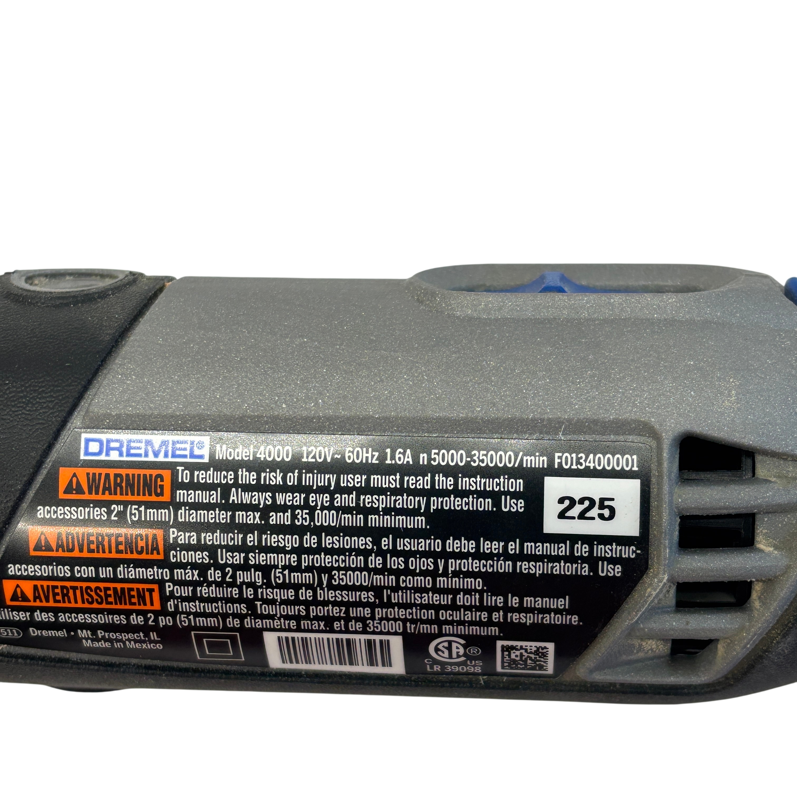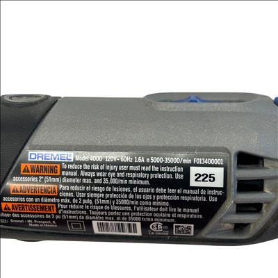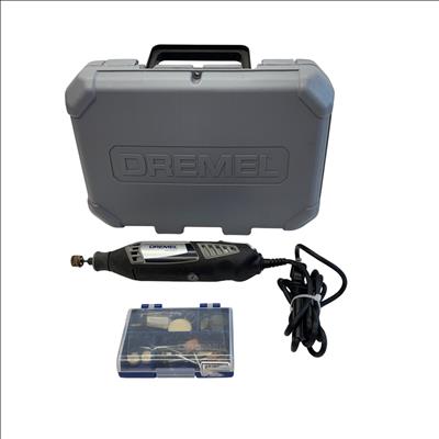 The Dremel 4000 Rotary Tool is a versatile and powerful corded tool designed for precision work with speeds ranging from 5,000 to 35,000 RPM. Operating at 120V and 60Hz with 1.6 amps, this rotary tool offers variable speed control for a wide range of applications including grinding, sanding, polishing, and cutting. The kit includes the rotary tool, a comprehensive accessory set, and a durable carrying case for easy storage and portability. Ideal for hobbyists and professionals alike, the Dremel 4000 delivers reliable performance and ergonomic comfort for detailed craftsmanship.