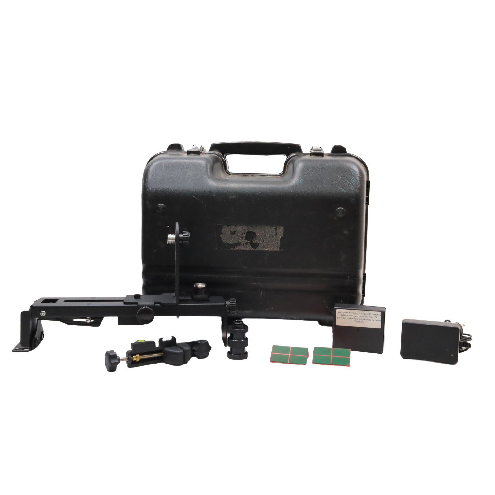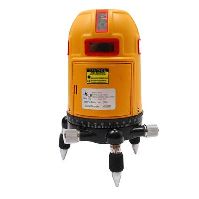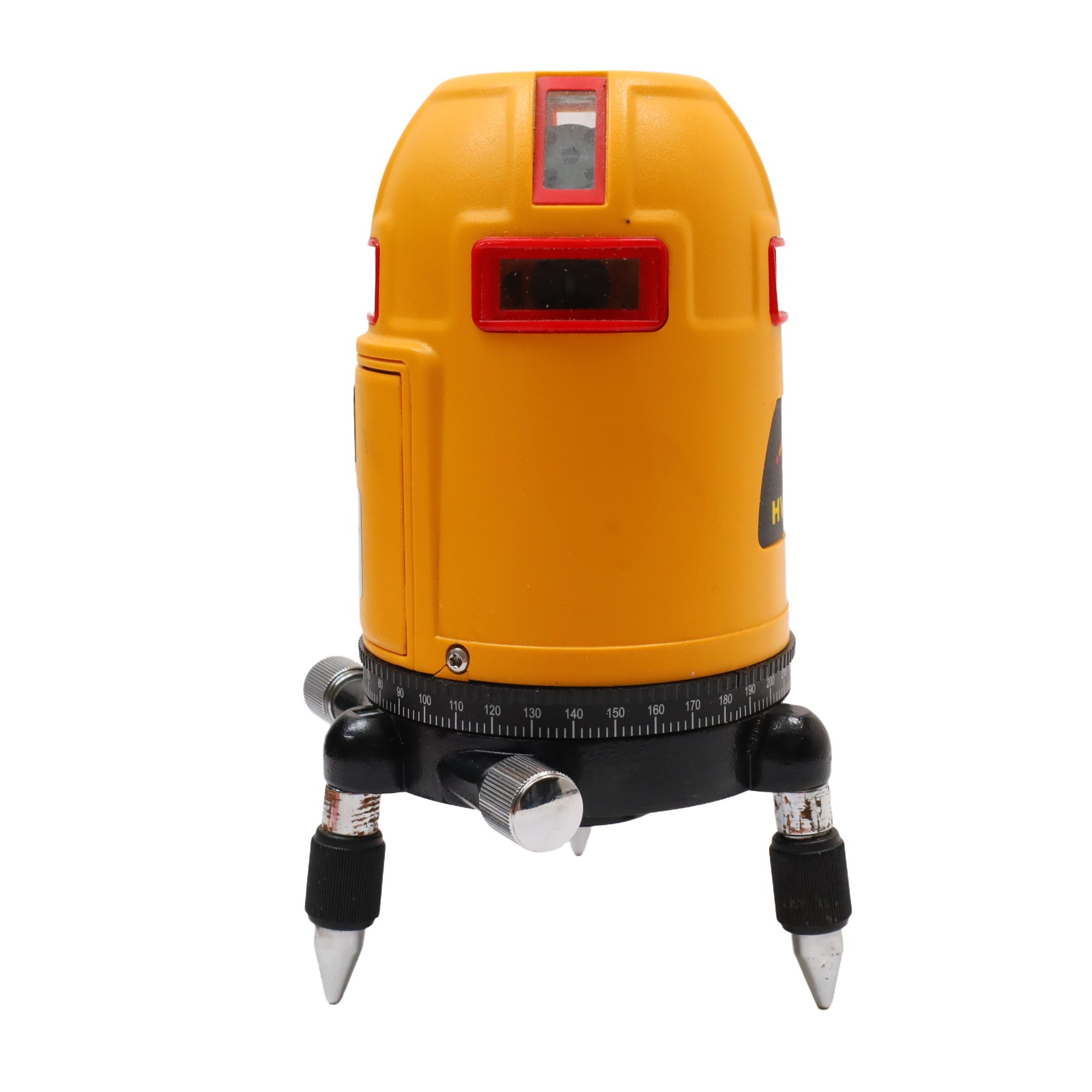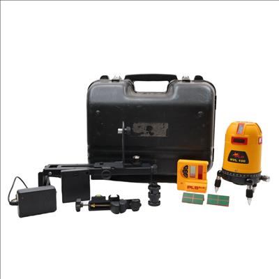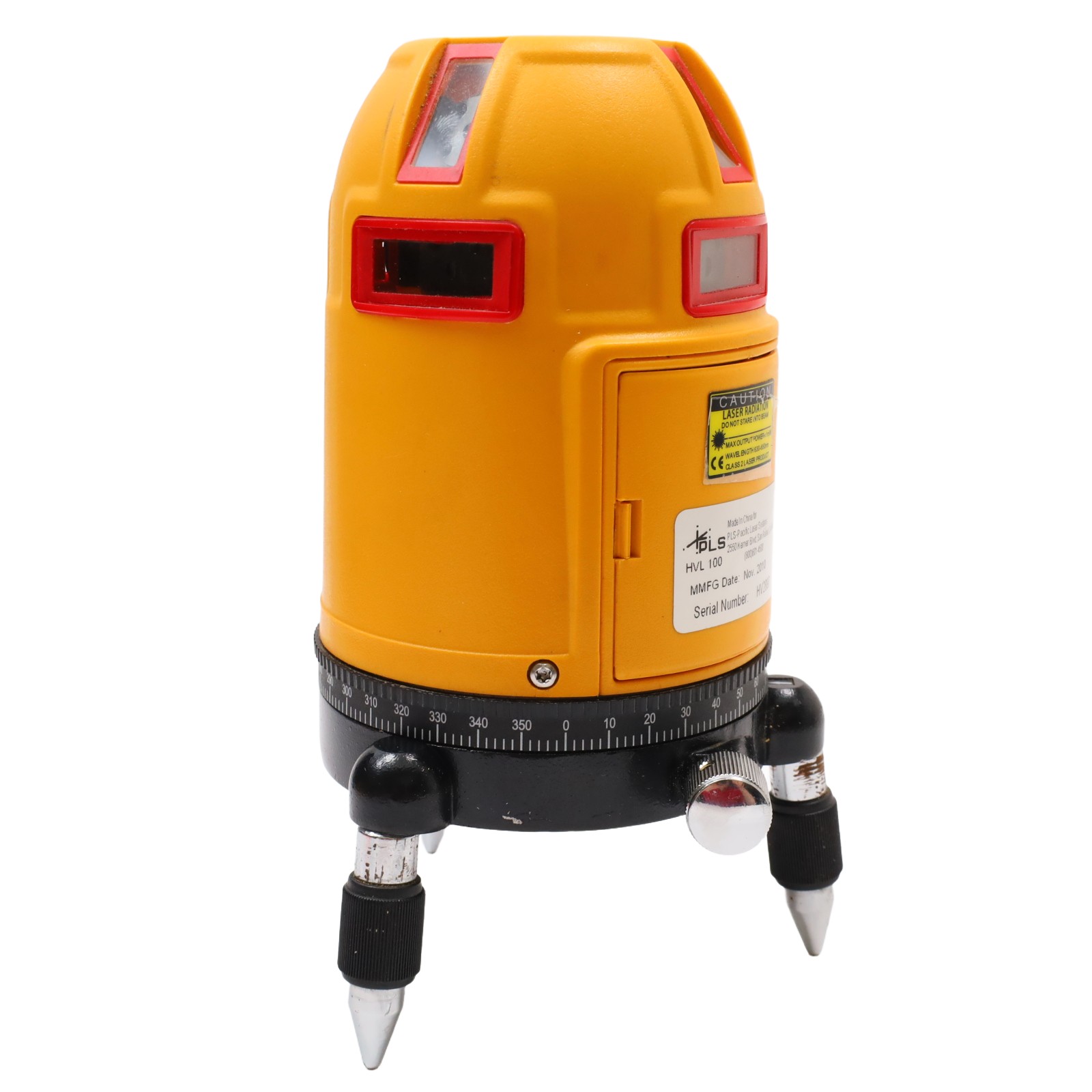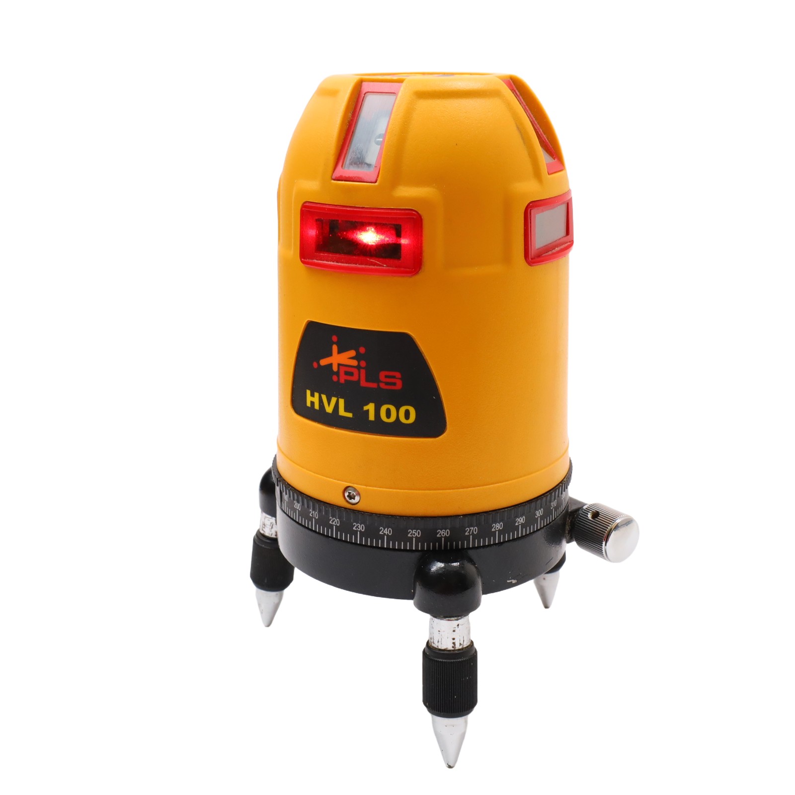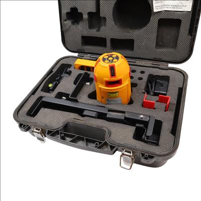 A Class II self-leveling laser level that projects 360-degree horizontal, vertical, plumb, and square lines from a single portable unit. The instrument automatically corrects alignment within a 4-degree self-leveling range. It provides an accuracy of plus or minus 1/8 inch at 60 feet, or 3mm at 20 meters, and reaches a working range of up to 100 feet when paired with a detector. This configuration allows horizontal and vertical reference lines to be established without additional equipment, combining the functionality of multiple separate laser tools into one device.