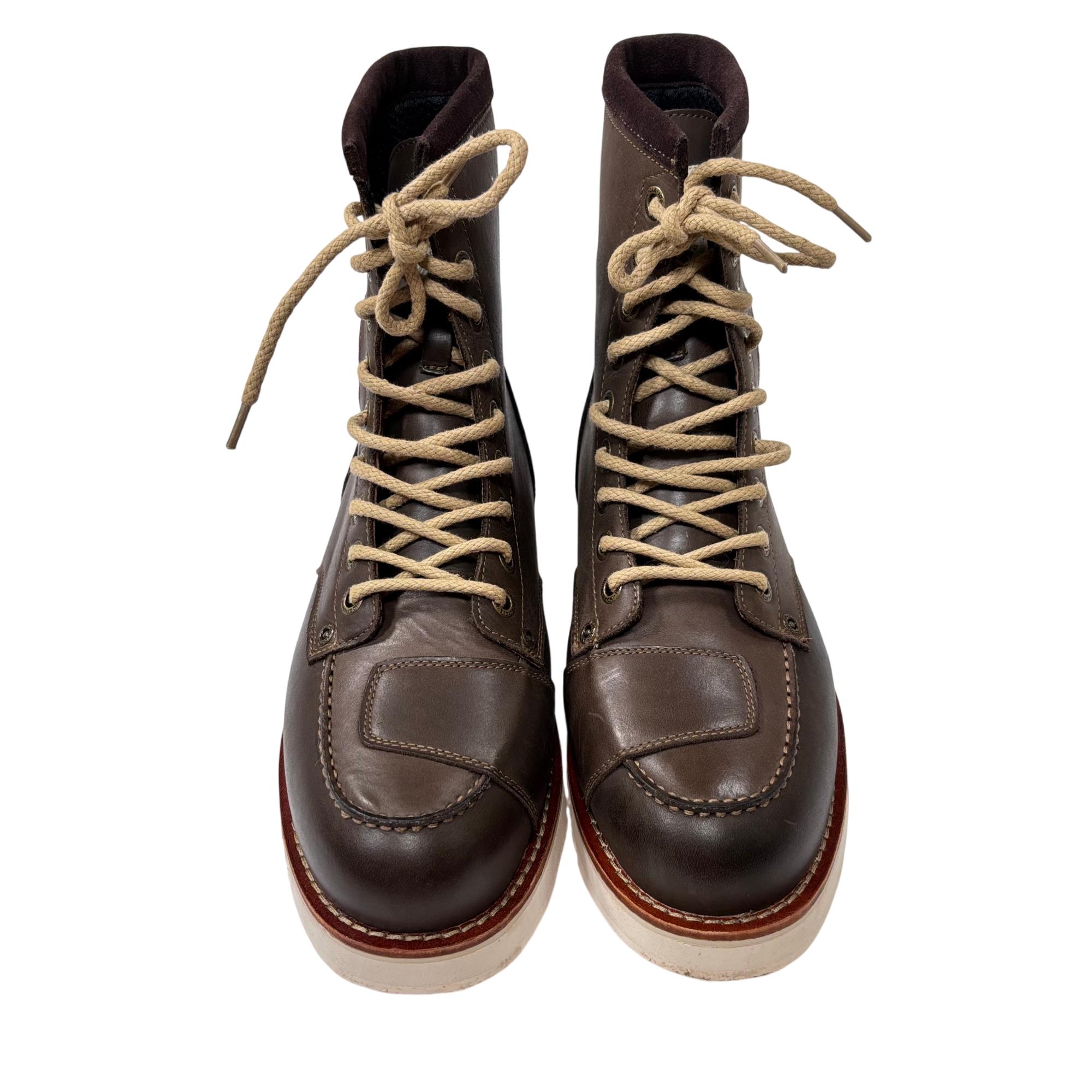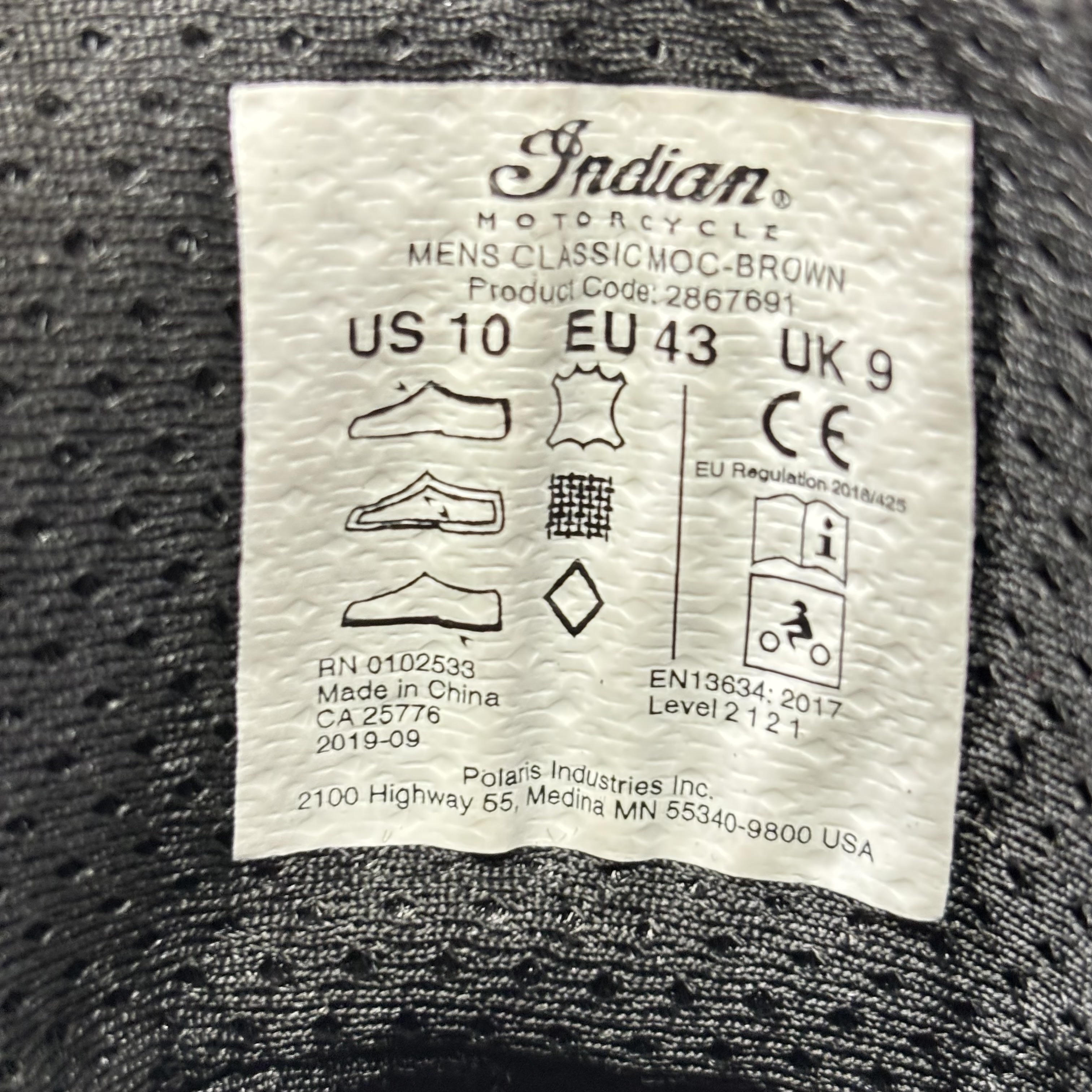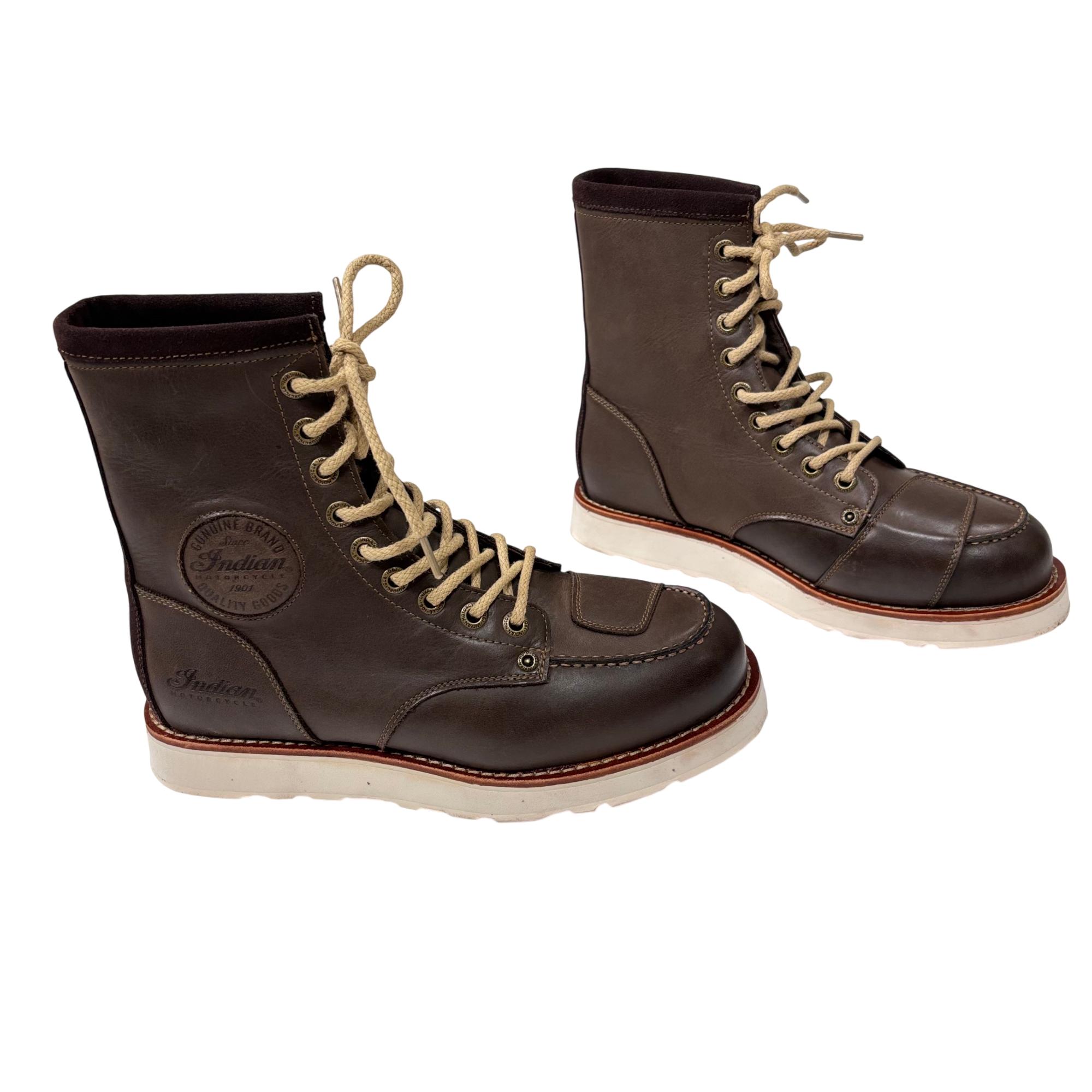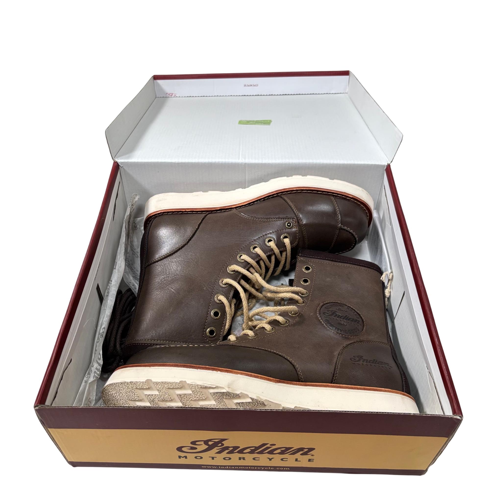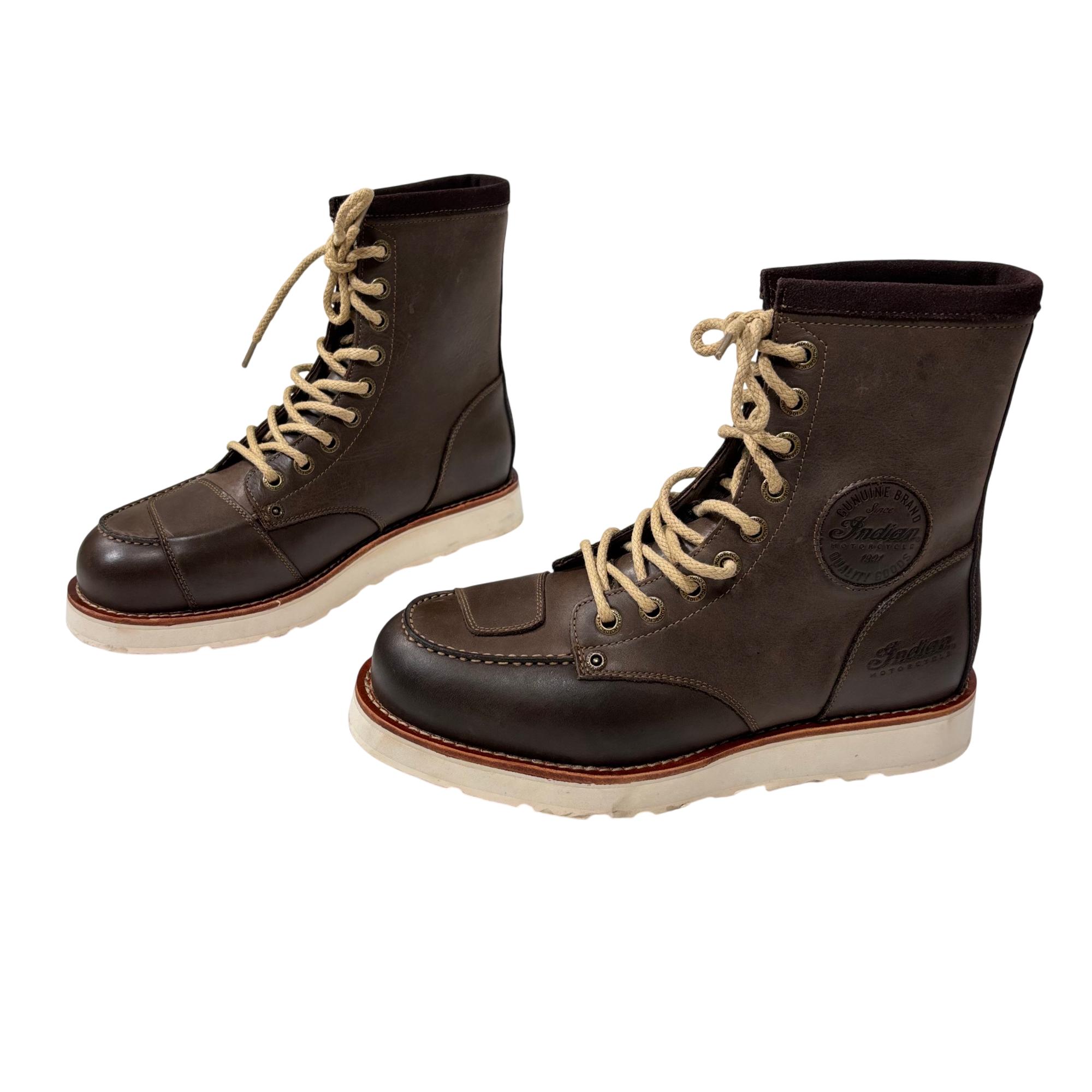 Indian Motorcycle 2867691 Mens Brown Leather Work Boots feature durable construction with premium leather uppers and sturdy Vibram soles designed for enhanced traction and support. These work boots combine classic style with practical functionality, making them suitable for demanding environments and everyday wear.