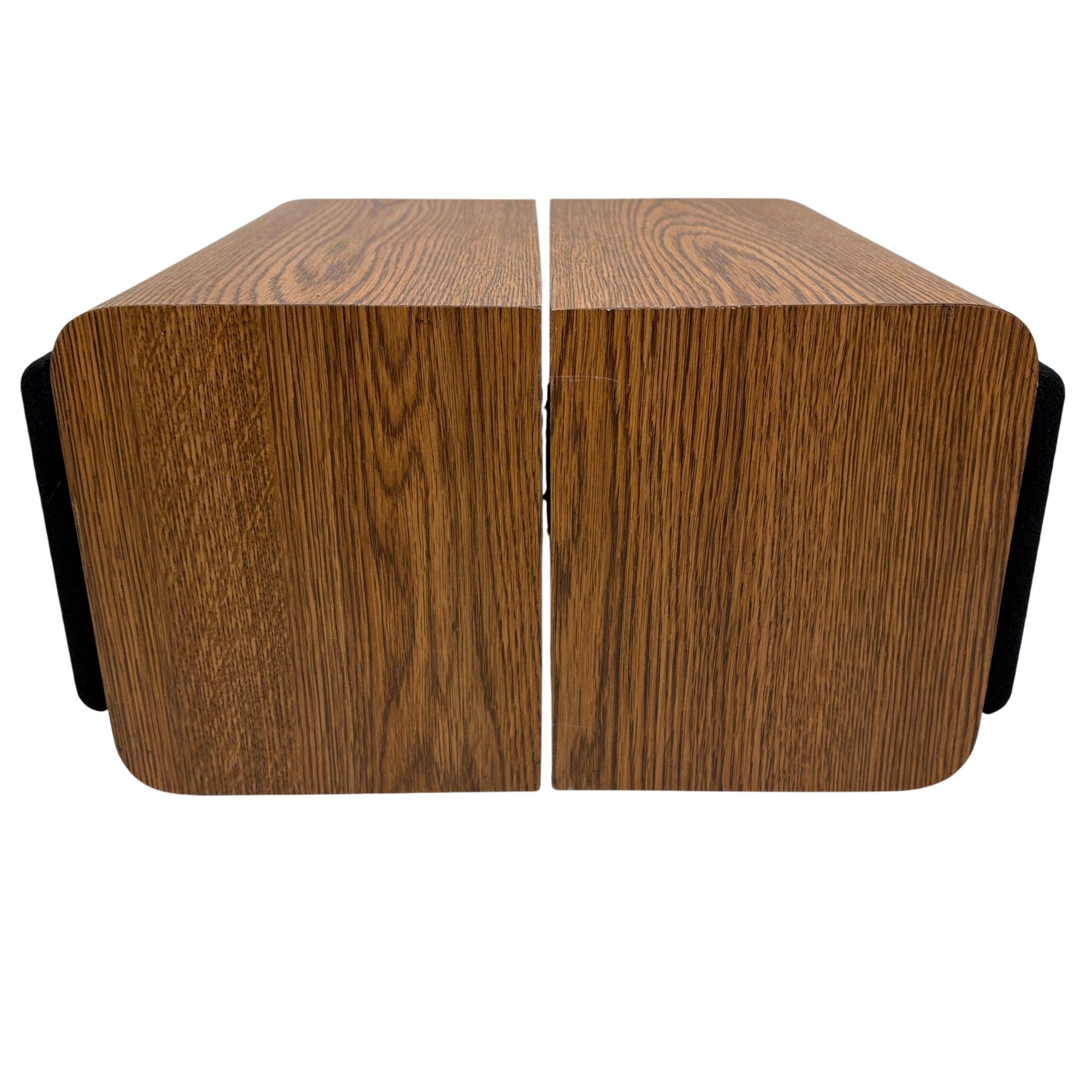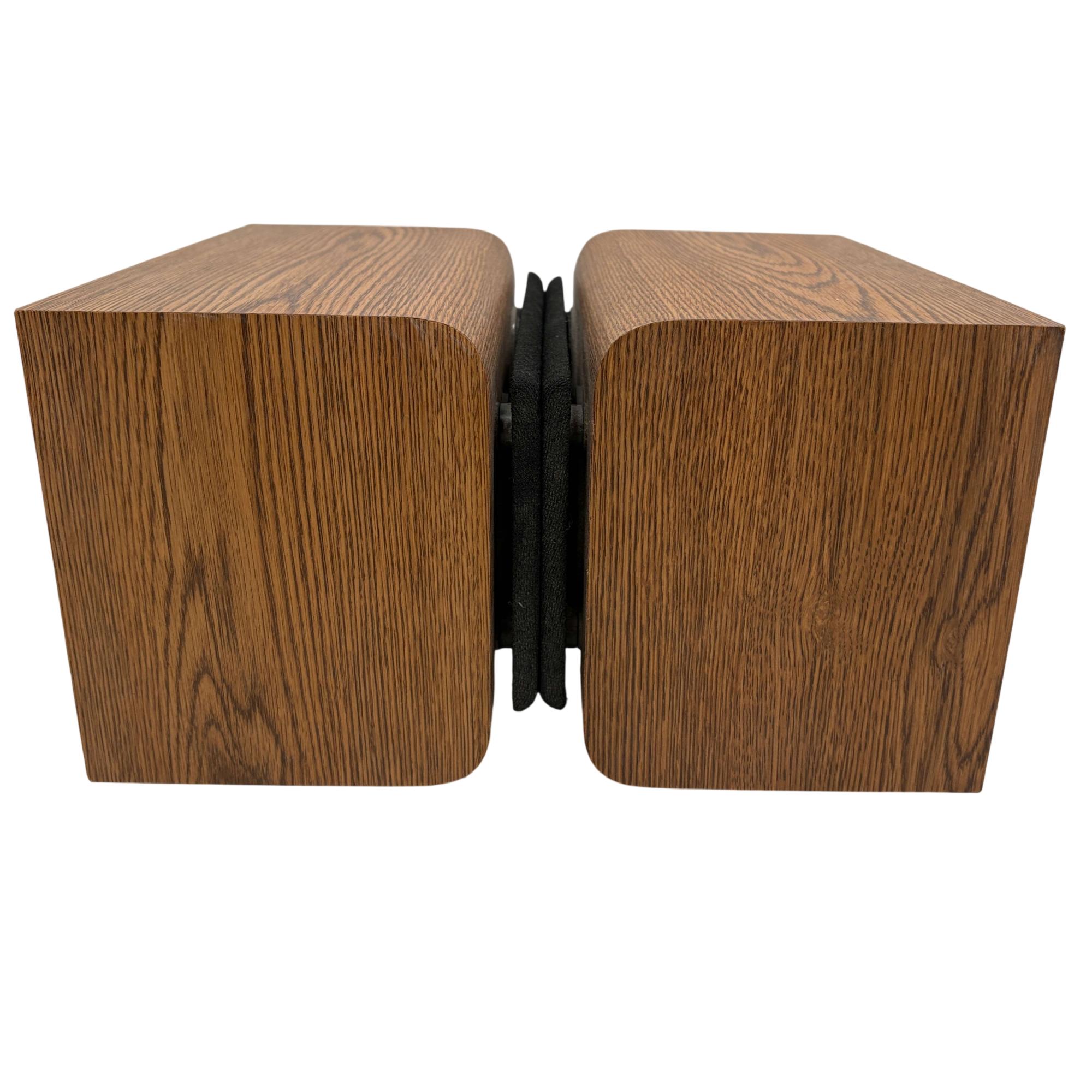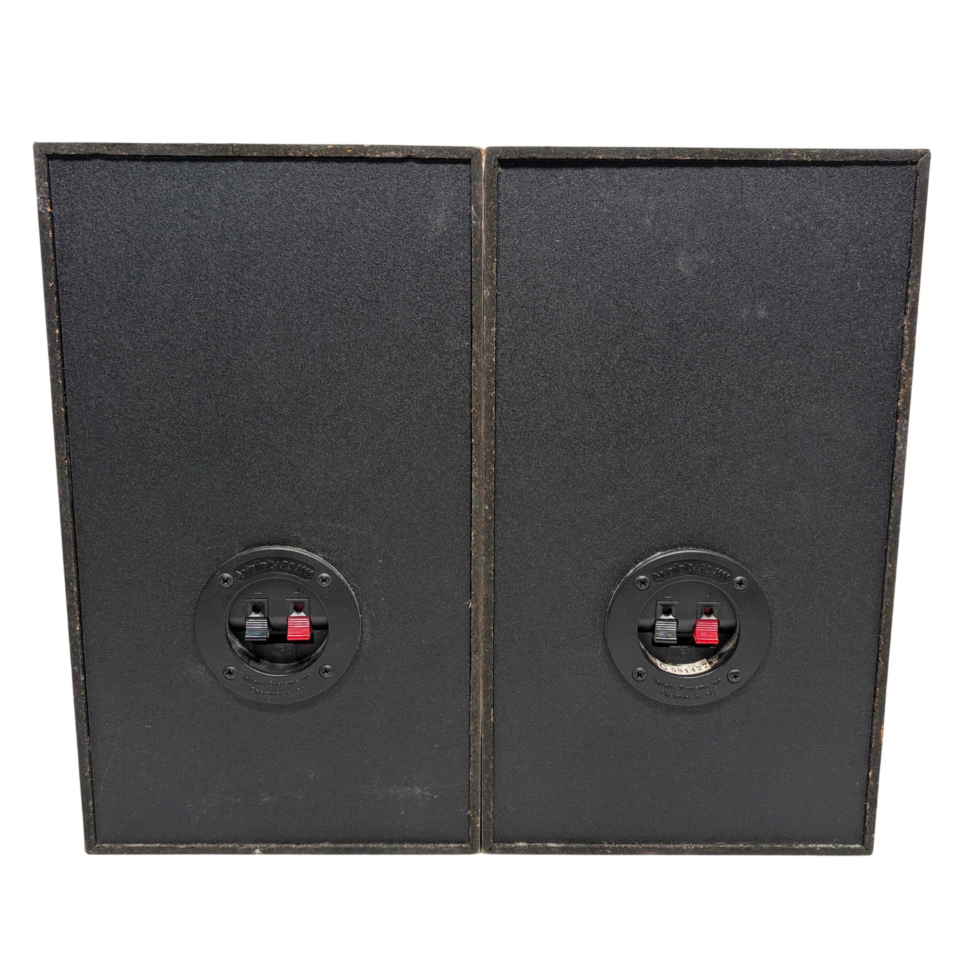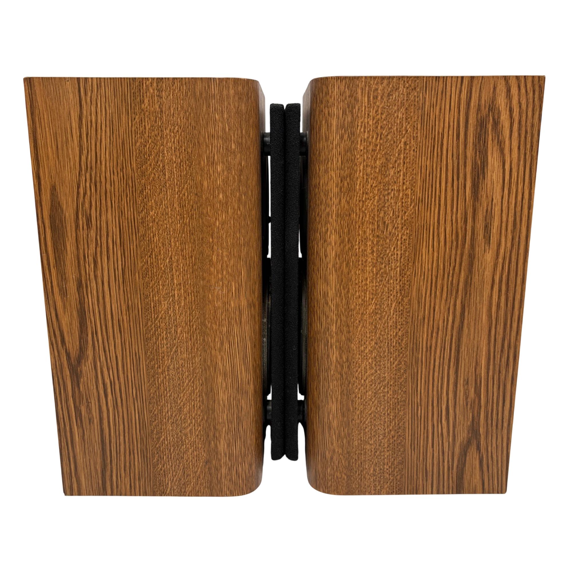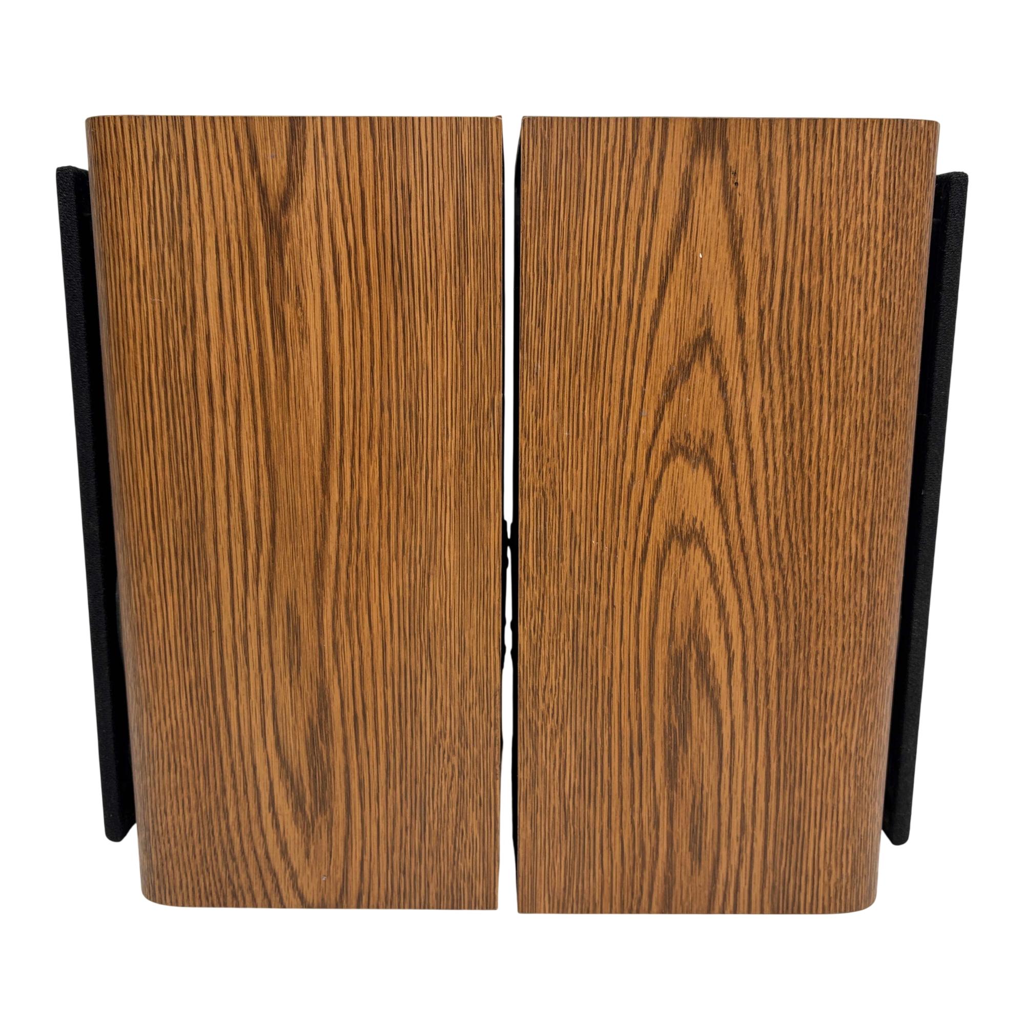 Infinity RS 1000 Vintage Bookshelf Speakers deliver rich, detailed sound through a 2-way design featuring wooden cabinets with black metal ring accents. These speakers are known for their solid bass response and clear midrange, housed in a classic wood finish that enhances both performance and aesthetic appeal. Ideal for audiophiles seeking vintage sound quality combined with elegant craftsmanship.