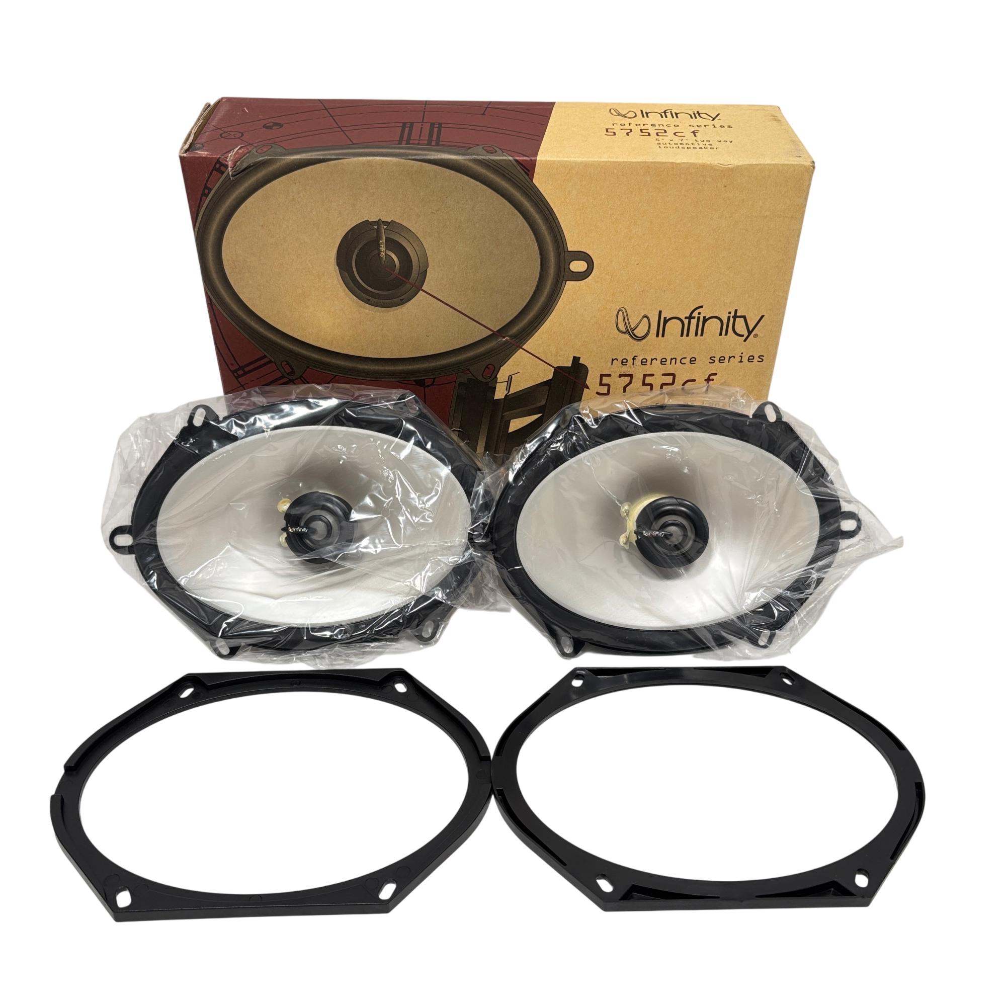 Infinity Reference Series 5752cf 5x7 Car Coaxial Speakers deliver high-quality audio performance with a sleek design optimized for automotive use. These speakers feature a coaxial two-way system that enhances sound clarity and depth, making them ideal for upgrading your cars sound system. Engineered for reliable durability and clear sound reproduction, they provide an immersive listening experience on the road.