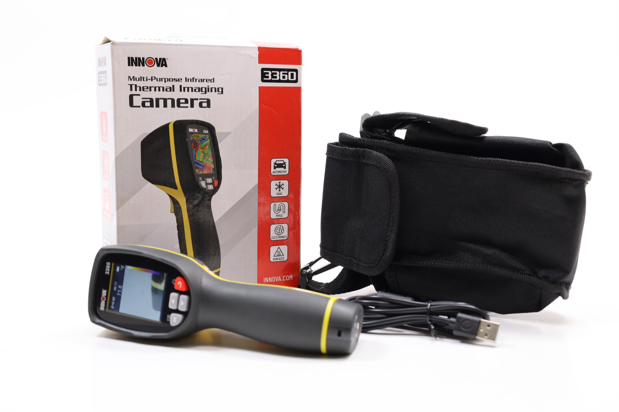 This multi-purpose thermal camera employs advanced infrared technology to swiftly detect invisible issues by recording temperatures. Featuring a 2-inch color screen with four color palette options, the camera provides real-time thermal data. It is IP54 rated for added protection against dust and oil, and has a wide measuring range of -4F to 1112F, making it versatile for various industries. In automotive settings, it can identify issues like seized brake calipers and cooling system failures; in electronics, it can spot wiring and fuse problems; and in home and plumbing, it can locate water blockages, leaks, and HVAC inefficiencies.