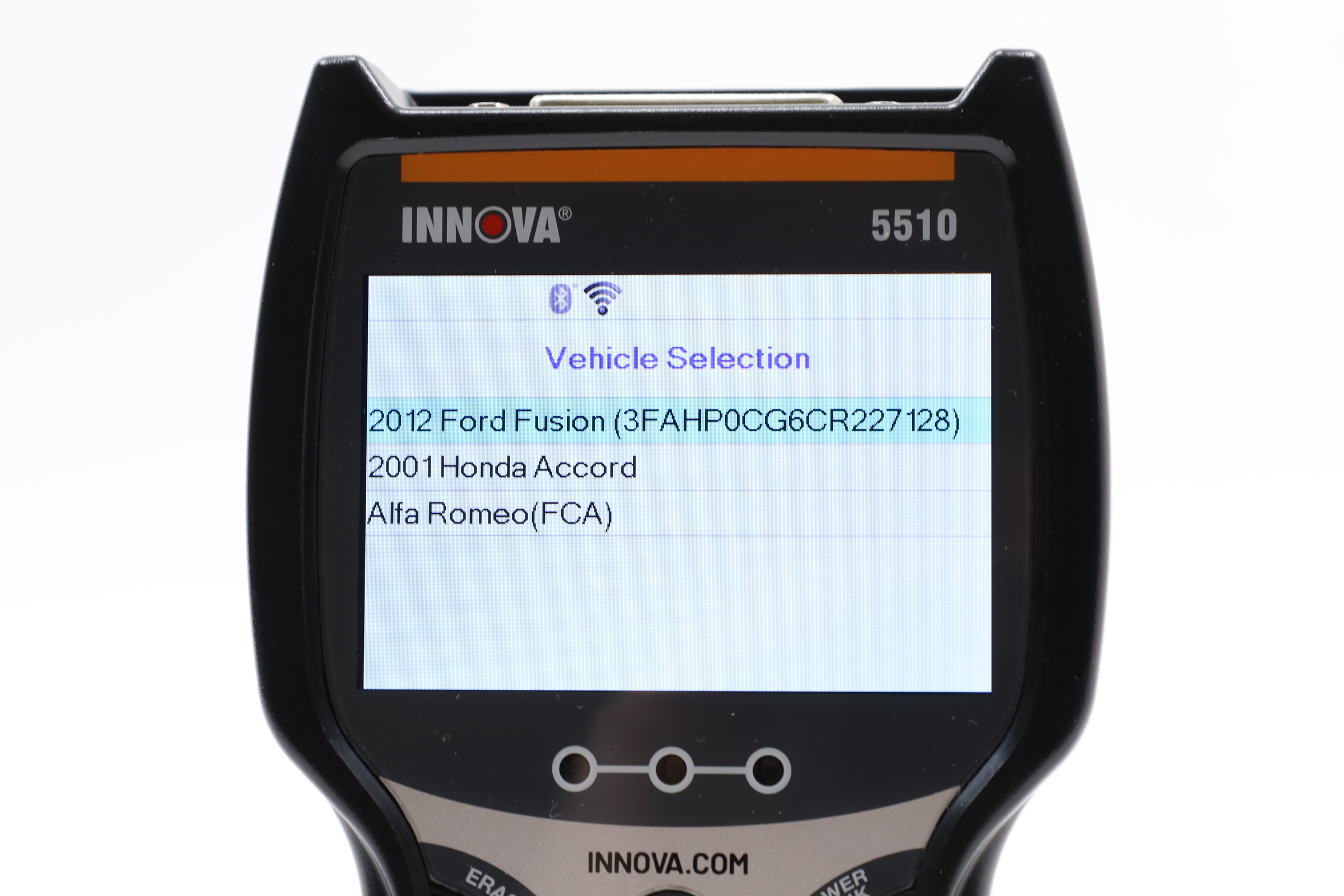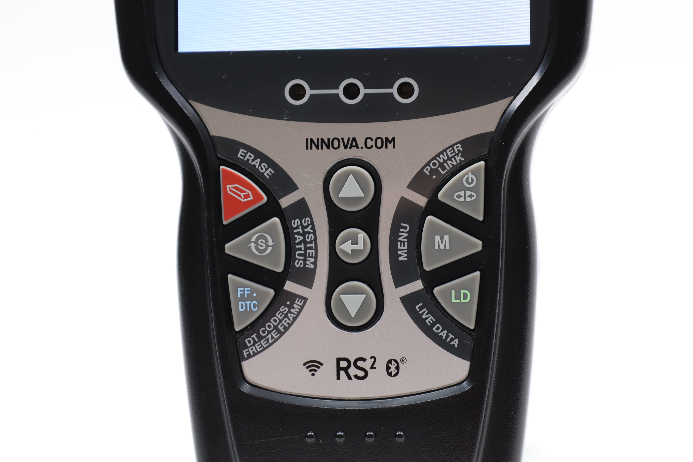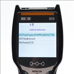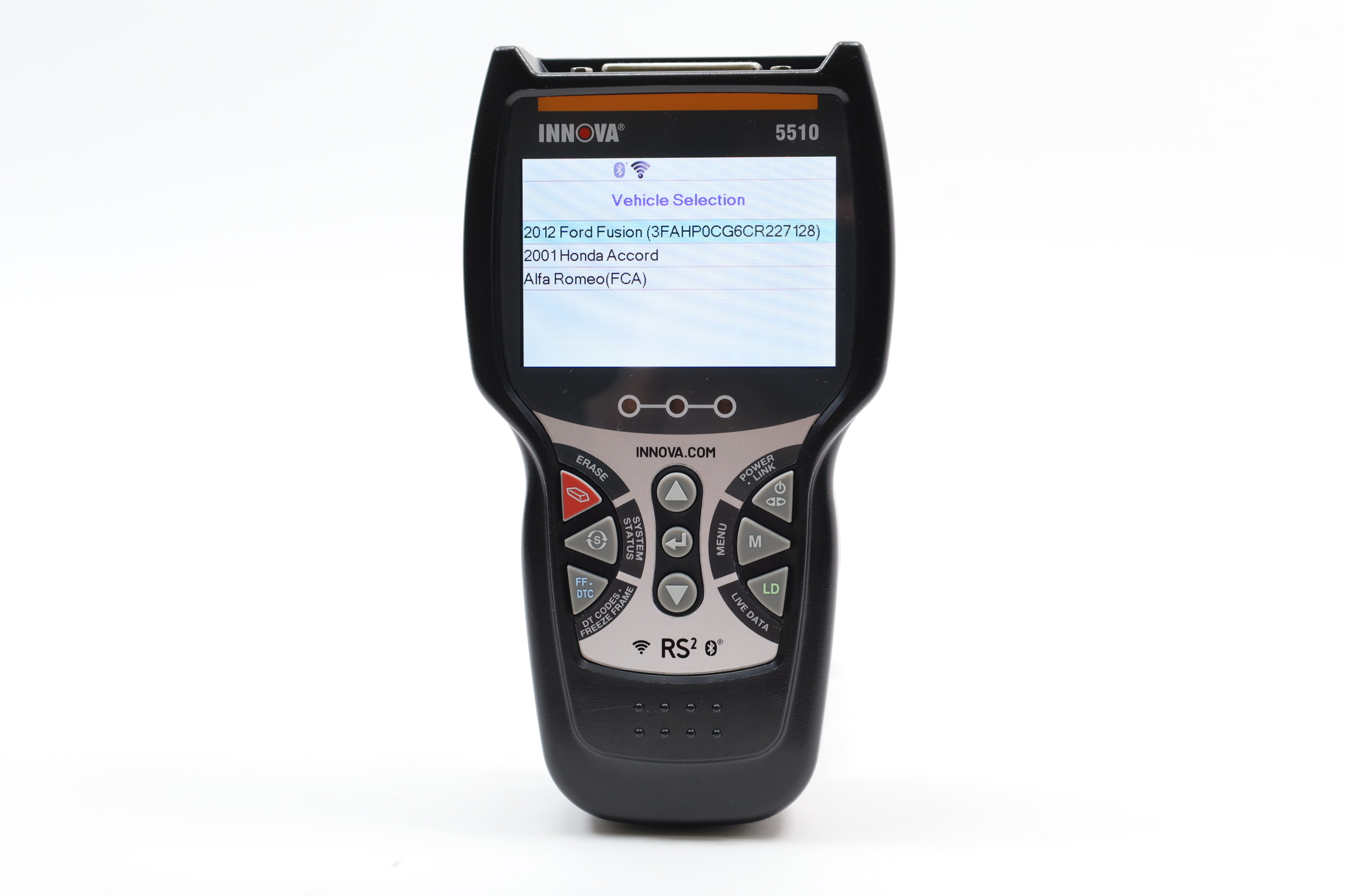 A versatile automotive diagnostic tool designed to help maintain peak vehicle performance and safety. It allows users to easily identify and resolve automotive issues with its OBD2 Bluetooth app, RepairSolutions2, offering real-time troubleshooting solutions, access to a comprehensive database, and assistance in finding the right parts for repairs. This scanner excels in reading and clearing check engine lights, and provides diagnostics for ABS, brake pad life, oil system, tire pressure, and transmission temperature. Additionally, it can test hybrid battery cells. The Innova 5510 features capabilities to graph, record, and playback vehicle data for thorough analysis. It also aids in self-diagnosis of emission status, helping users anticipate smog test results.