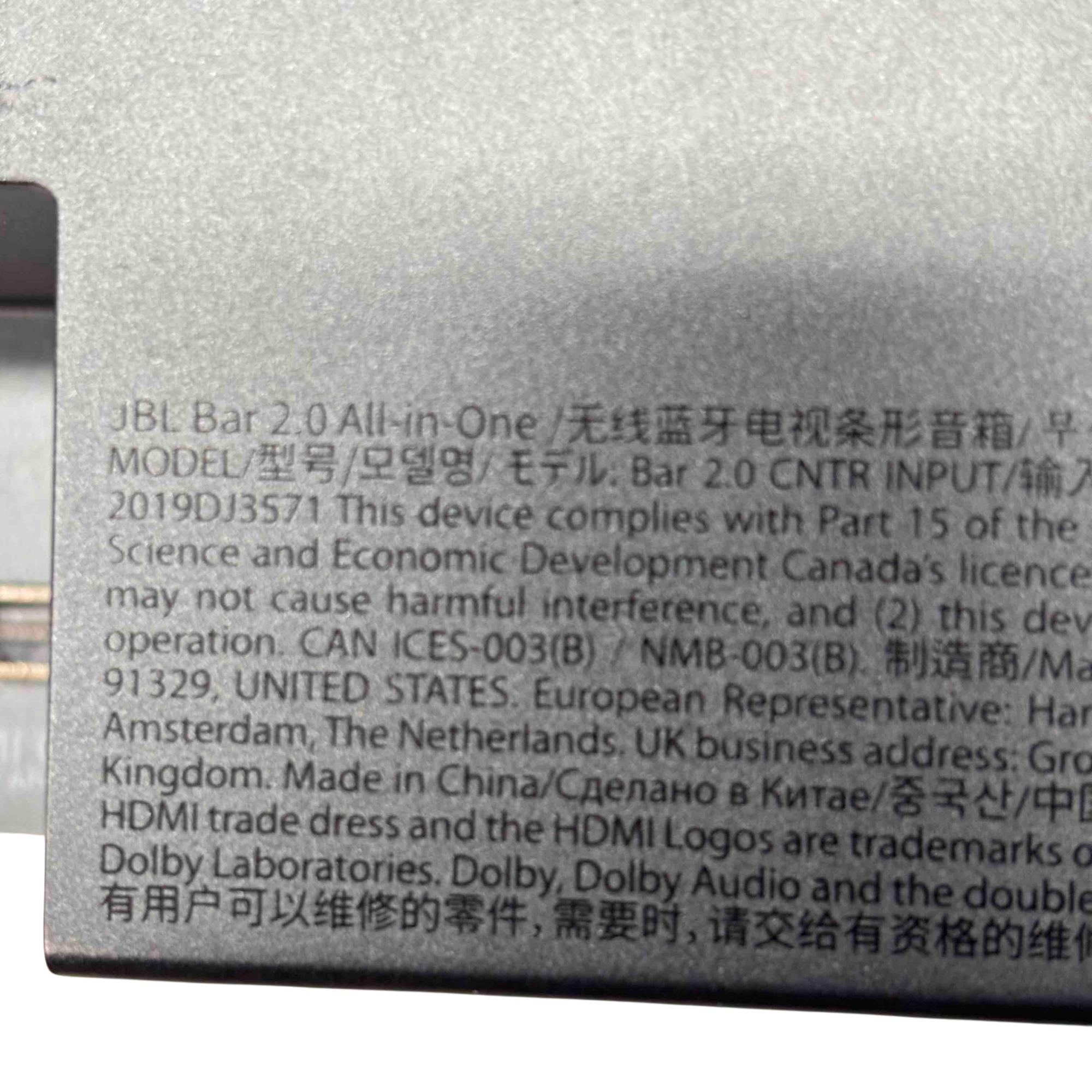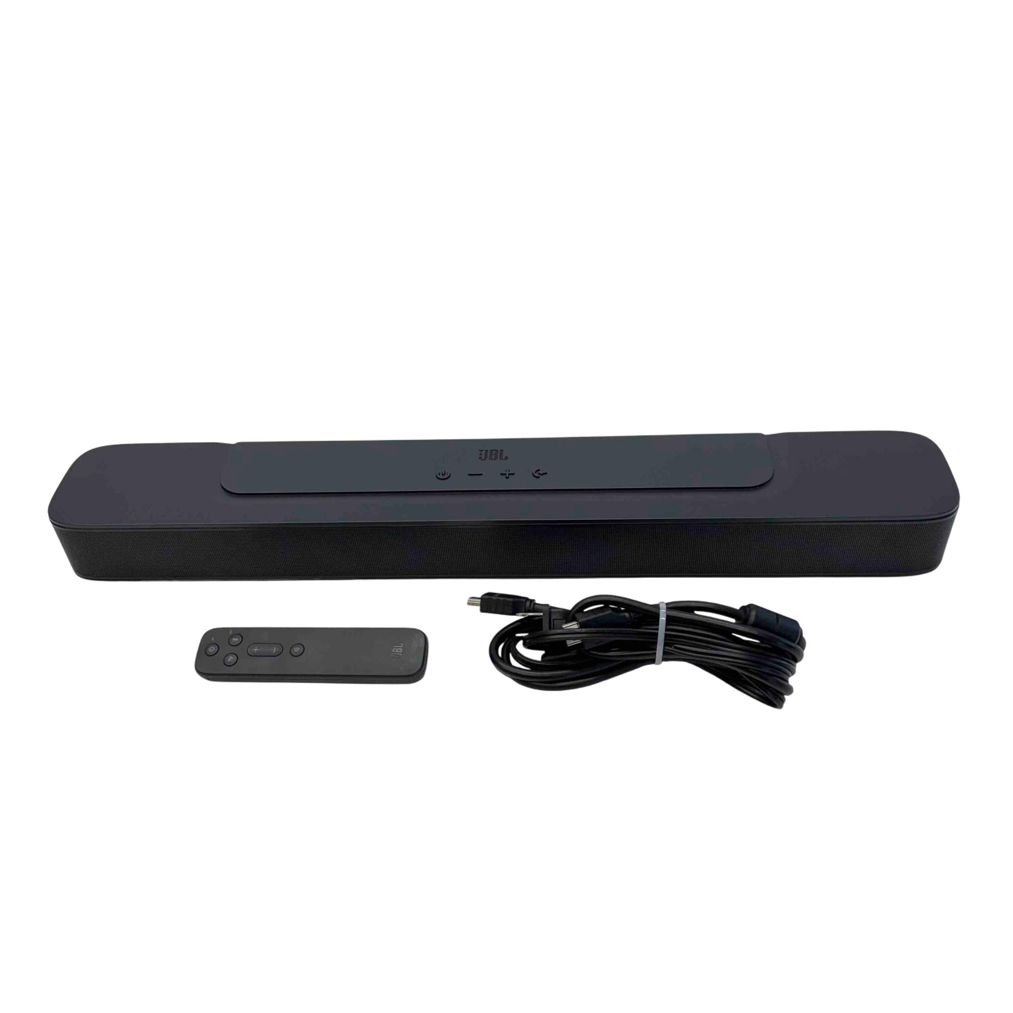Upgrade your entertainment setup with the JBL Bar 2.0 All-in-One Soundbar. This sleek, black rectangular speaker offers powerful sound with Bluetooth connectivity, HDMI ARC support, and a user-friendly remote control, making it the perfect addition to any home theater system.