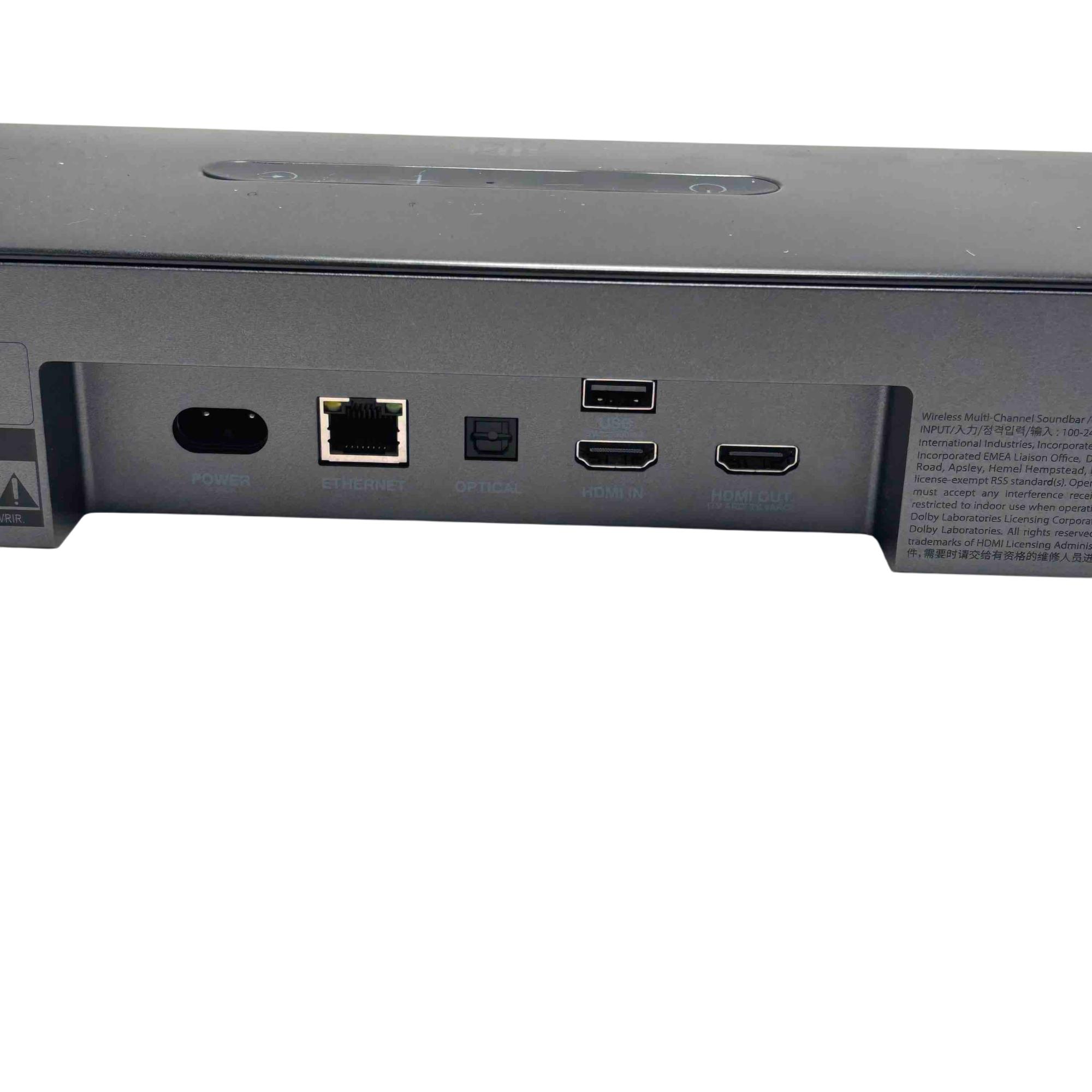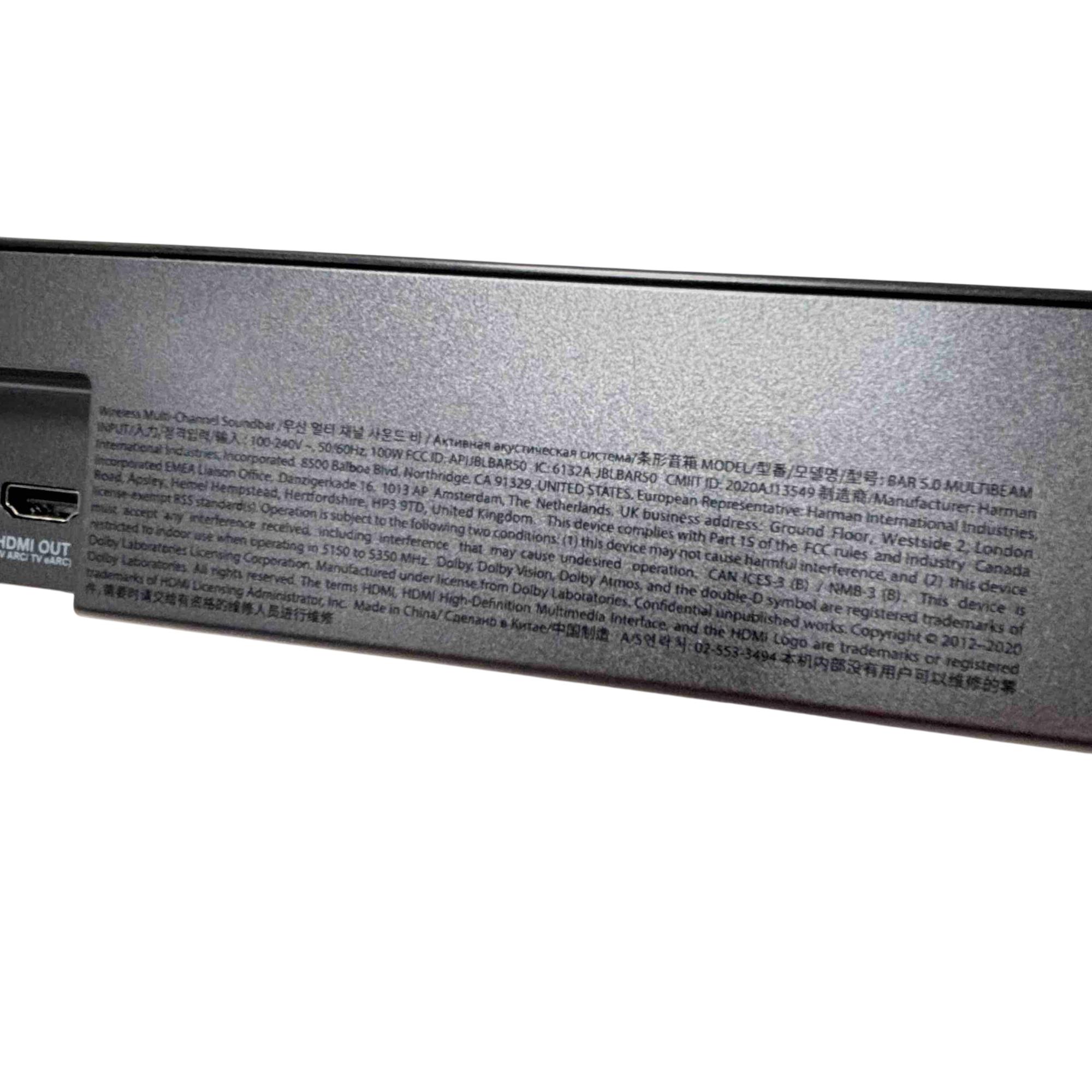 Experience immersive audio with the JBL Bar 5.0 MultiBeam, a premium wireless multi-channel soundbar engineered by Harman International. Enjoy Dolby Atmos technology, rich surround sound, wireless convenience, and easy integration with your home entertainment setup. Perfect for epic movie nights and music sessions, this modern black soundbar comes with remote and cables included.