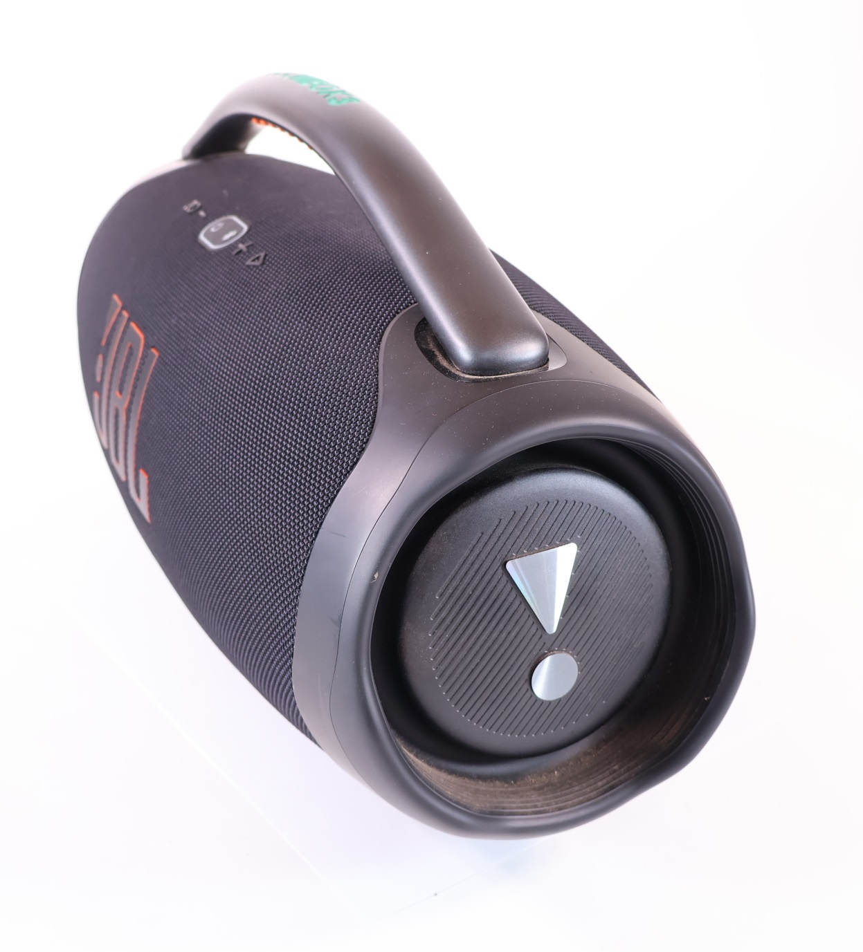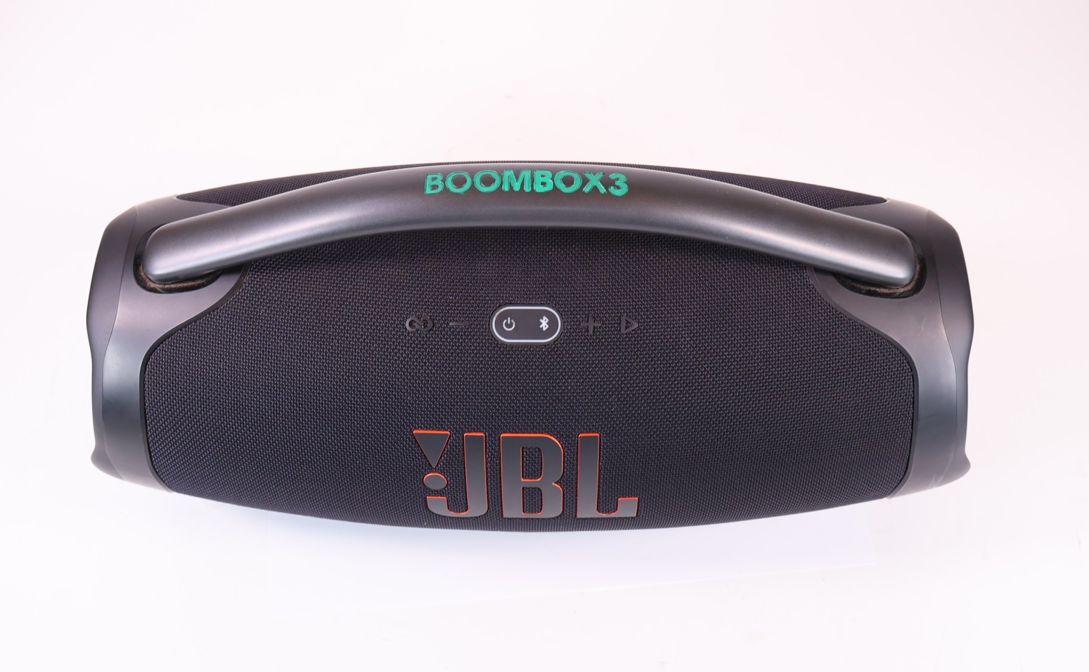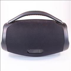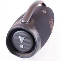 Massive sound. All day long. We just made our most powerful portable Bluetooth speaker even better. The iconic silhouette of the JBL Boombox 3 has a bold update featuring a sturdy metal handle with silicone grips, twin sidecaps, and waterproof and dustproof signature fabric. It’s been redesigned inside too, added with an improved subwoofer unleashing much deeper bass and massive JBL original pro sound, all with lower distortion.