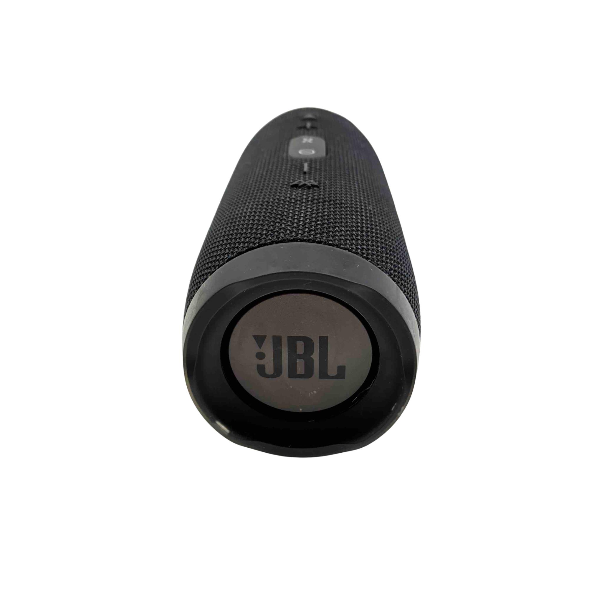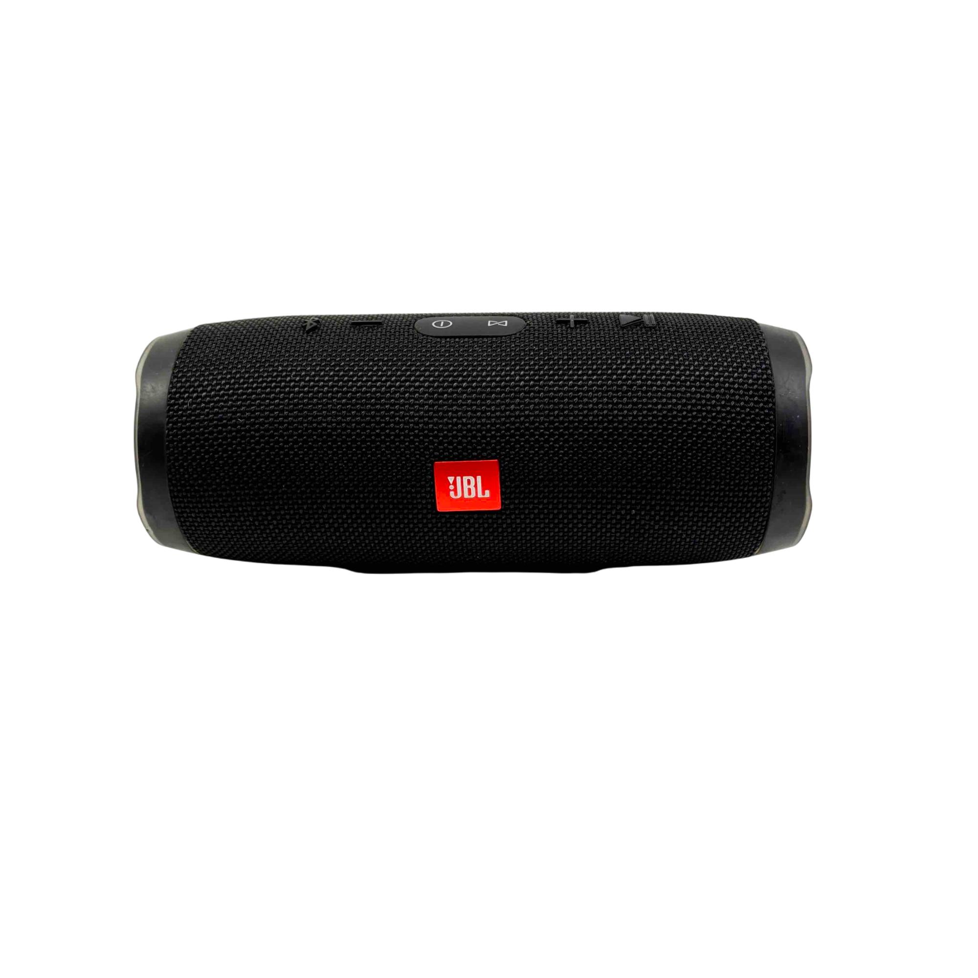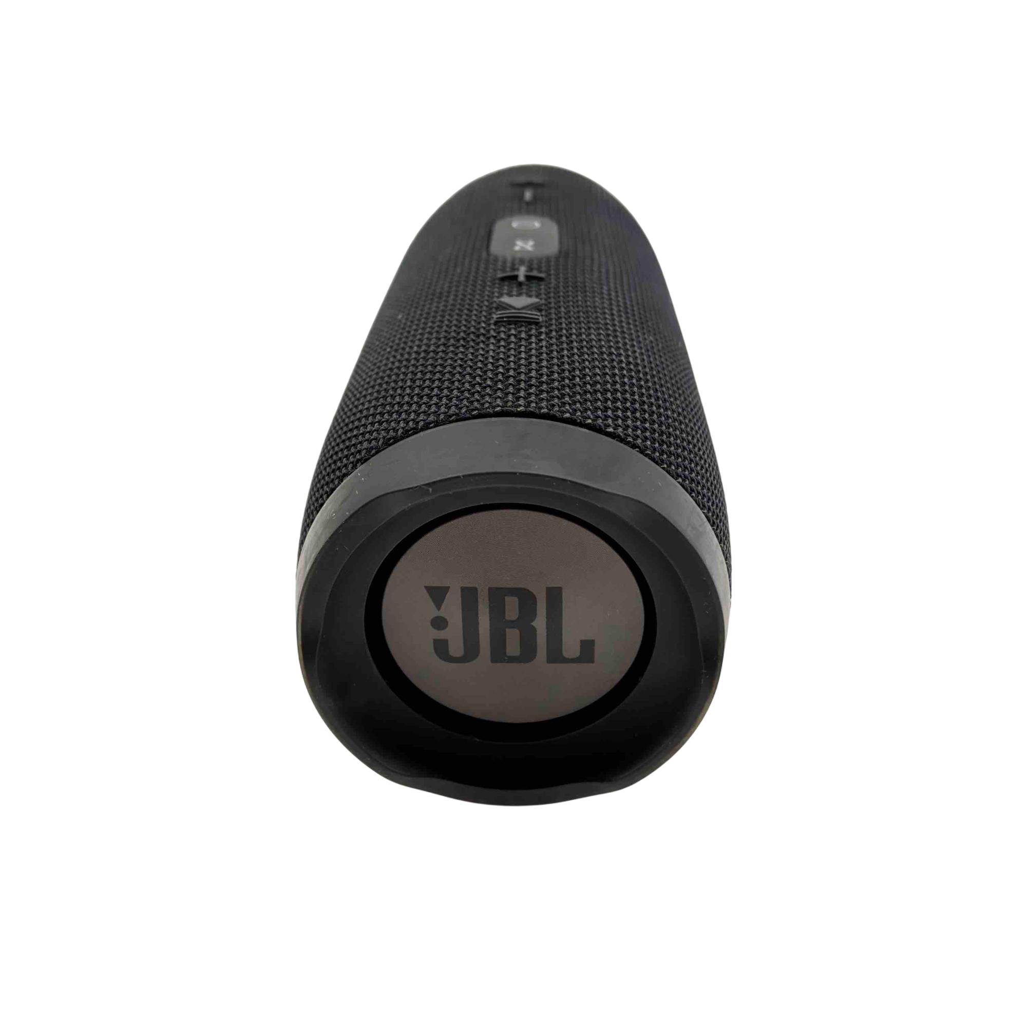 Experience your music like never before with the JBL Charge 3 Portable Bluetooth Speaker. Featuring a waterproof design and built-in power bank, this sleek, black speaker lets you enjoy up to 20 hours of playtime while also charging your devices on the go. Perfect for any adventure, its rugged design comes complemented by high-quality, powerful sound.