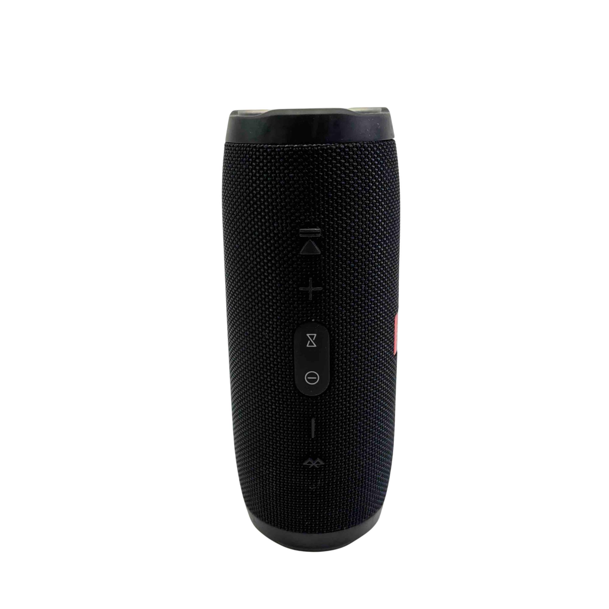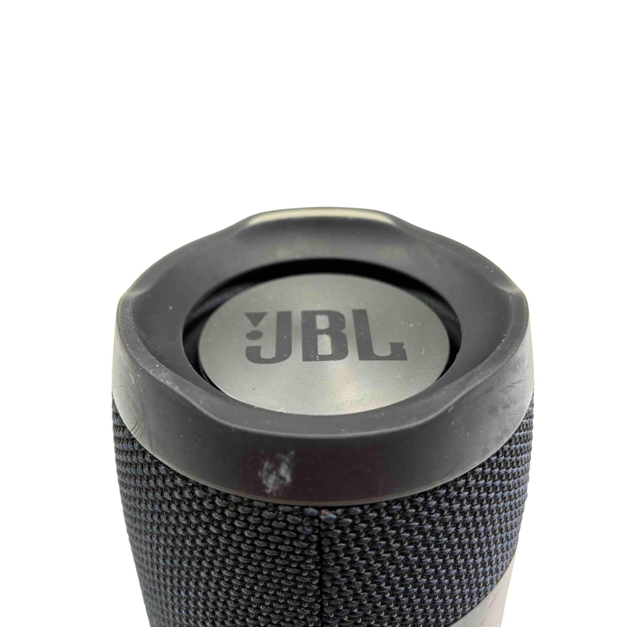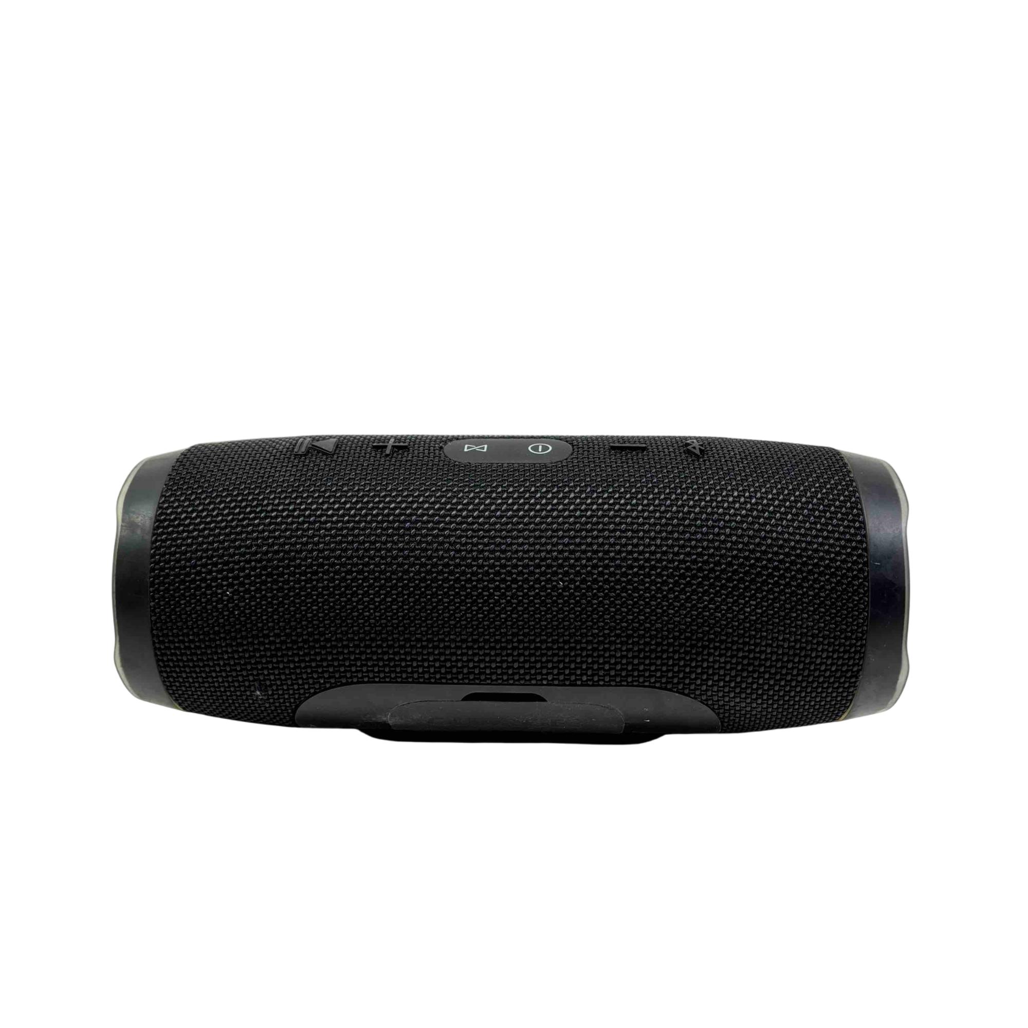 Experience your music like never before with the JBL Charge 3 Portable Bluetooth Speaker. Featuring a waterproof design and built-in power bank, this sleek, black speaker lets you enjoy up to 20 hours of playtime while also charging your devices on the go. Perfect for any adventure, its rugged design comes complemented by high-quality, powerful sound.