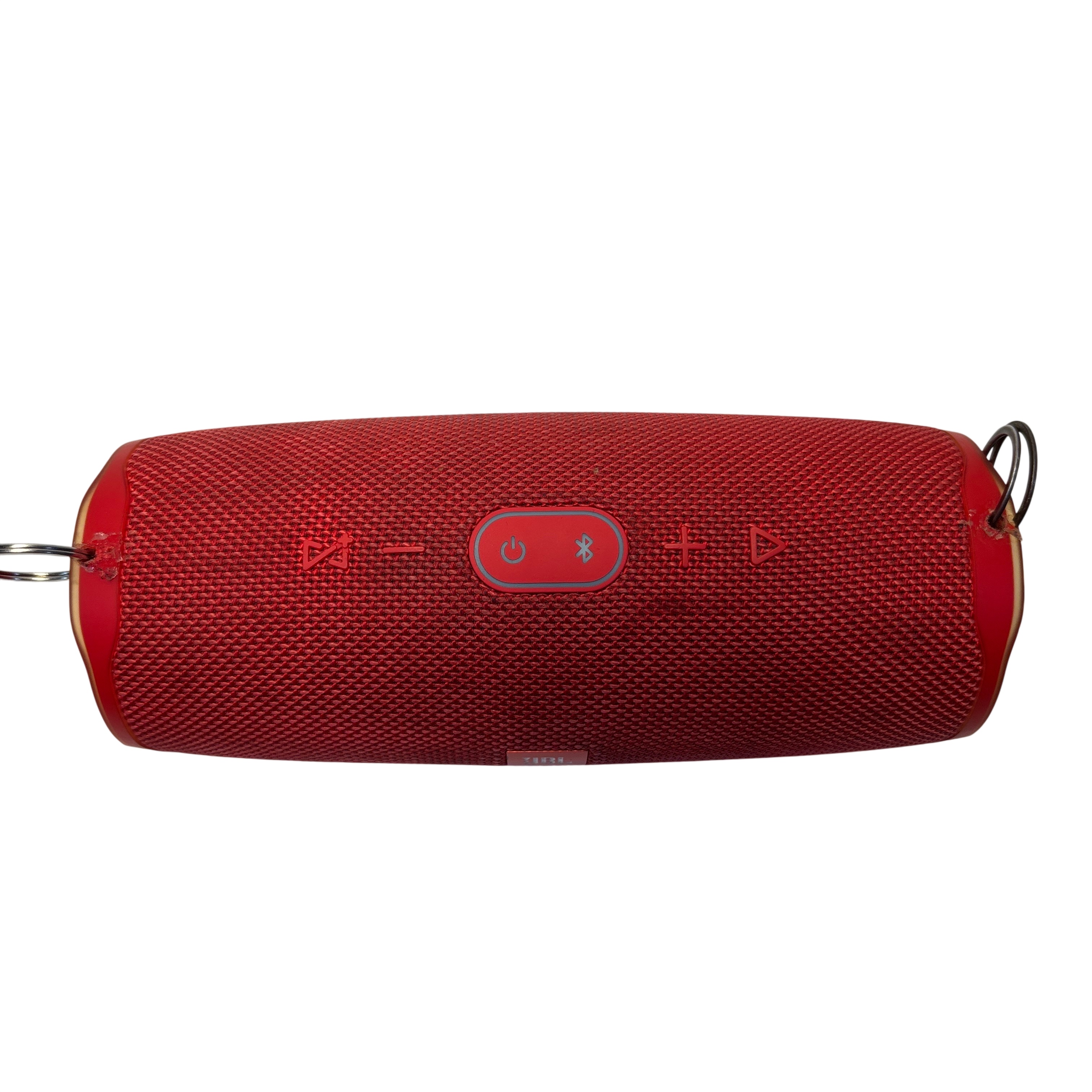 The JBL Charge 4 Portable Bluetooth Speaker delivers powerful 30W sound with deep bass in a compact, waterproof design. This red model features IPX7 waterproofing, making it ideal for outdoor use by the pool or at the beach. With up to 20 hours of battery life and a built-in power bank, it keeps your music playing and your devices charged on the go. The speaker supports JBL Connect+ to wirelessly link multiple speakers for an amplified sound experience.
