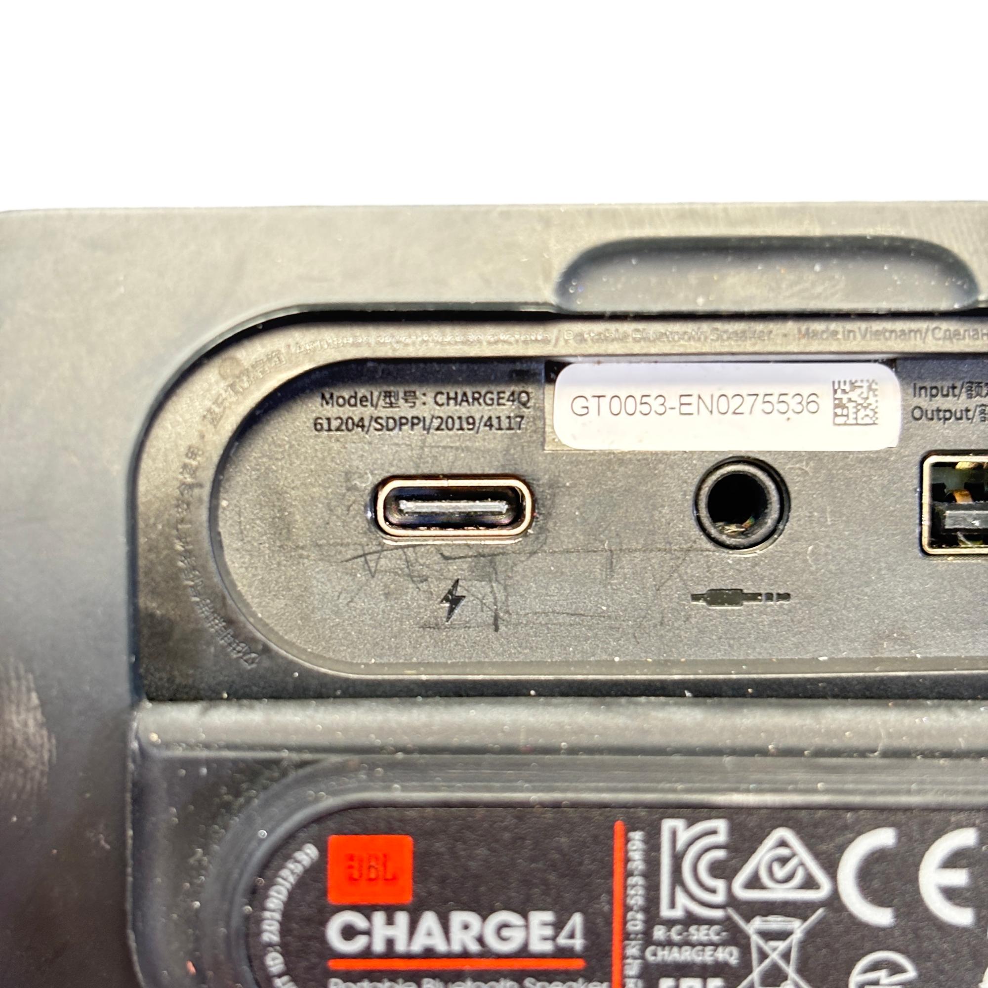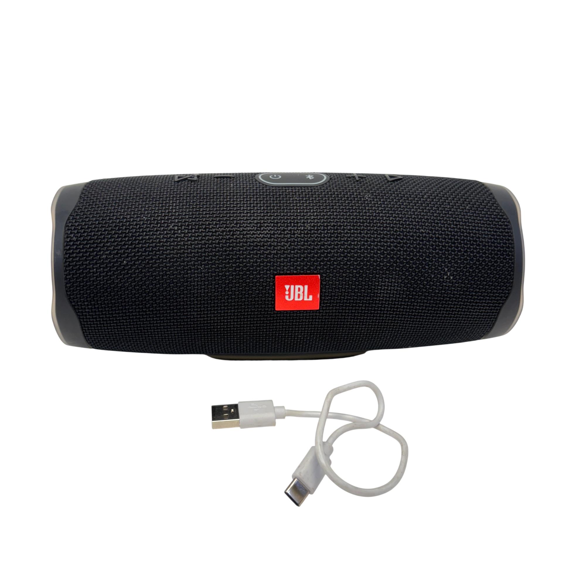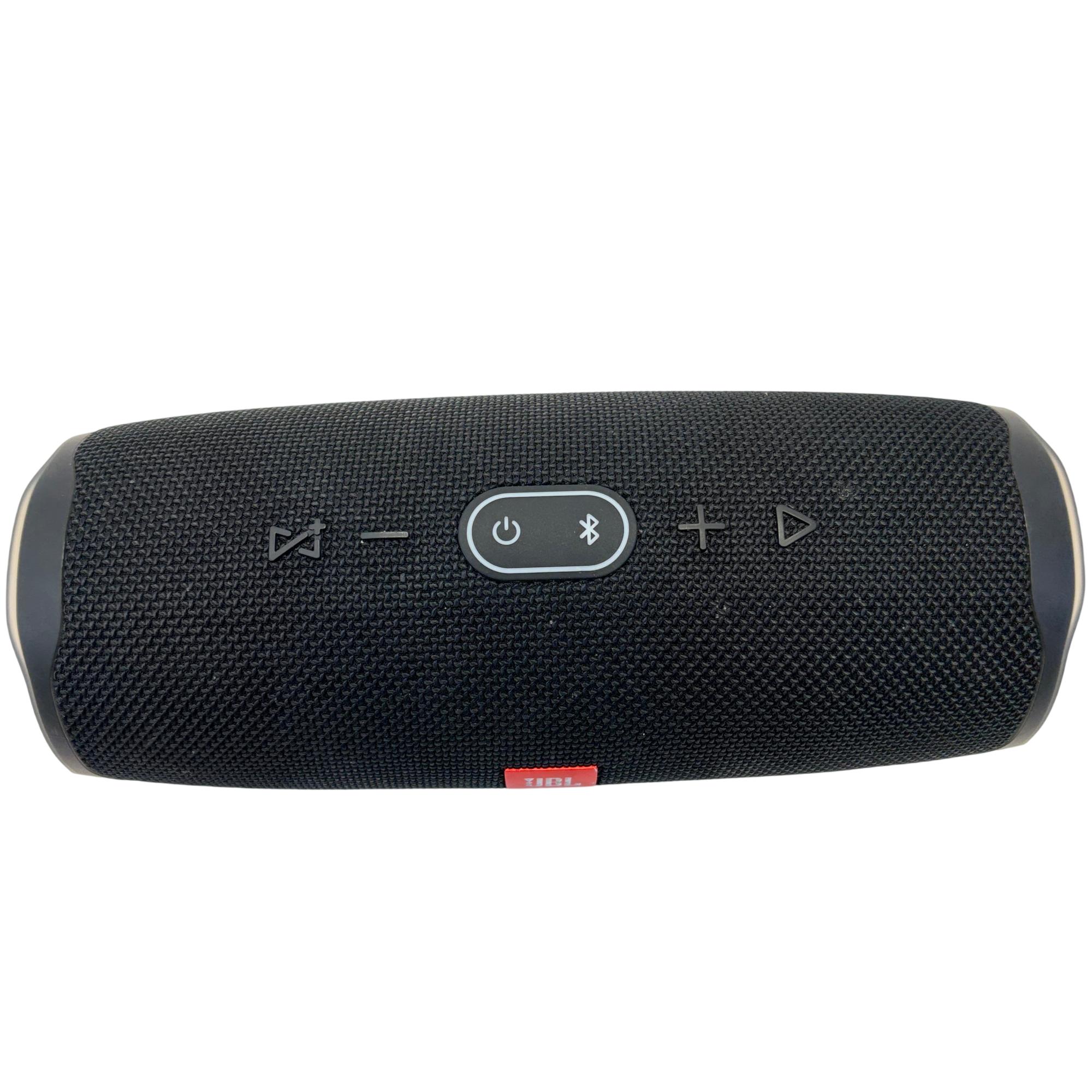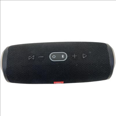 The JBL Charge 4 Portable Bluetooth Speaker delivers powerful, high-quality sound with an ultra-portable design ideal for on-the-go use. This speaker features a robust build with a sleek black finish and a distinct red logo, combining style and durability for outdoor and everyday audio needs.