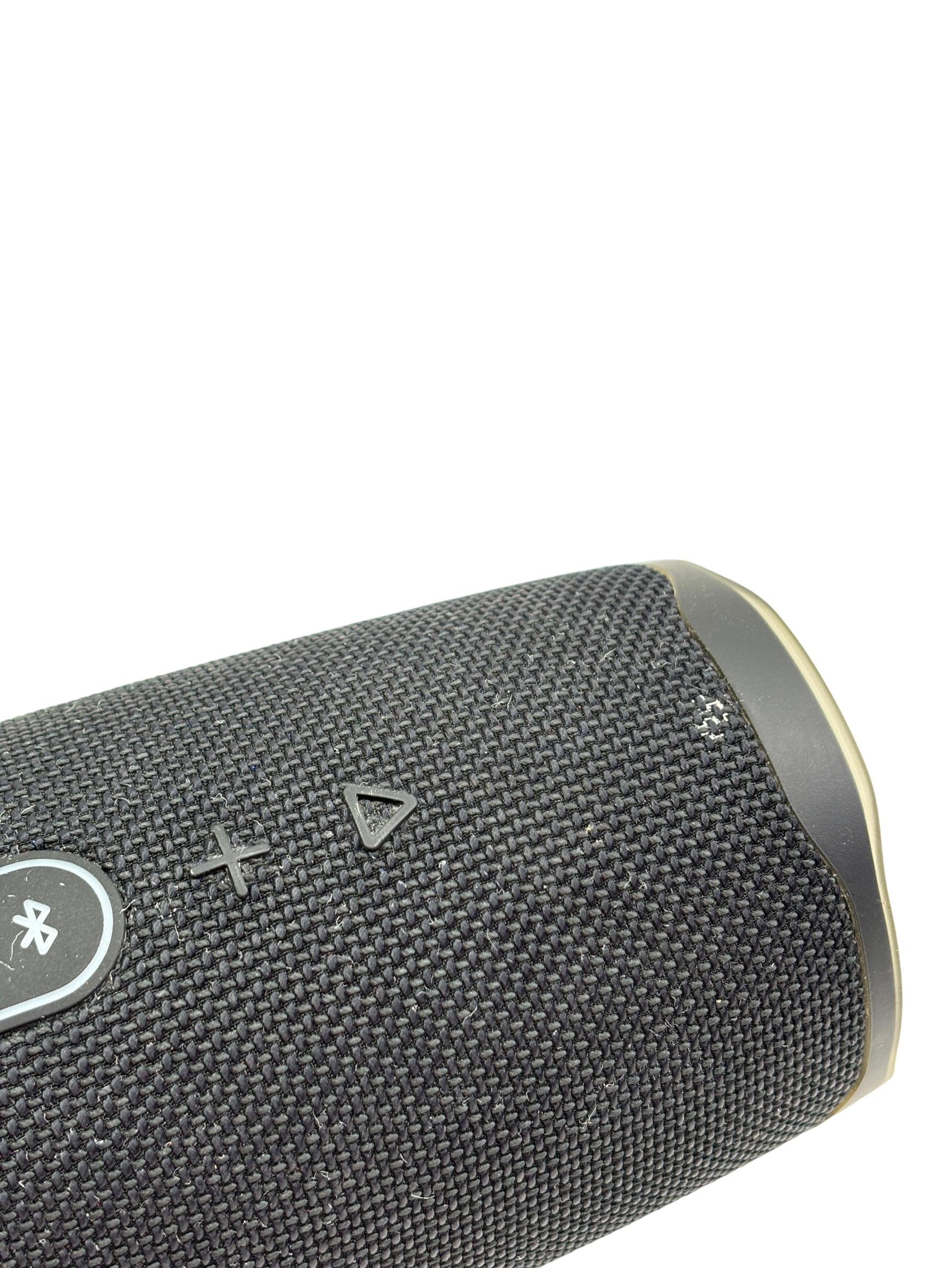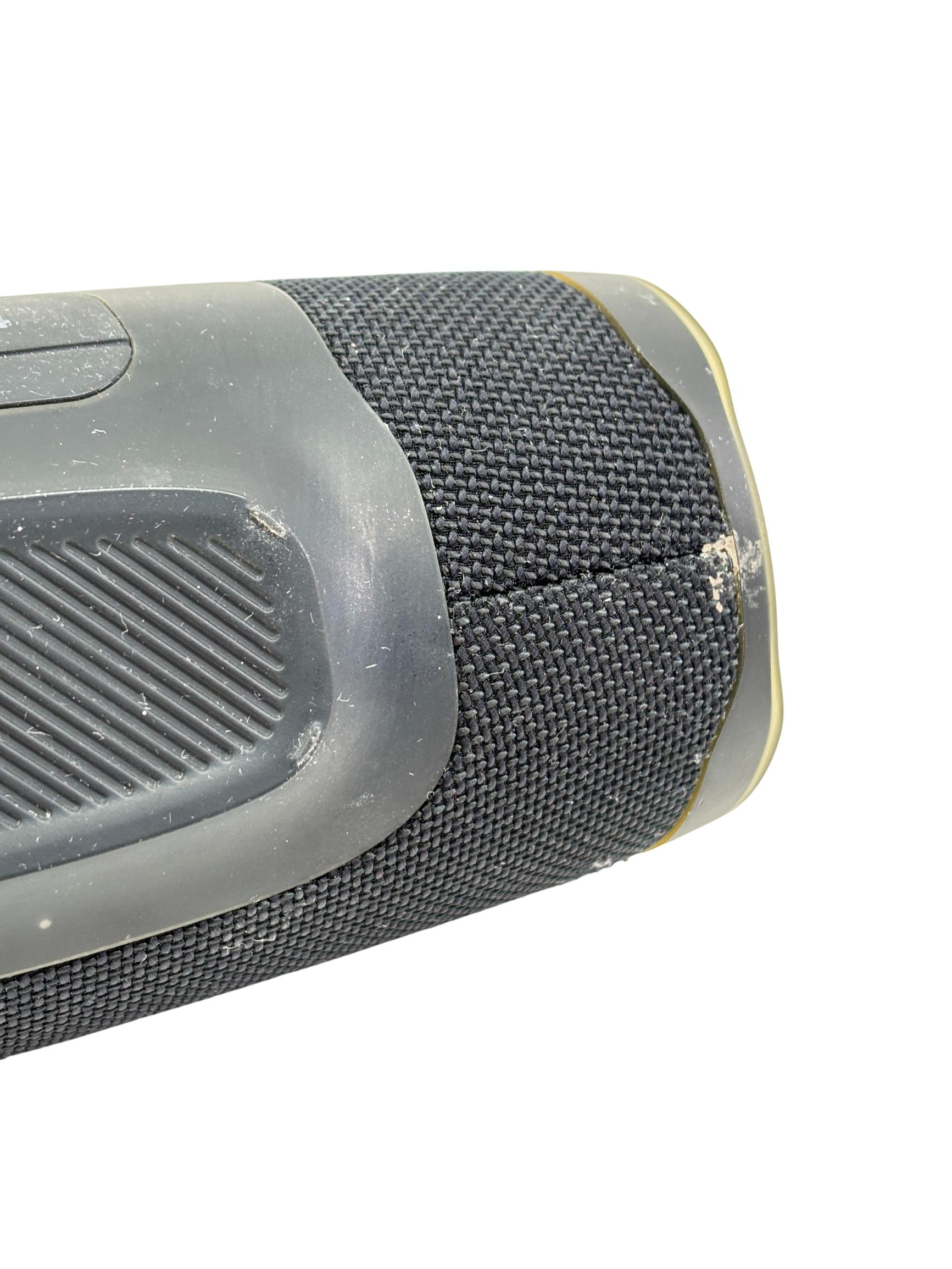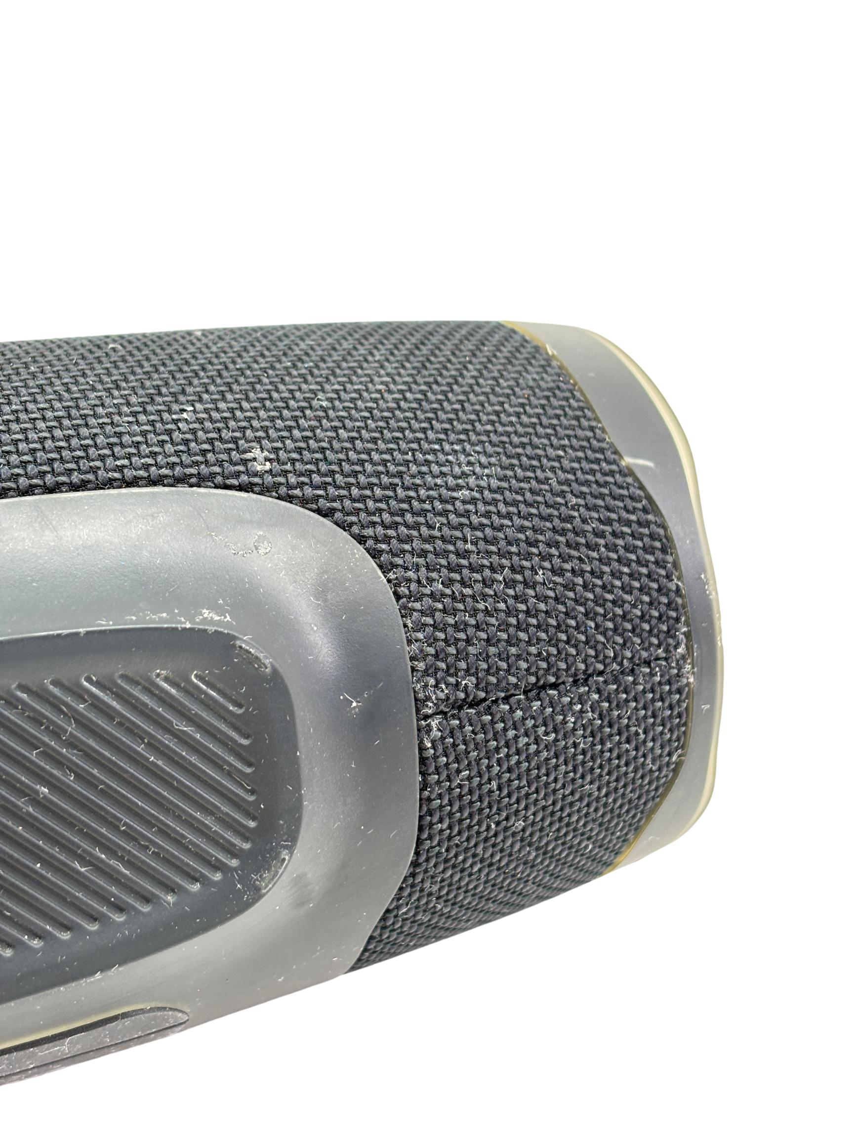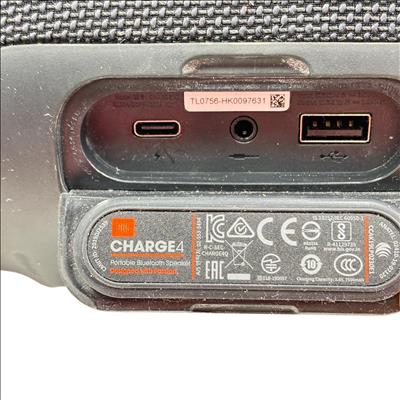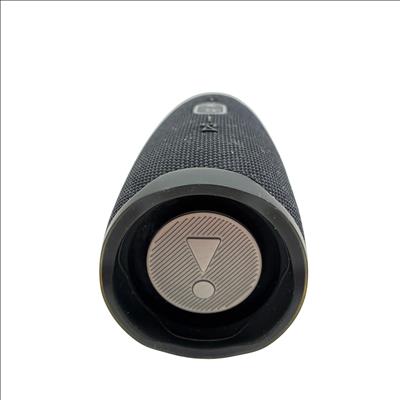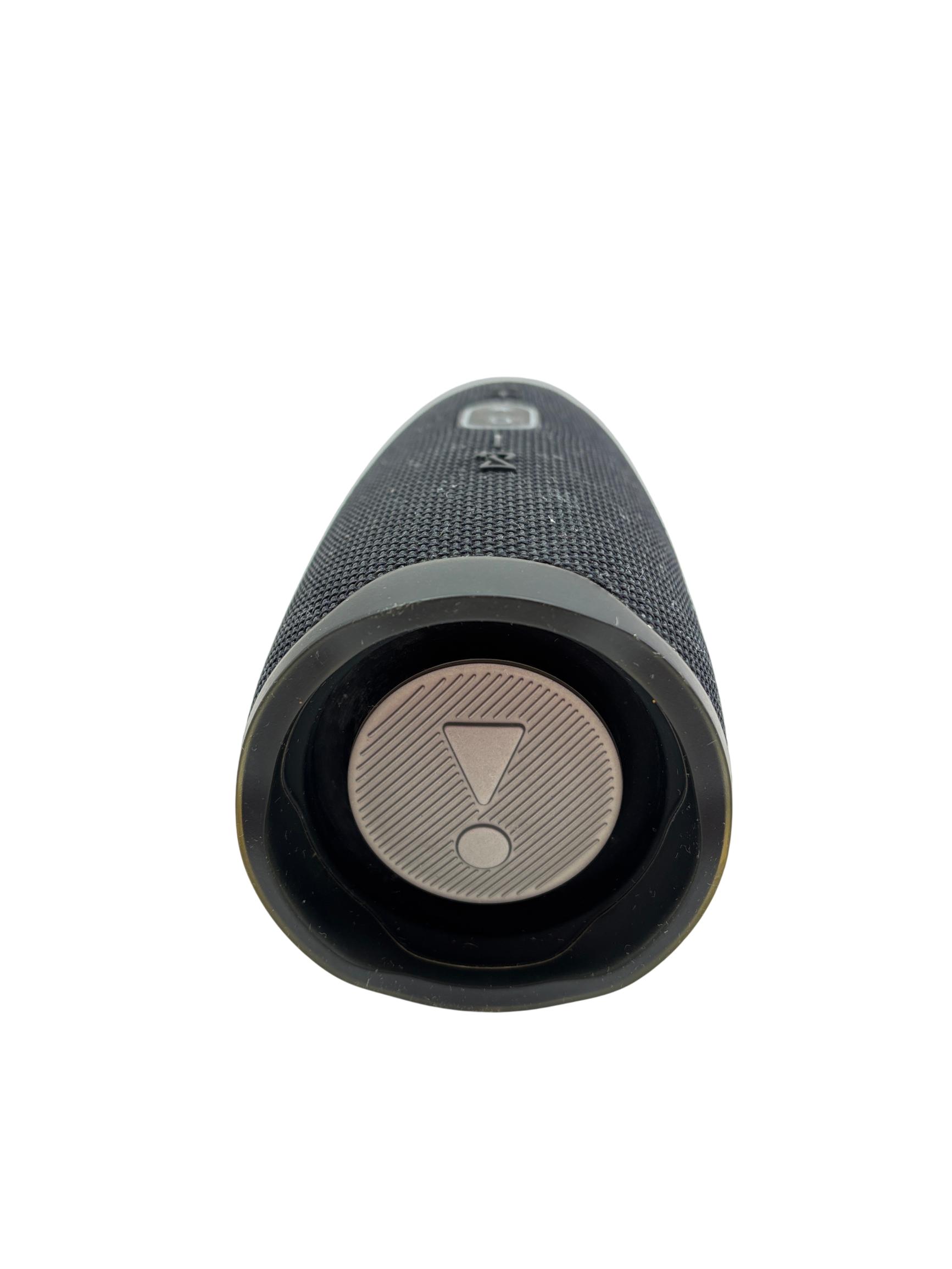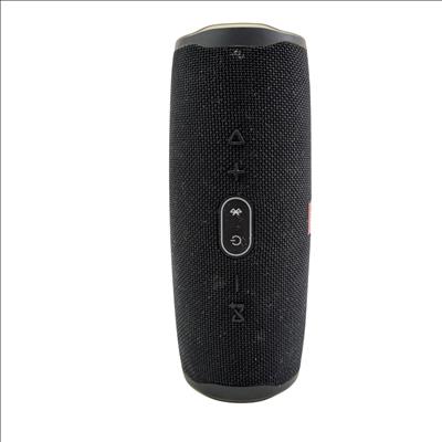 JBL Charge 4 Portable Bluetooth Speaker in black delivers powerful audio with deep bass and clear, balanced sound. Designed for outdoor use, it features a durable, waterproof build and convenient button controls for easy operation on the go.