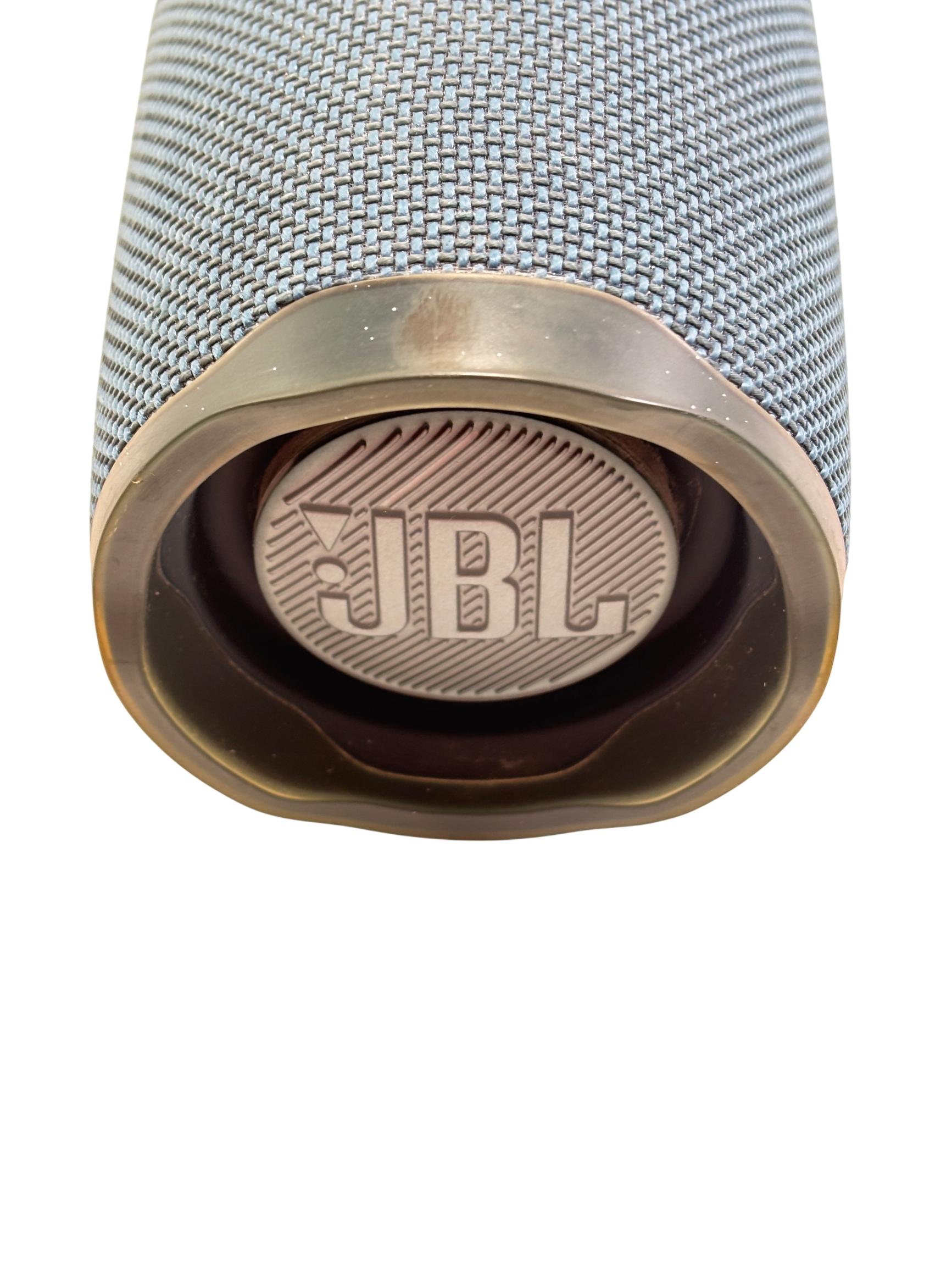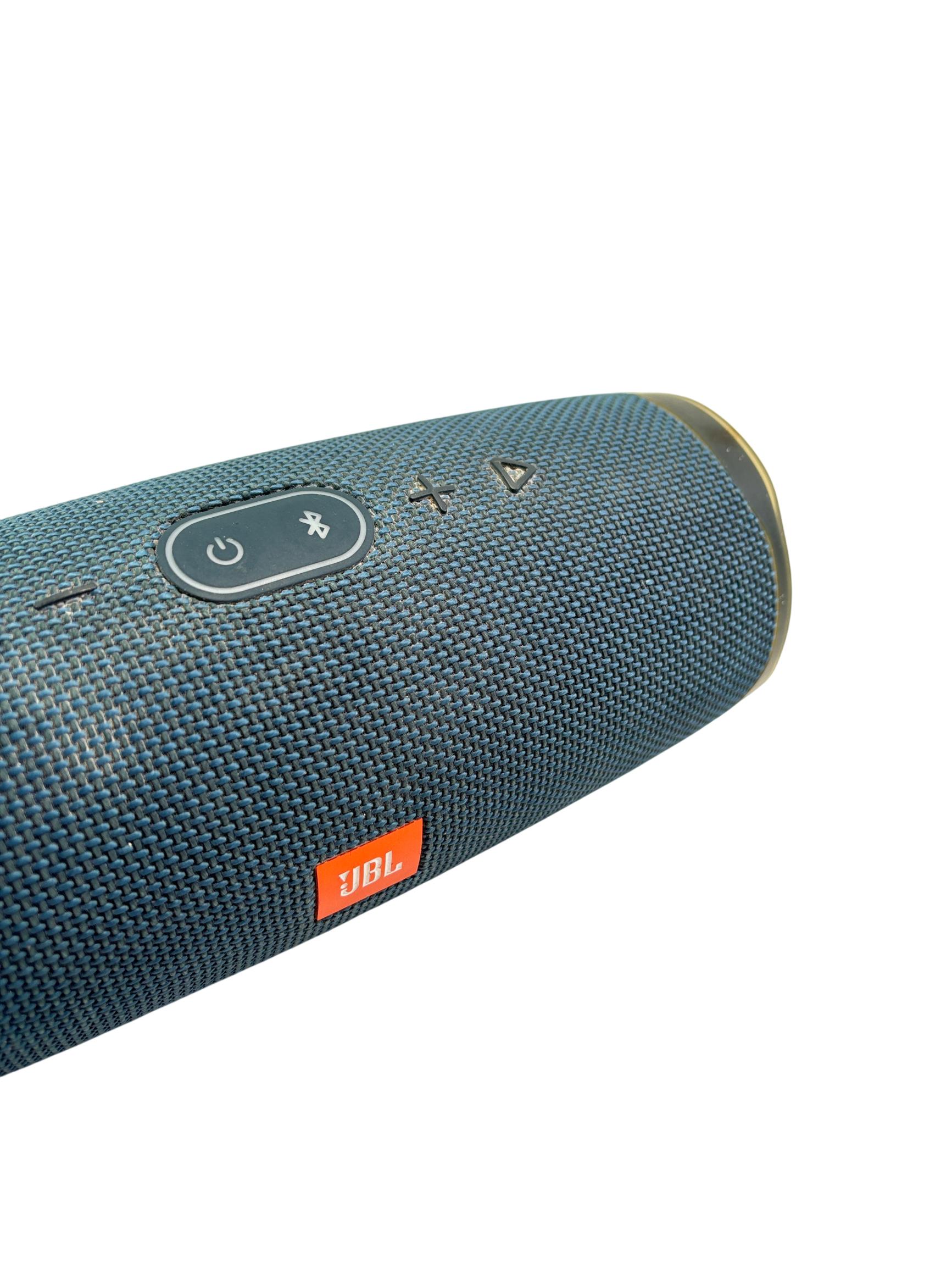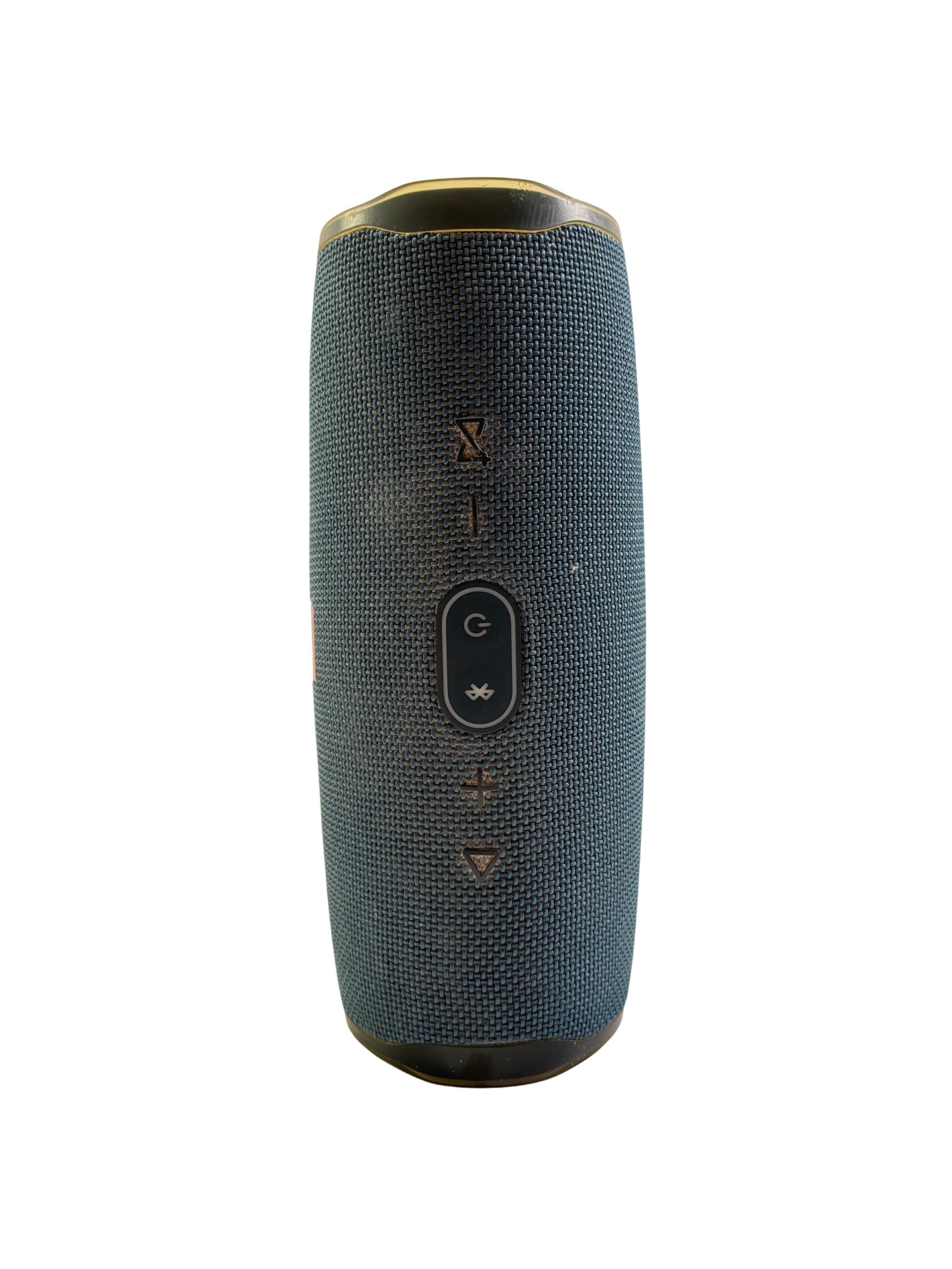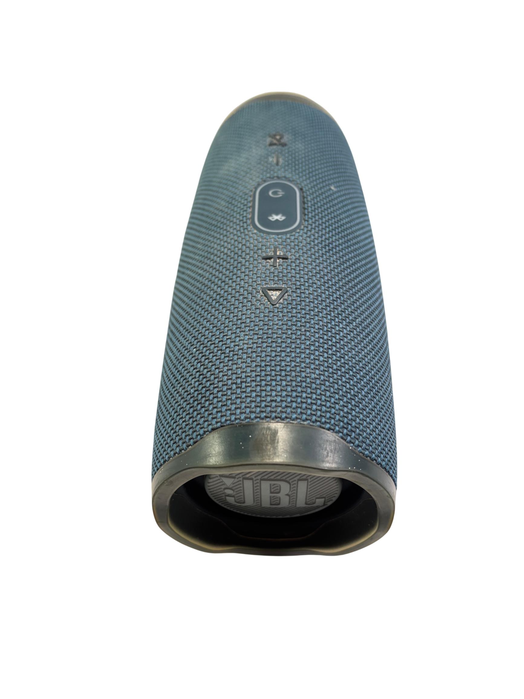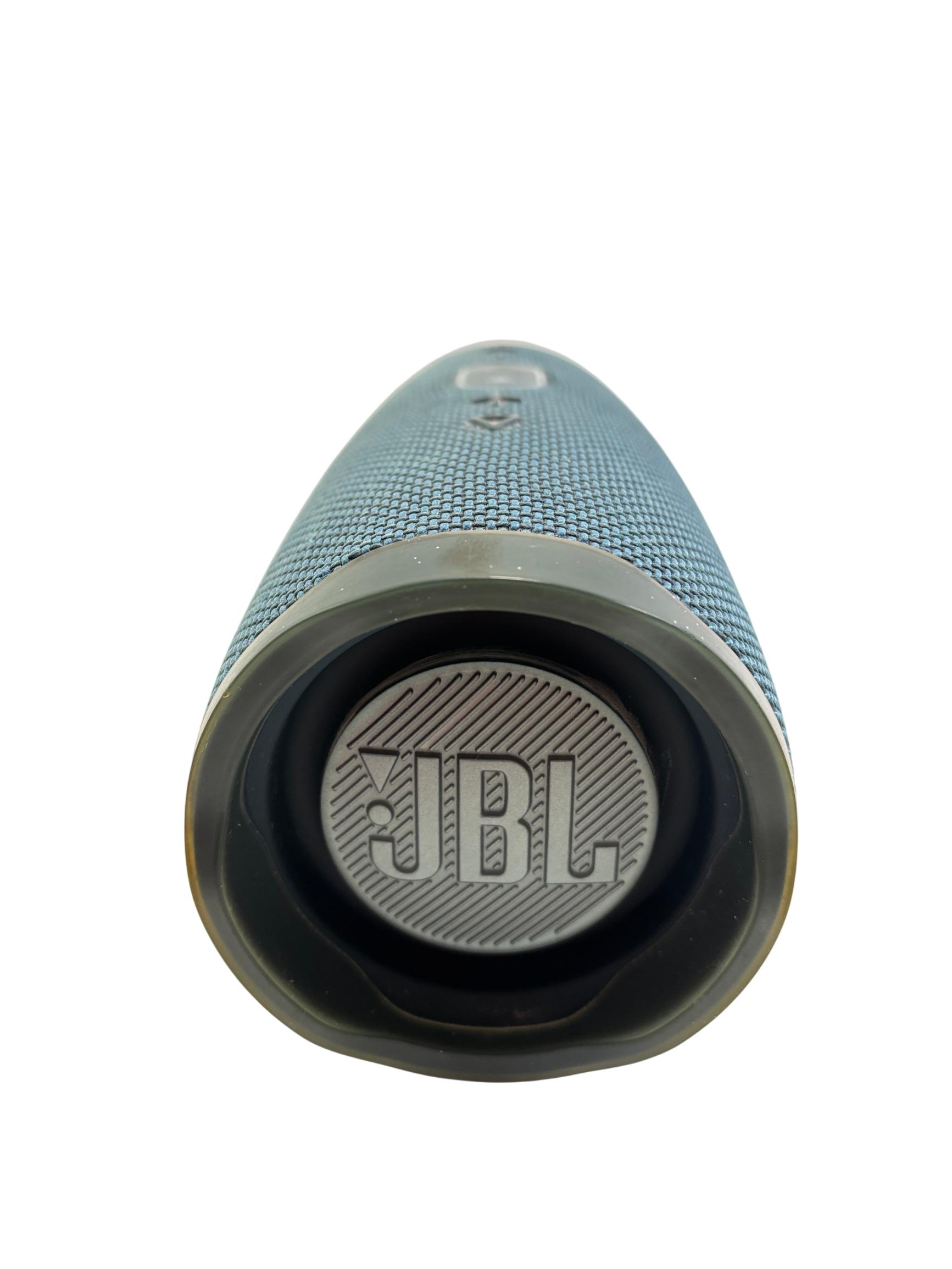 The JBL Charge 4 Portable Waterproof Bluetooth Speaker in blue delivers powerful, high-quality sound with robust bass performance. Designed for on-the-go use, it features a durable waterproof construction and a convenient carry handle for easy portability. This speaker supports seamless wireless Bluetooth connectivity to enhance your music experience anywhere.