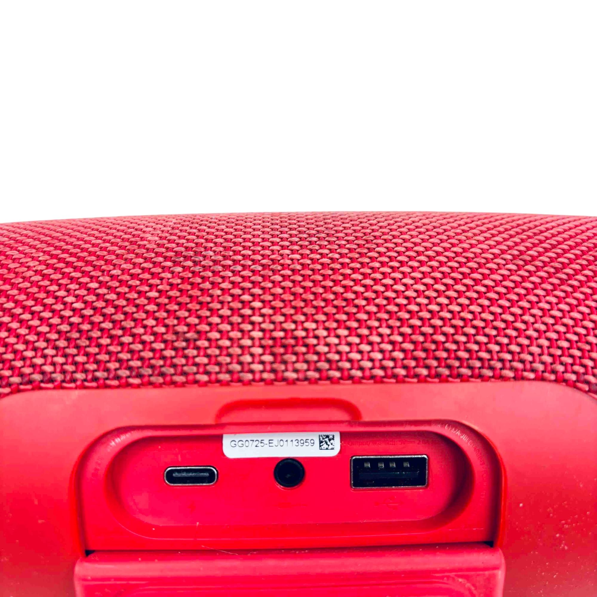 Experience powerful sound anywhere with the JBL Charge 4 Portable Bluetooth Speaker. With its waterproof design and robust battery life, this red wireless speaker is perfect for outdoor adventures, parties, and poolside relaxation. Enjoy legendary JBL sound quality, easy Bluetooth connectivity, and the freedom to charge your devices while you play your favorite tunes.