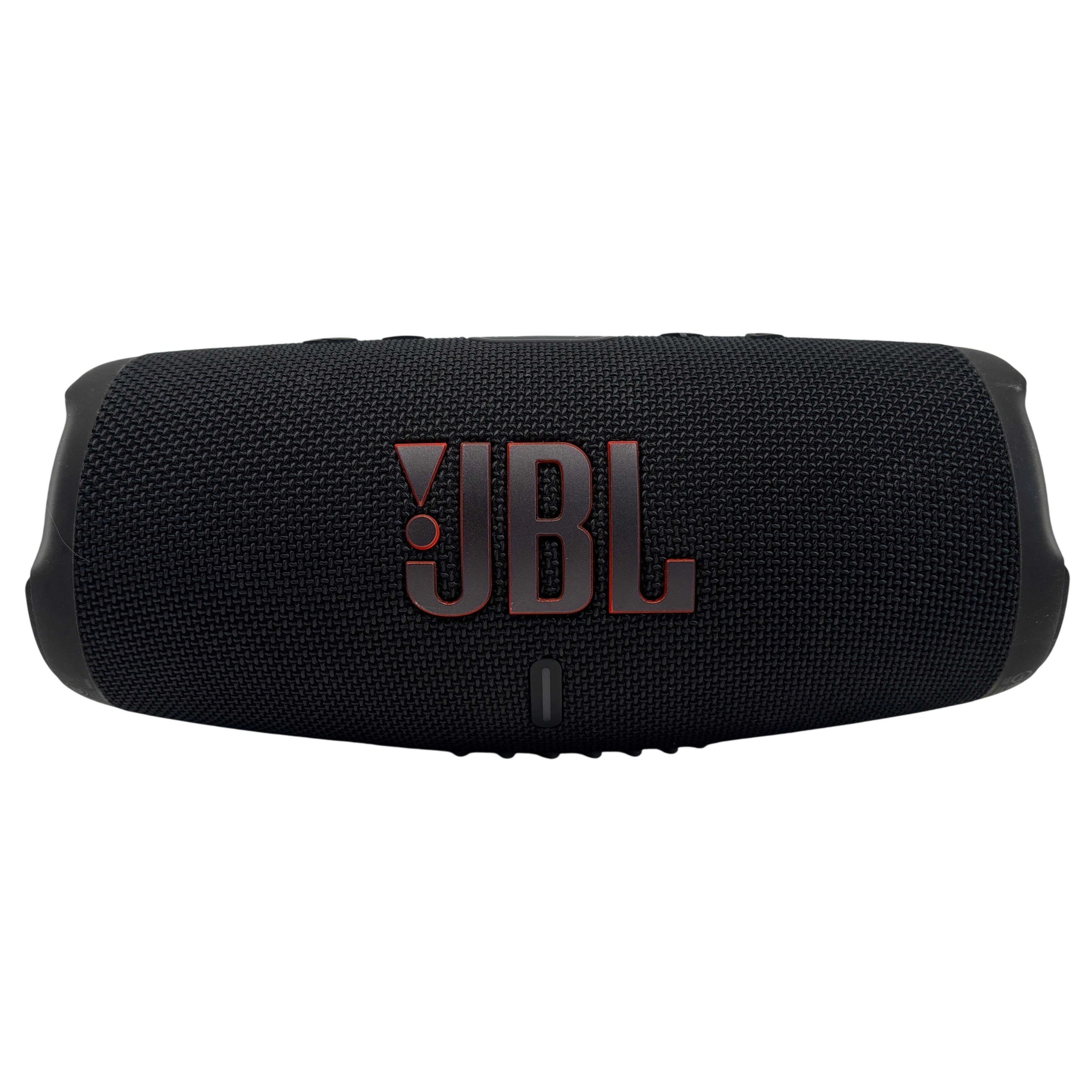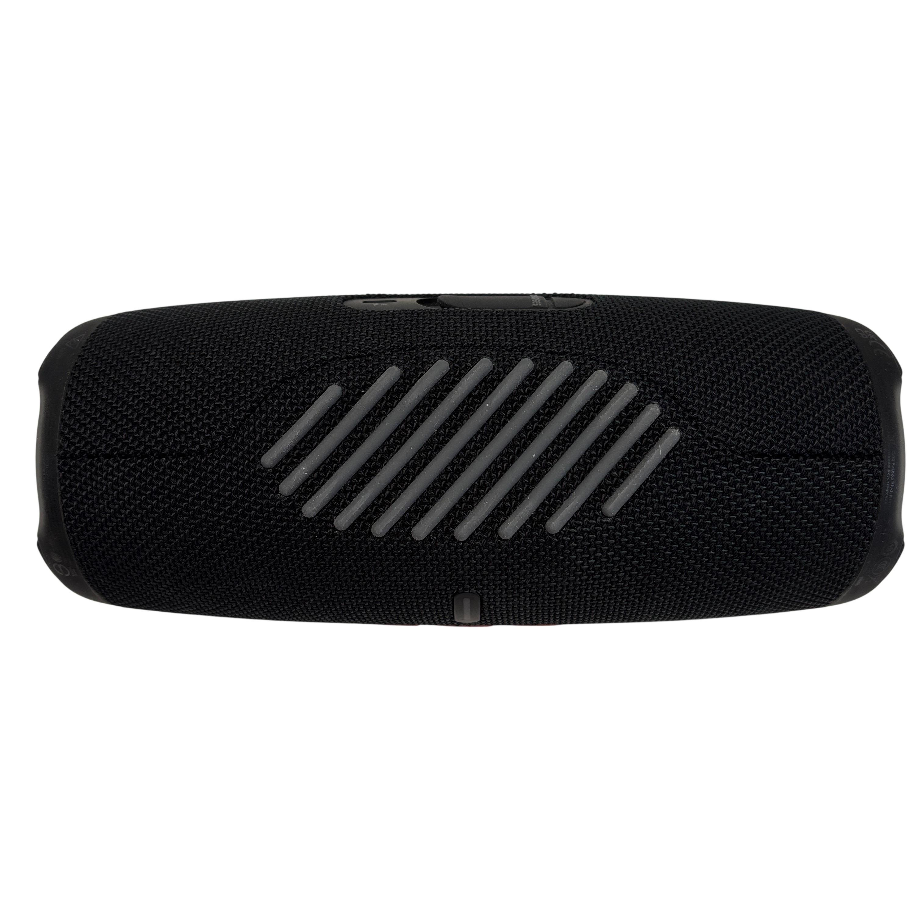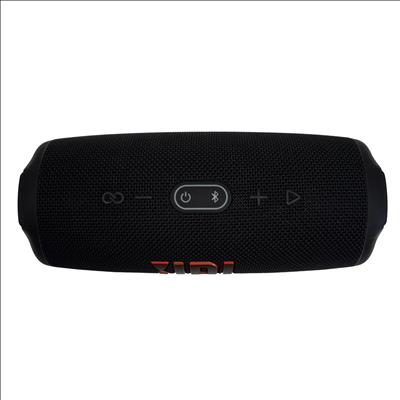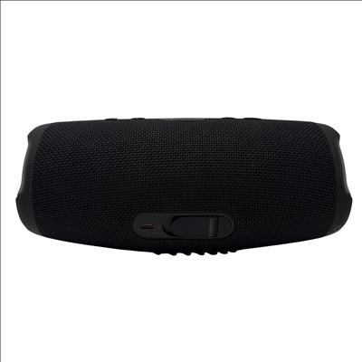 The JBL Charge 5 Black Portable Waterproof Bluetooth Speaker delivers powerful RMS sound with deep bass in a rugged, waterproof design. Featuring Bluetooth connectivity and a rechargeable lithium-ion battery, it offers wireless playback. The speaker also functions as a powerbank via its USB-A output port, allowing you to charge your devices on the go. Compact and durable, the JBL Charge 5 is ideal for outdoor adventures and everyday use.