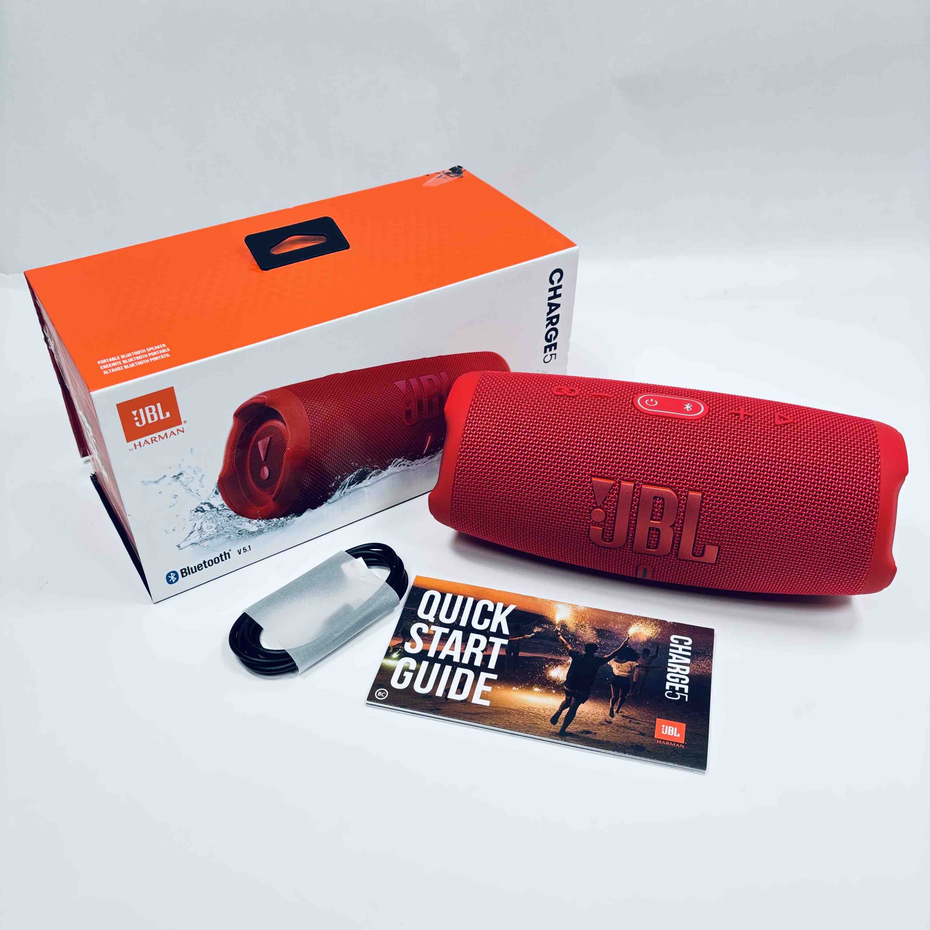 Experience superior sound quality on the go with the JBL Charge 5 Portable Bluetooth Speaker. This vibrant red speaker is designed for adventure, with waterproof and dustproof capabilities and an impressive 20 hours of playtime. Perfect for parties or solo listening sessions, it offers powerful audio performance in a sleek, durable design.