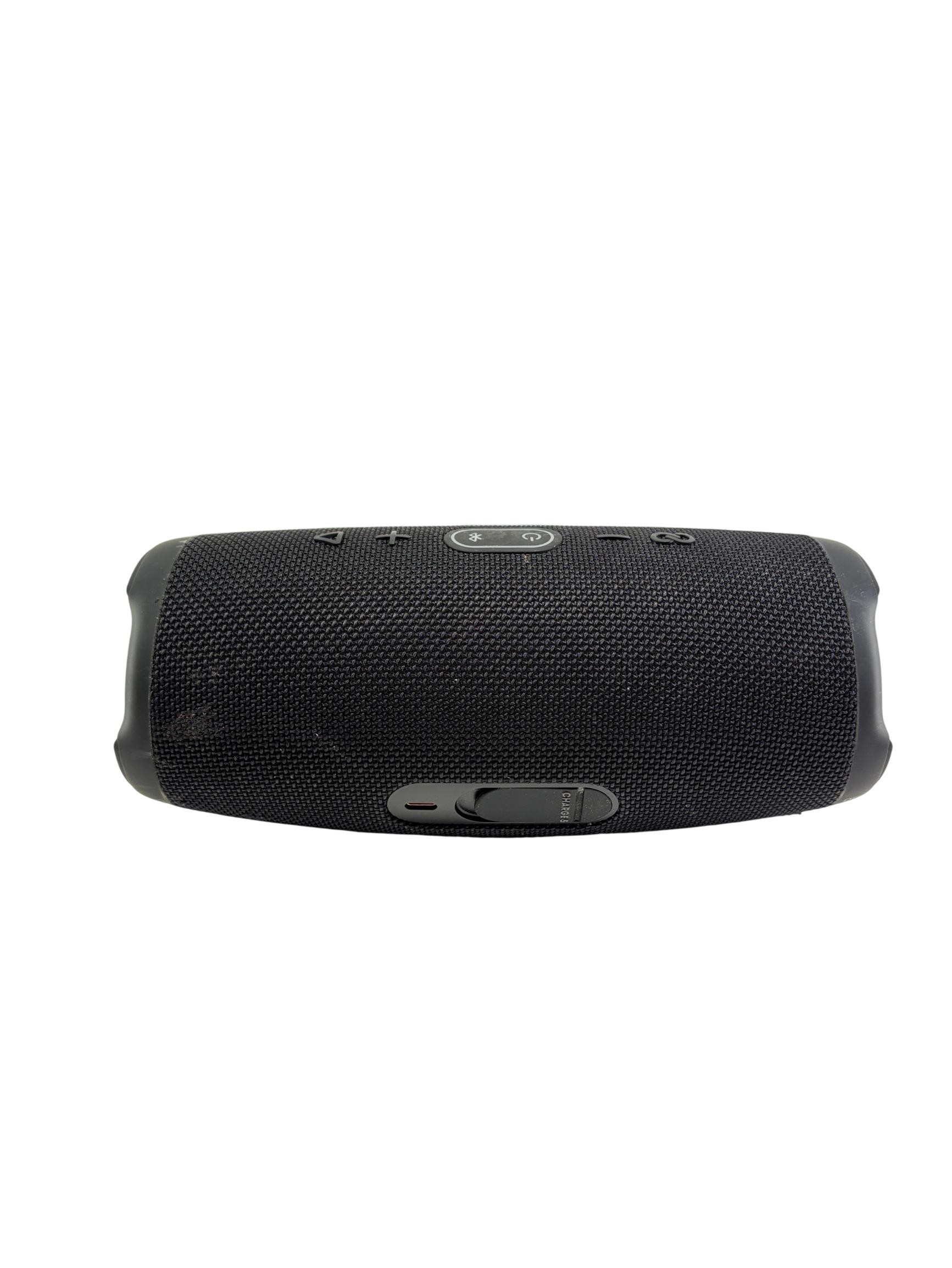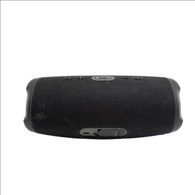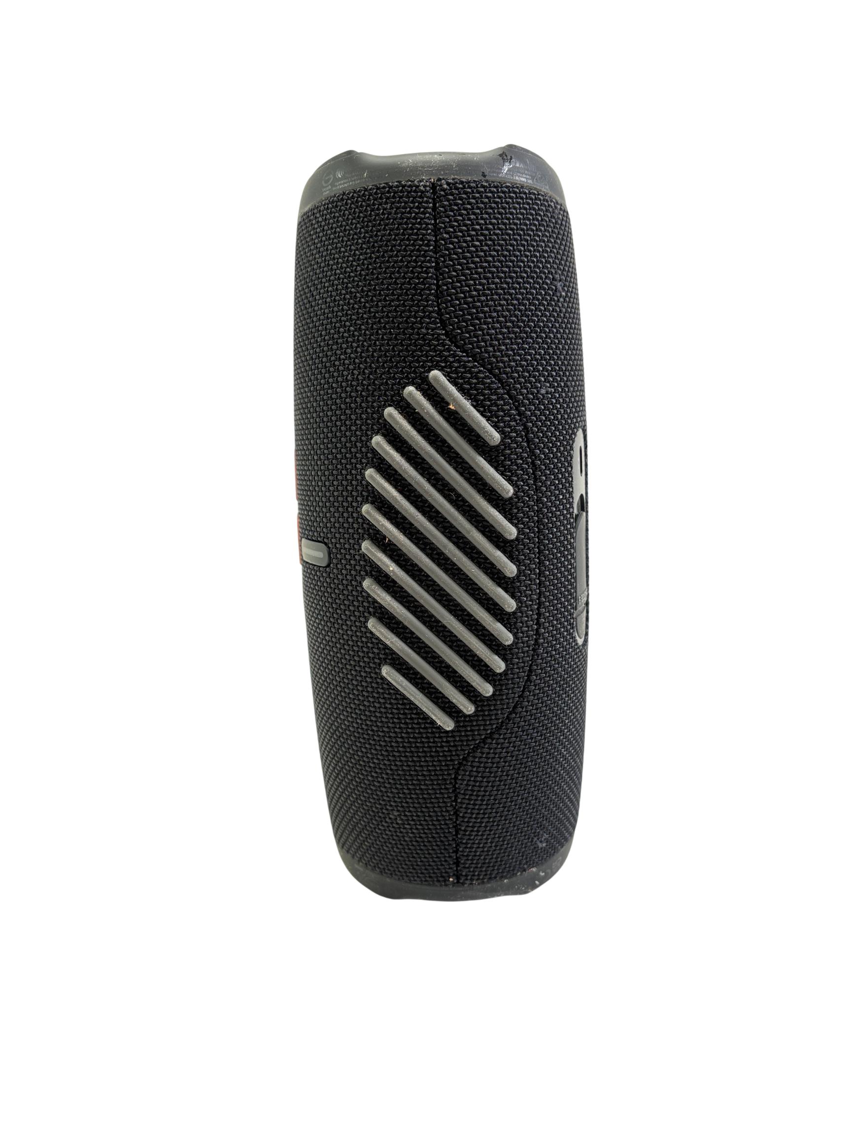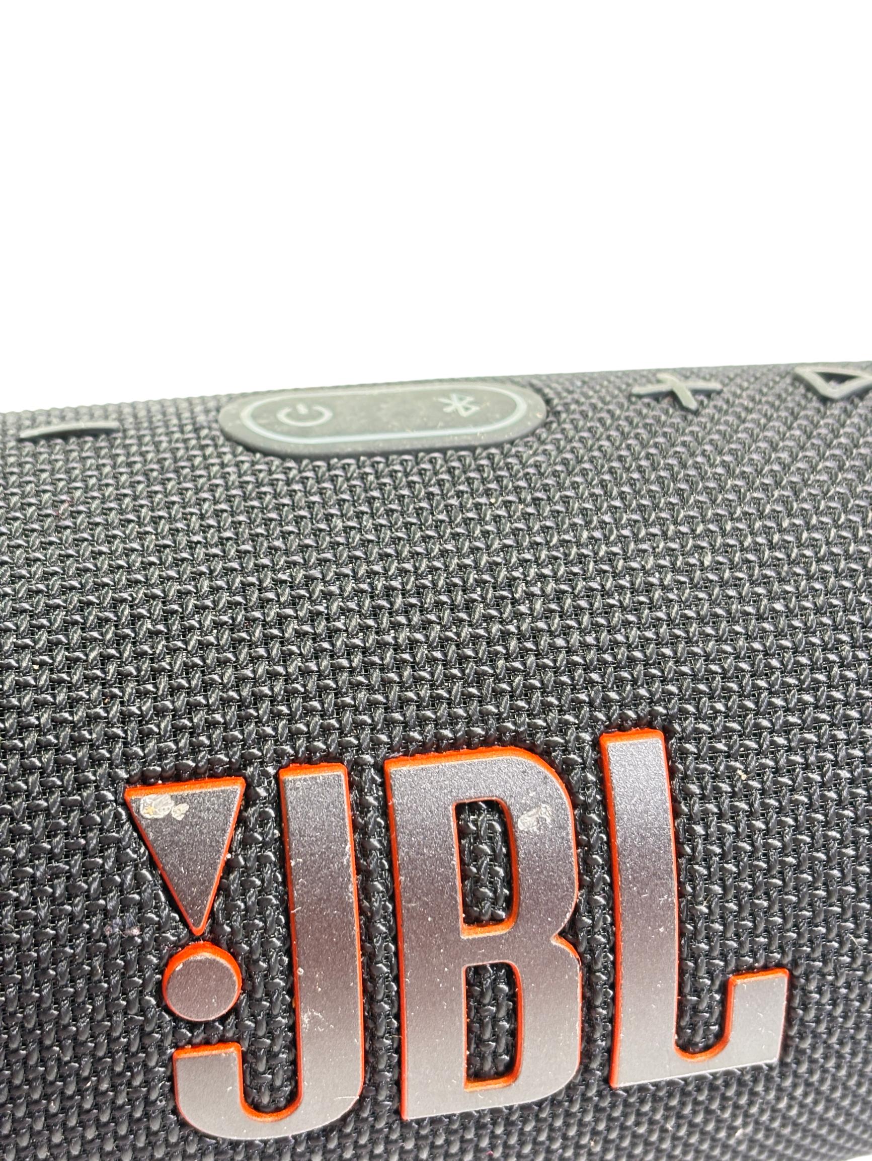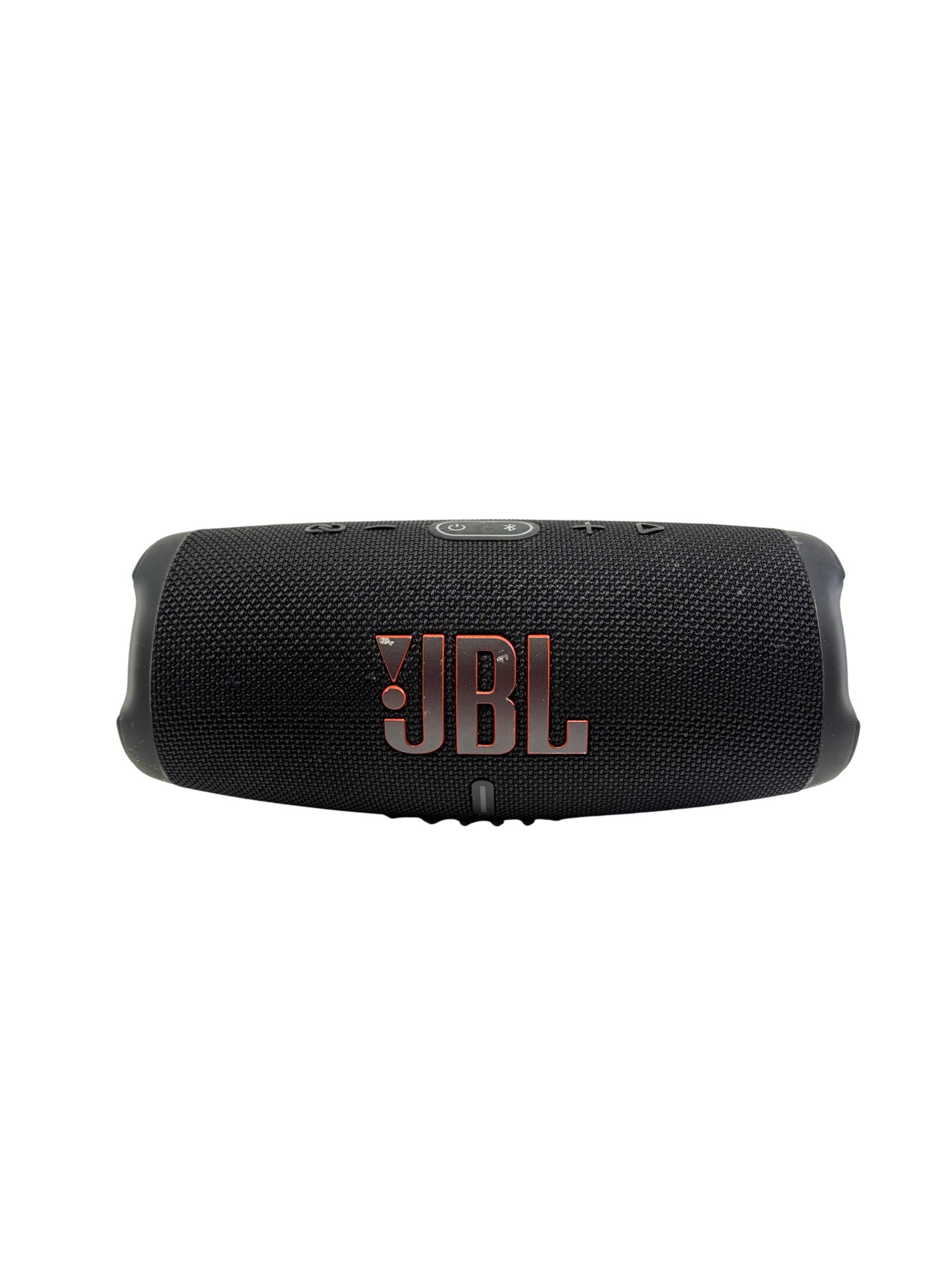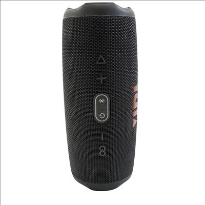 JBL Charge 5 Portable Waterproof Bluetooth Speaker in black offers powerful, high-quality sound with bold bass performance. Designed for durability, this speaker features an IP67 waterproof rating, making it ideal for outdoor and indoor use. Its compact design integrates convenient controls and a recognizable logo, combining functionality with sleek aesthetics optimized for on-the-go entertainment.