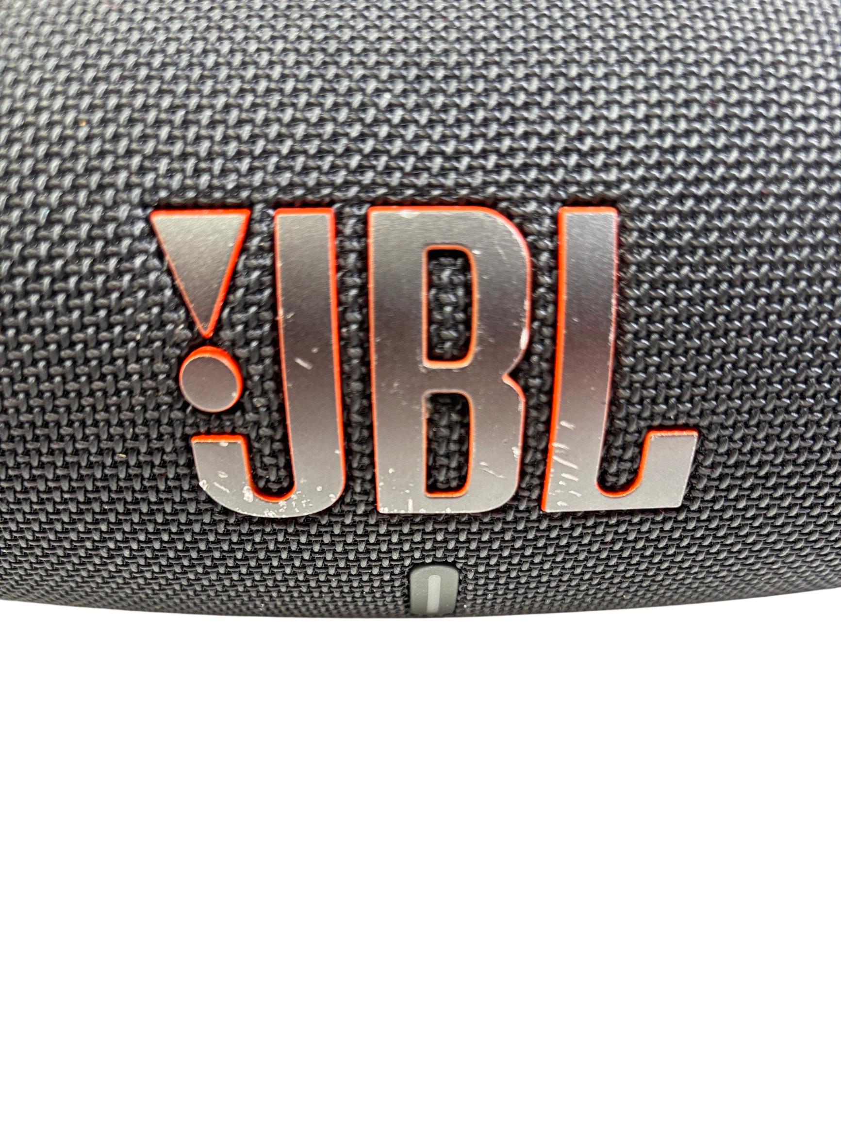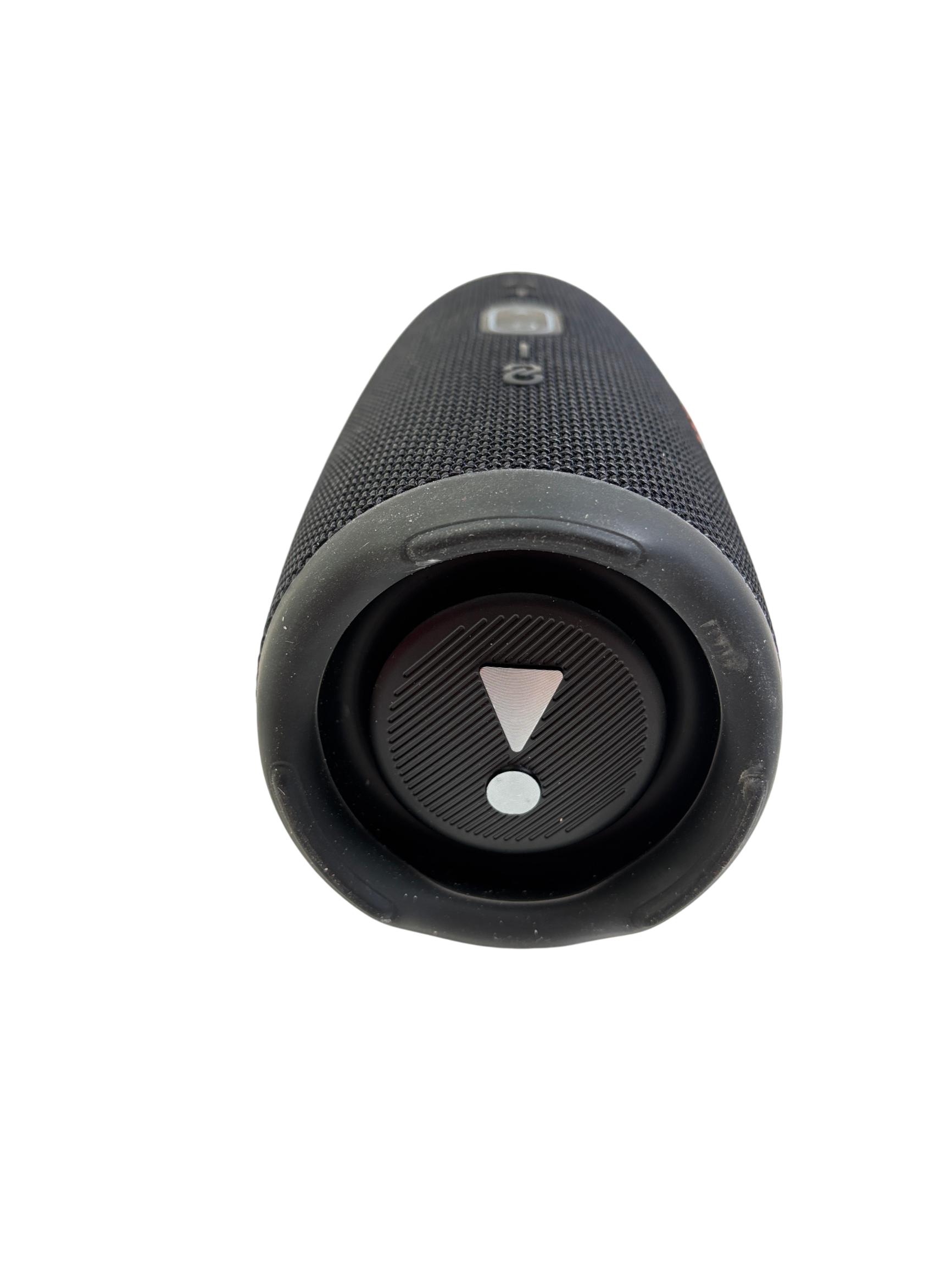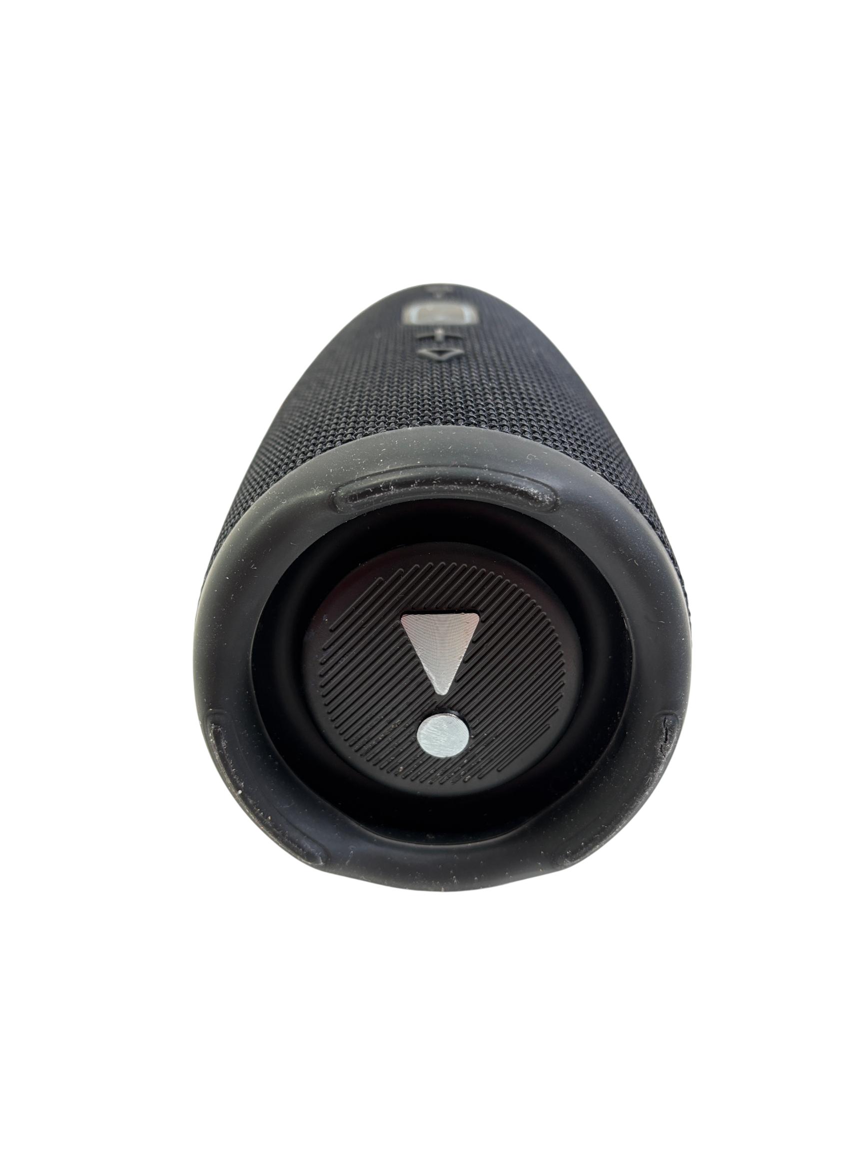 JBL Charge 5 Portable Waterproof Bluetooth Speaker in black delivers powerful, bold sound with deep bass and clear highs. Designed for durability, this speaker features a waterproof construction and an easy-to-use interface with tactile buttons and distinct design elements that make it ideal for both indoor and outdoor use.