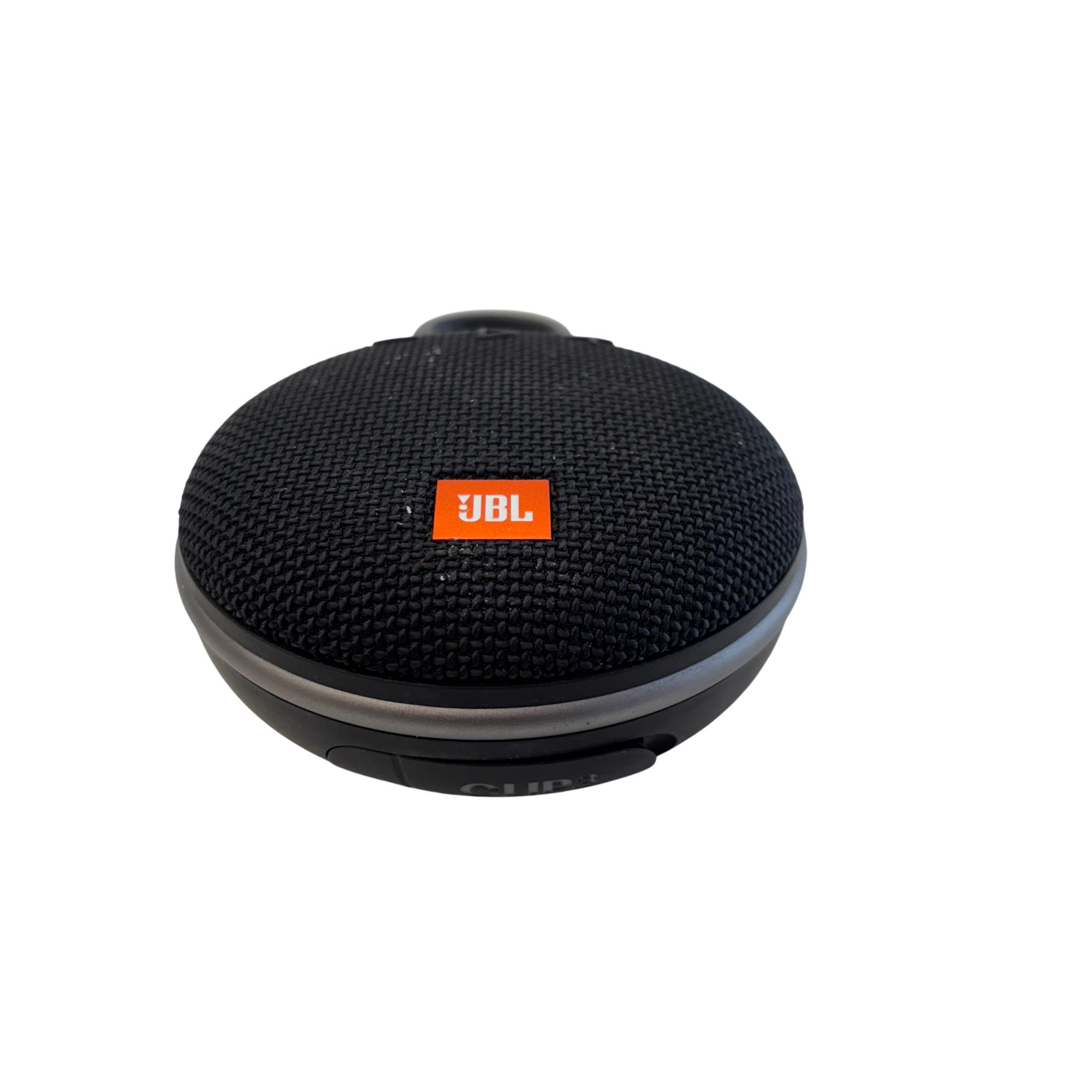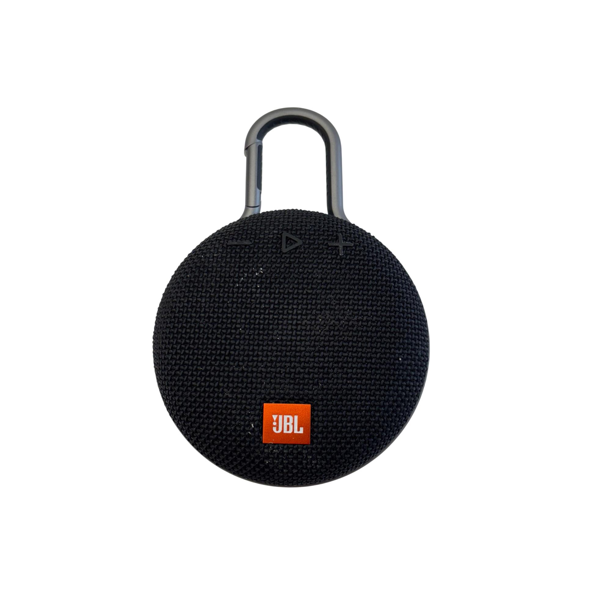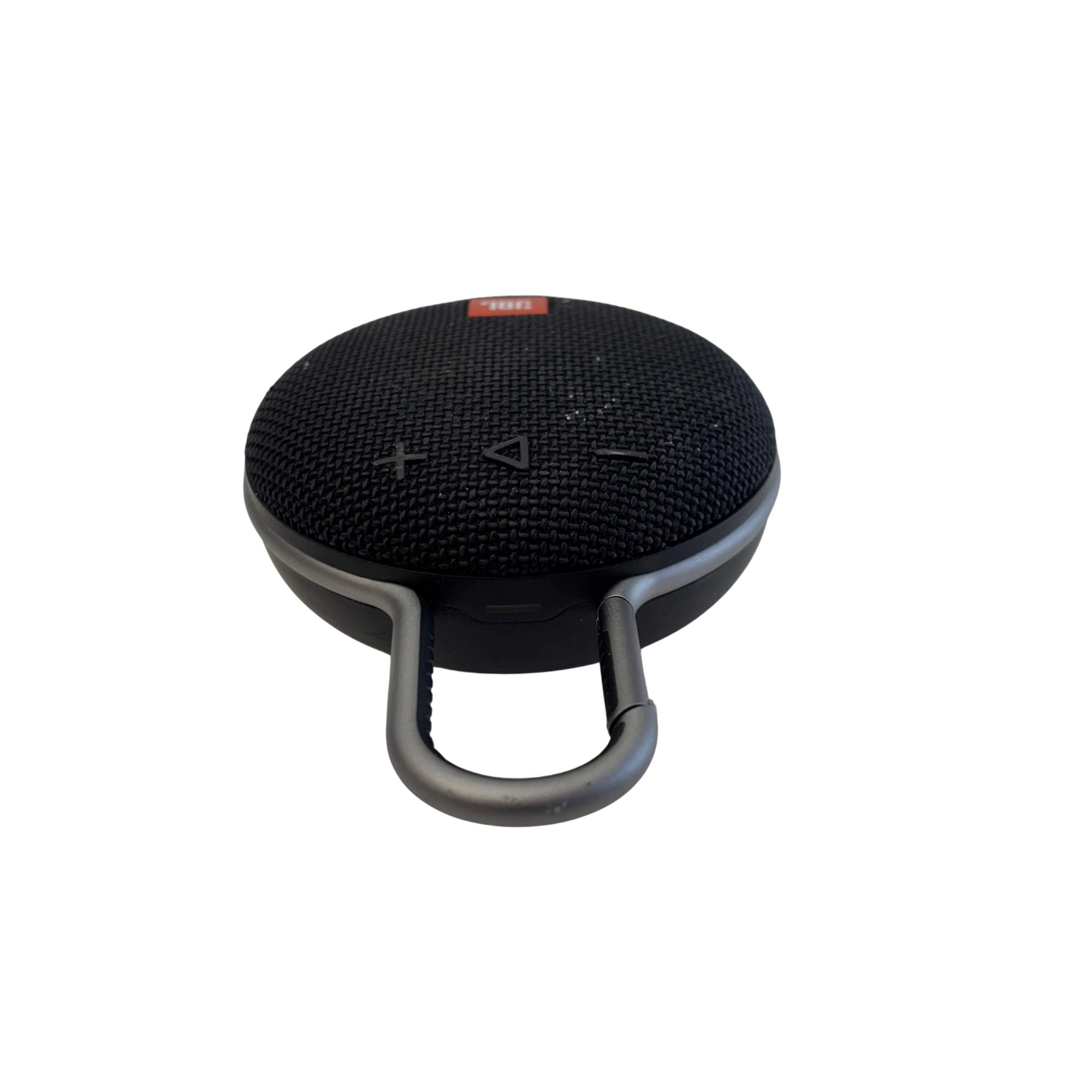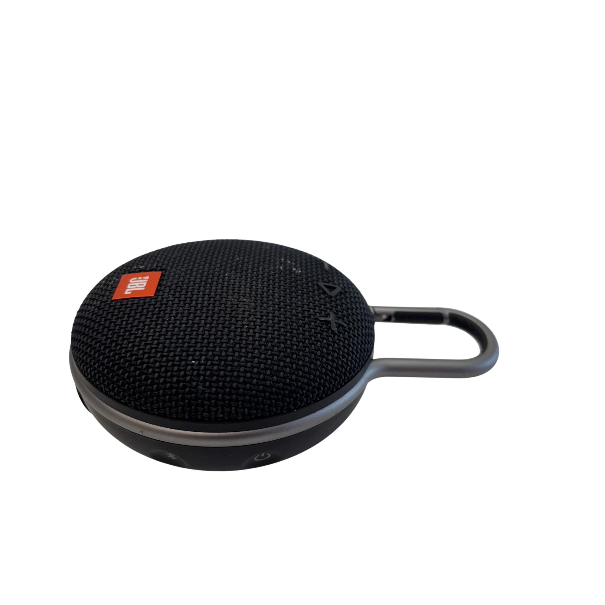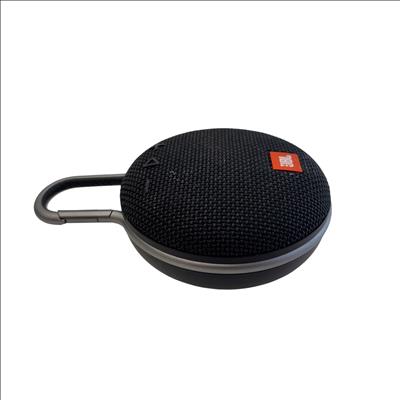 JBL Clip 3 Portable Waterproof Bluetooth Speaker - Black features a compact, round design with a durable metal handle that ensures easy portability. This speaker delivers clear, powerful sound with reliable Bluetooth connectivity and is engineered to resist water, making it ideal for outdoor use and active lifestyles.