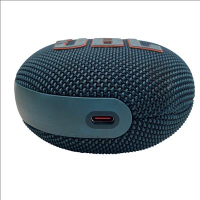 The JBL Clip 5 Blue Portable Waterproof Bluetooth Speaker combines portability and durability in a compact design with an integrated clip for easy attachment to bags or belts. This model features Bluetooth wireless connectivity and IP67 waterproof and dustproof protection, making it ideal for outdoor adventures or everyday use. The speaker delivers clear, powerful sound in a rugged fabric and plastic housing.