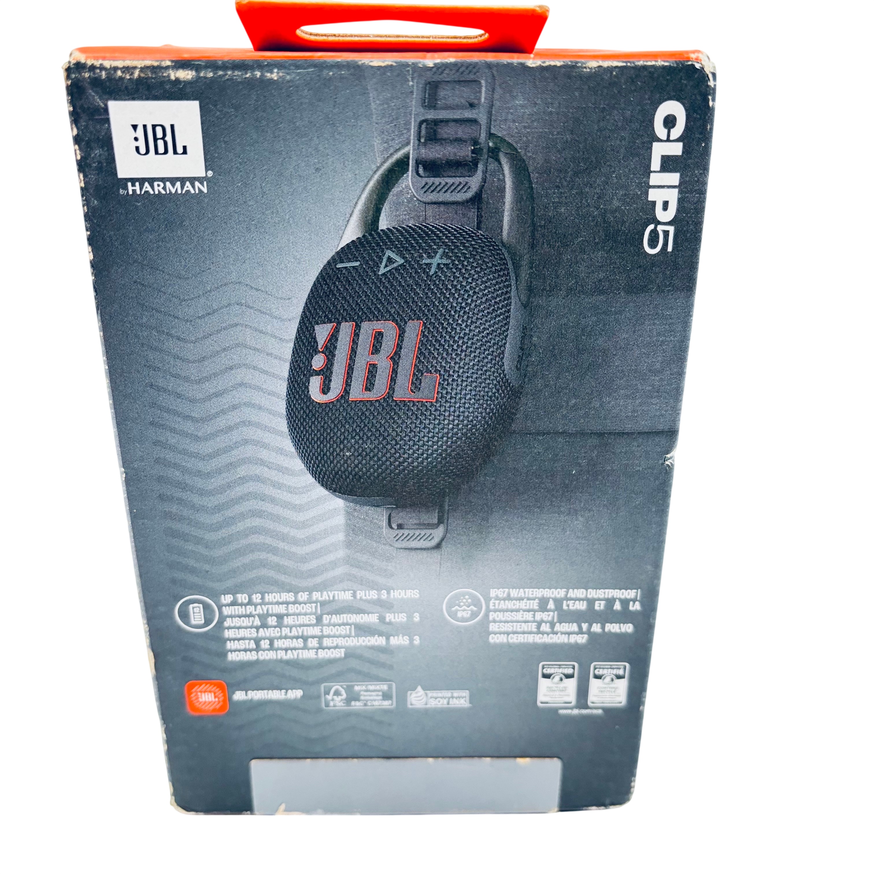 The JBL Clip 5 Portable Bluetooth Speaker delivers powerful 7W RMS sound with a frequency response of 95 Hz to 20 kHz. Featuring Bluetooth 5.3 for seamless wireless connectivity and an IP67 rating, this speaker is both waterproof and dustproof, making it ideal for outdoor adventures. The built-in carabiner clip allows easy attachment to bags or belts, while up to 12 hours of battery life ensures extended listening. With Auracast technology, you can pair multiple speakers for a richer stereo experience, making the JBL Clip 5 a versatile and durable companion for music on the go.