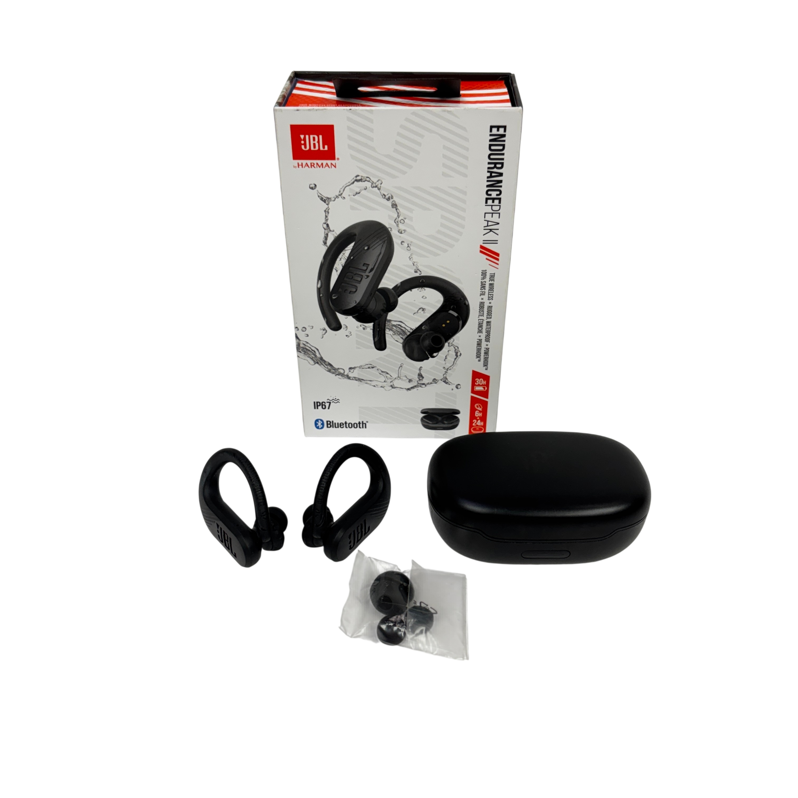 These JBL ENDURANCE PEAK II wireless in-ear headphones offer an exceptional audio experience with IP67 water resistance. Designed for active lifestyles, these headphones feature secure fit ear hooks and Bluetooth connectivity for seamless music streaming. The included charging case ensures your headphones are always ready to go, making them perfect for workouts and outdoor adventures.