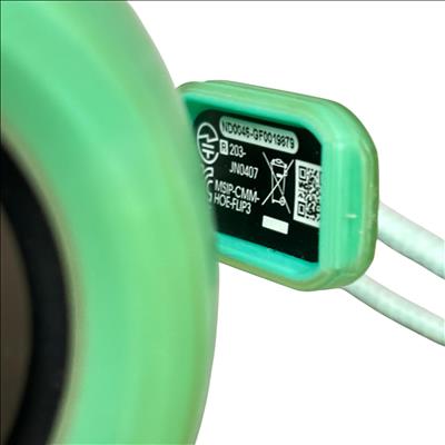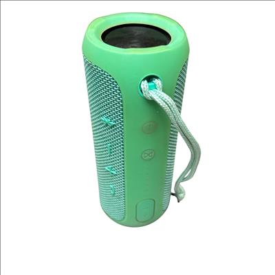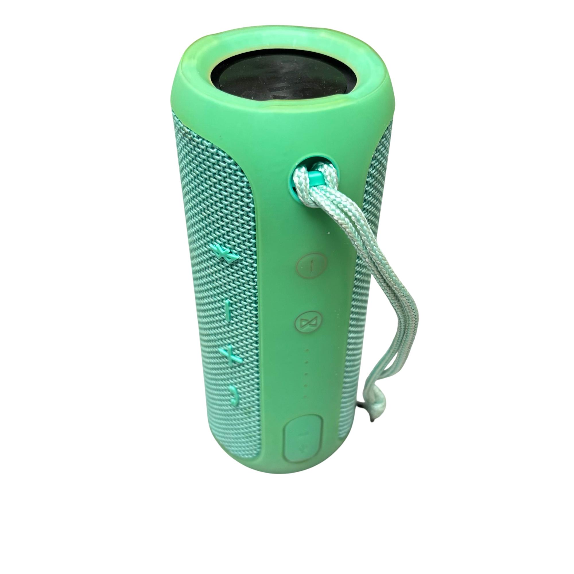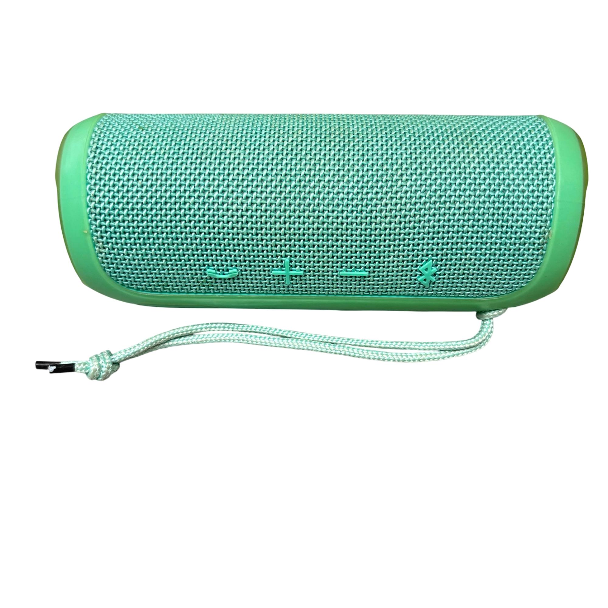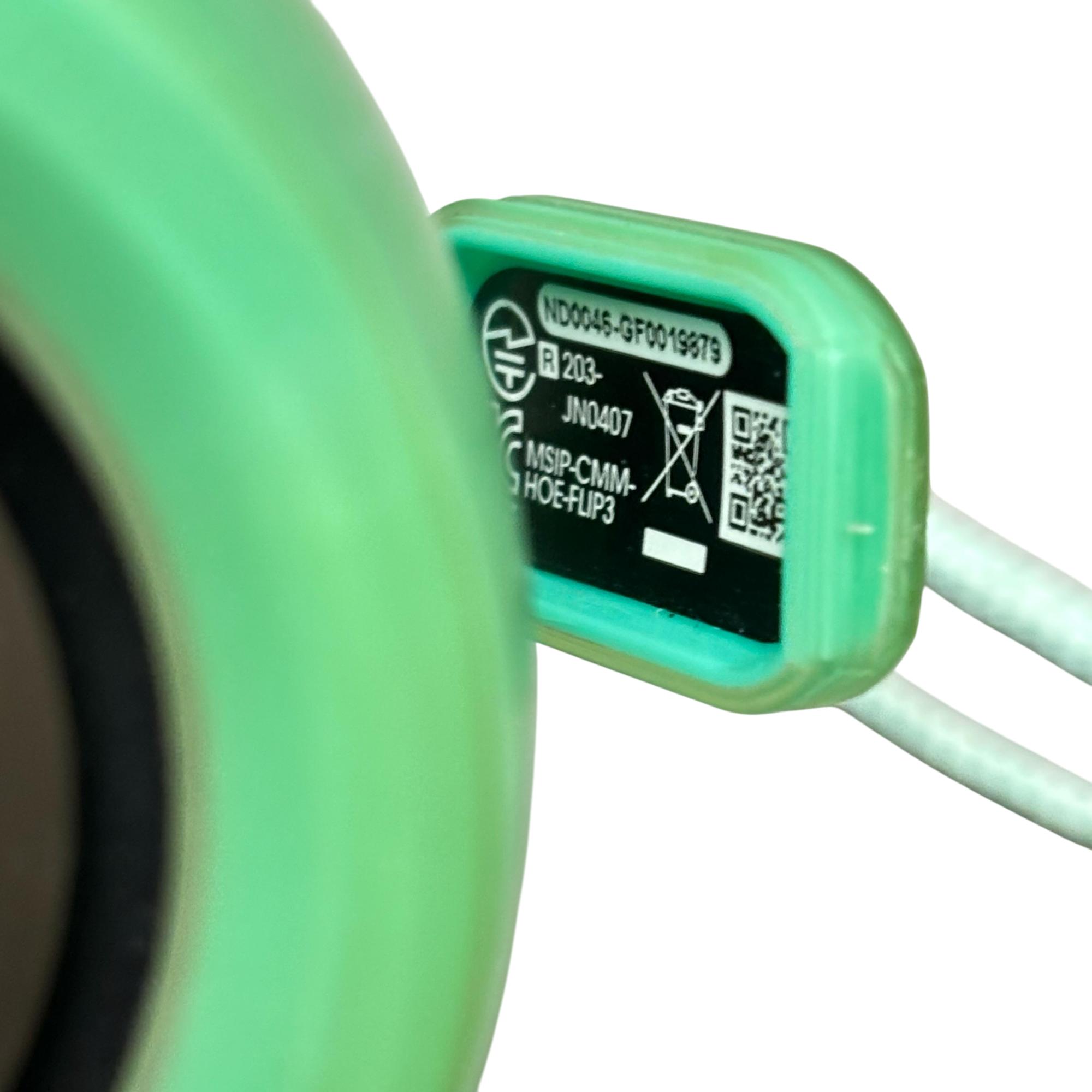 The JBL Flip 3 Portable Bluetooth Speaker in green delivers powerful stereo sound with its robust drivers housed in a compact, cylindrical design. This wireless speaker features a durable build ideal for both indoor and outdoor use, offering seamless Bluetooth connectivity for easy pairing with a variety of devices.