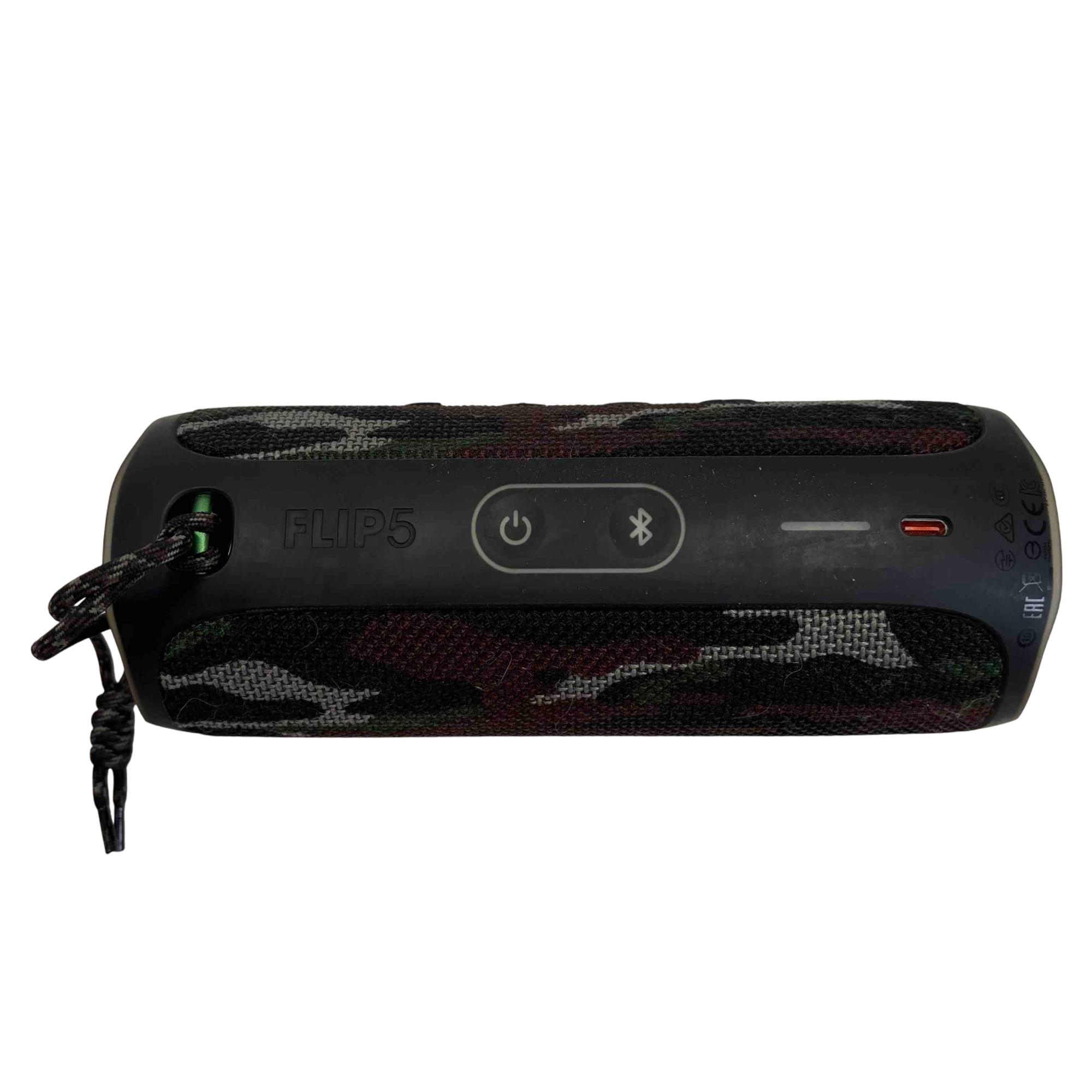 Experience powerful sound in a compact package with the JBL Flip 5 Portable Waterproof Bluetooth Speaker . Designed in a rugged camouflage finish, this wireless speaker delivers rich bass and is waterproof to keep the music going wherever you are. Perfect for outdoor adventures or home entertainment, the Flip 5 combines durability and crystal-clear audio for your on-the-go lifestyle.