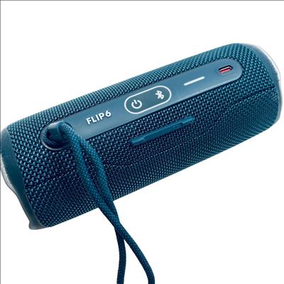 JBL Flip 6 Portable Bluetooth Speaker in blue delivers powerful, high-quality sound with deep bass and clear highs in a compact, waterproof design. Its durable build and wireless connectivity make it ideal for both indoor and outdoor use, ensuring reliable performance wherever you go.
