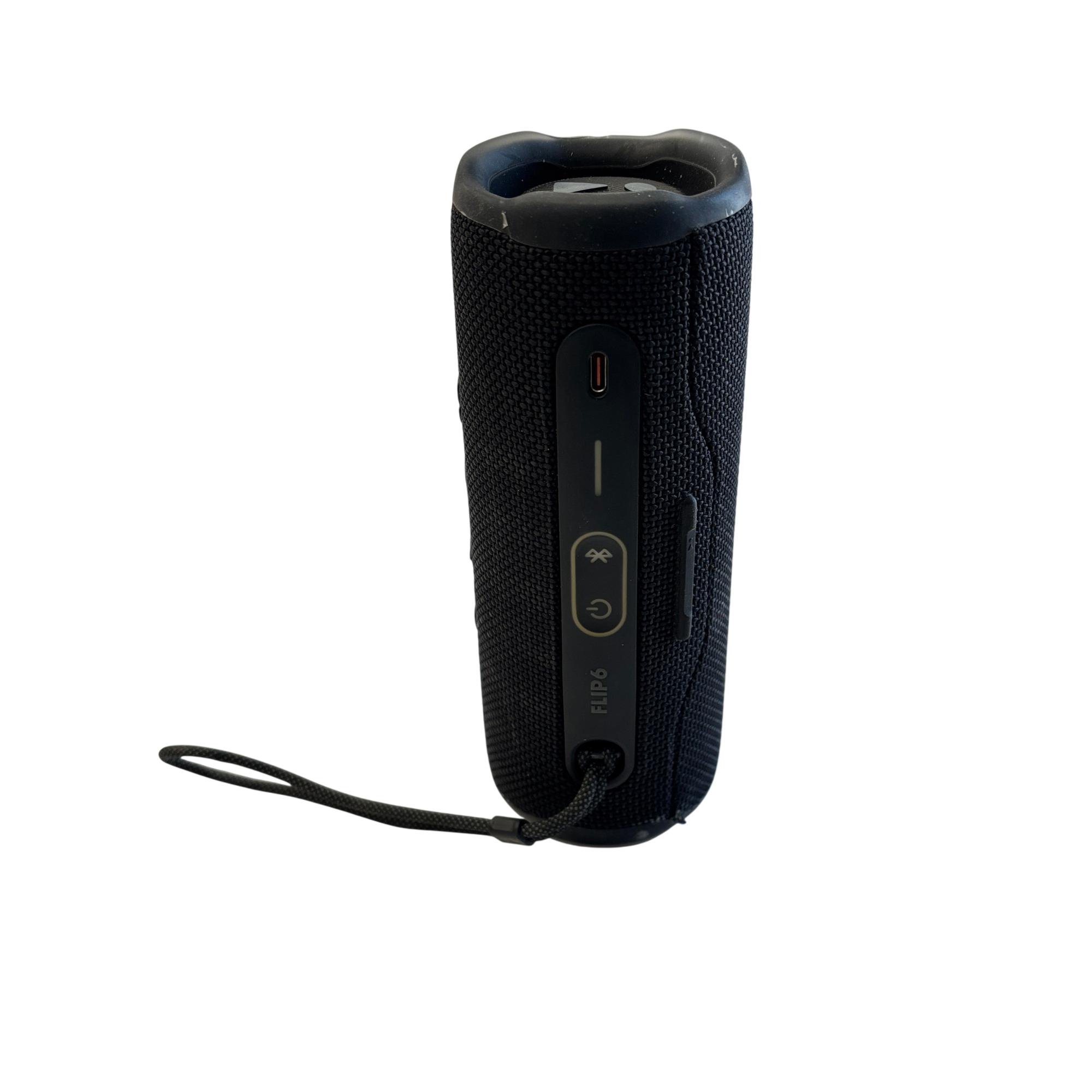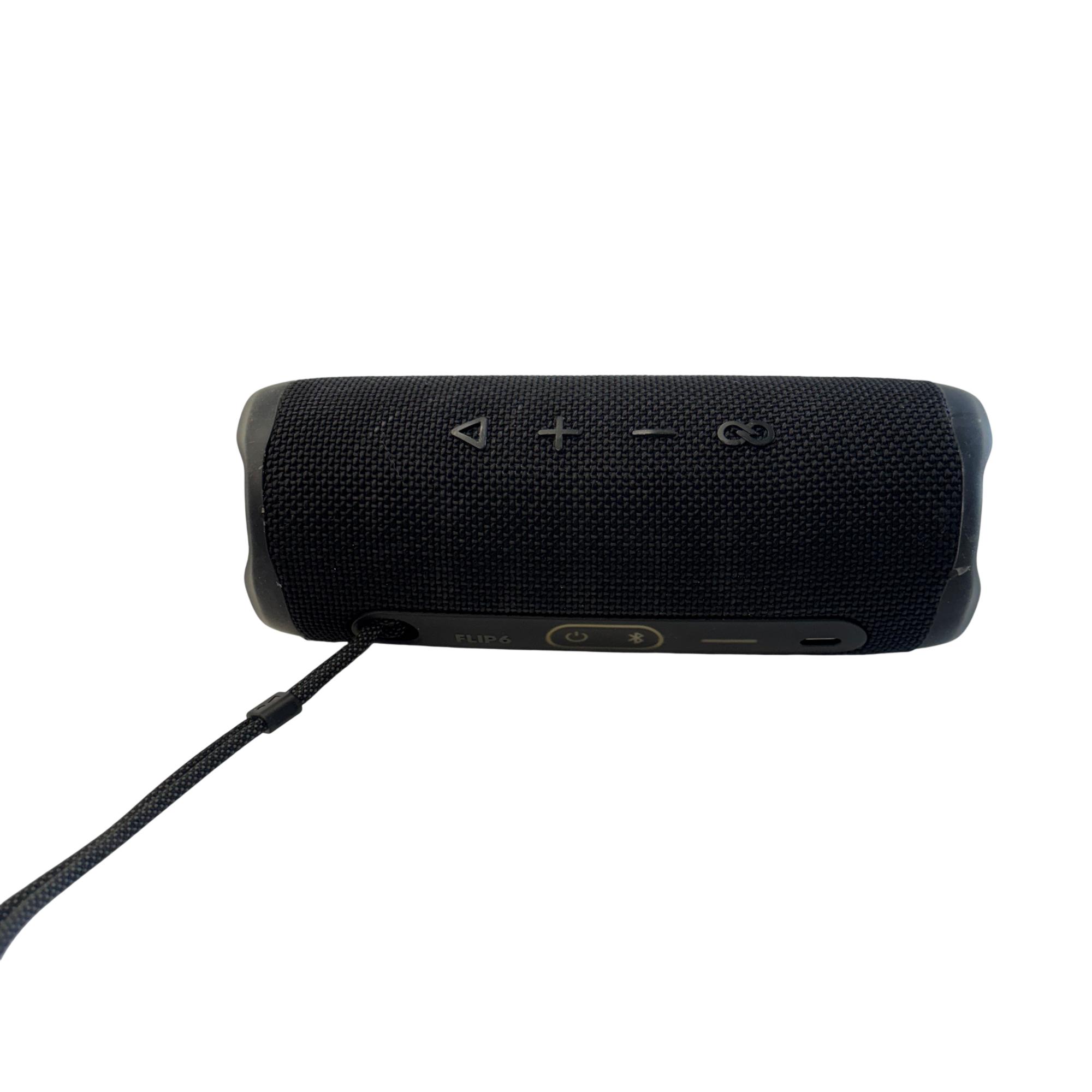 JBL Flip 6 Portable Waterproof Bluetooth Speaker (Black) delivers powerful 20W audio performance with enhanced bass and clear highs, ideal for outdoor and indoor use. This durable speaker features a sleek black design with waterproof construction, making it perfect for active lifestyles and poolside entertainment.
