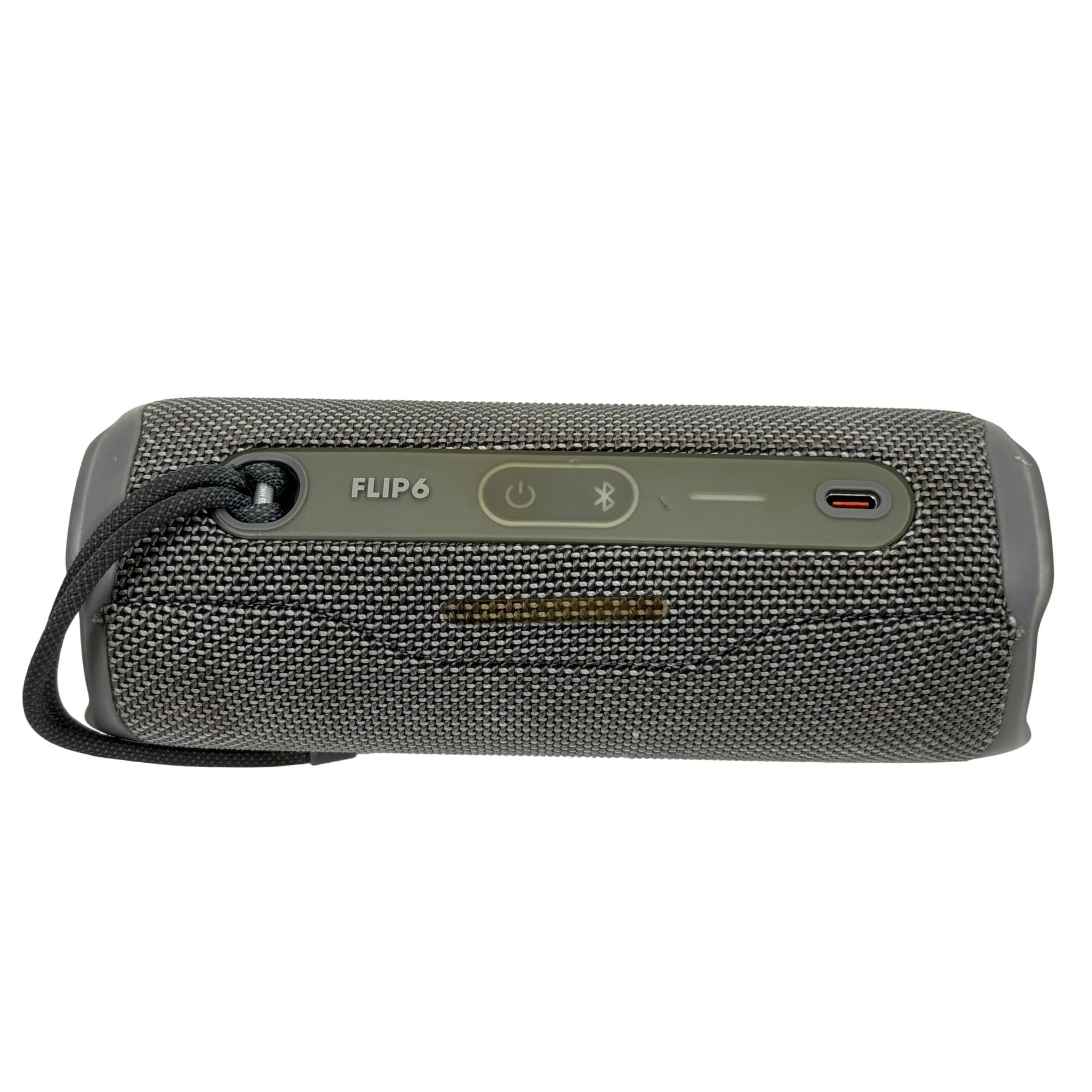 The JBL Flip 6 Portable Waterproof Bluetooth Speaker in gray delivers powerful, high-quality sound with deep bass and clear highs. Designed for durability, this compact speaker features a waterproof build and Bluetooth connectivity, making it ideal for on-the-go listening and outdoor use.