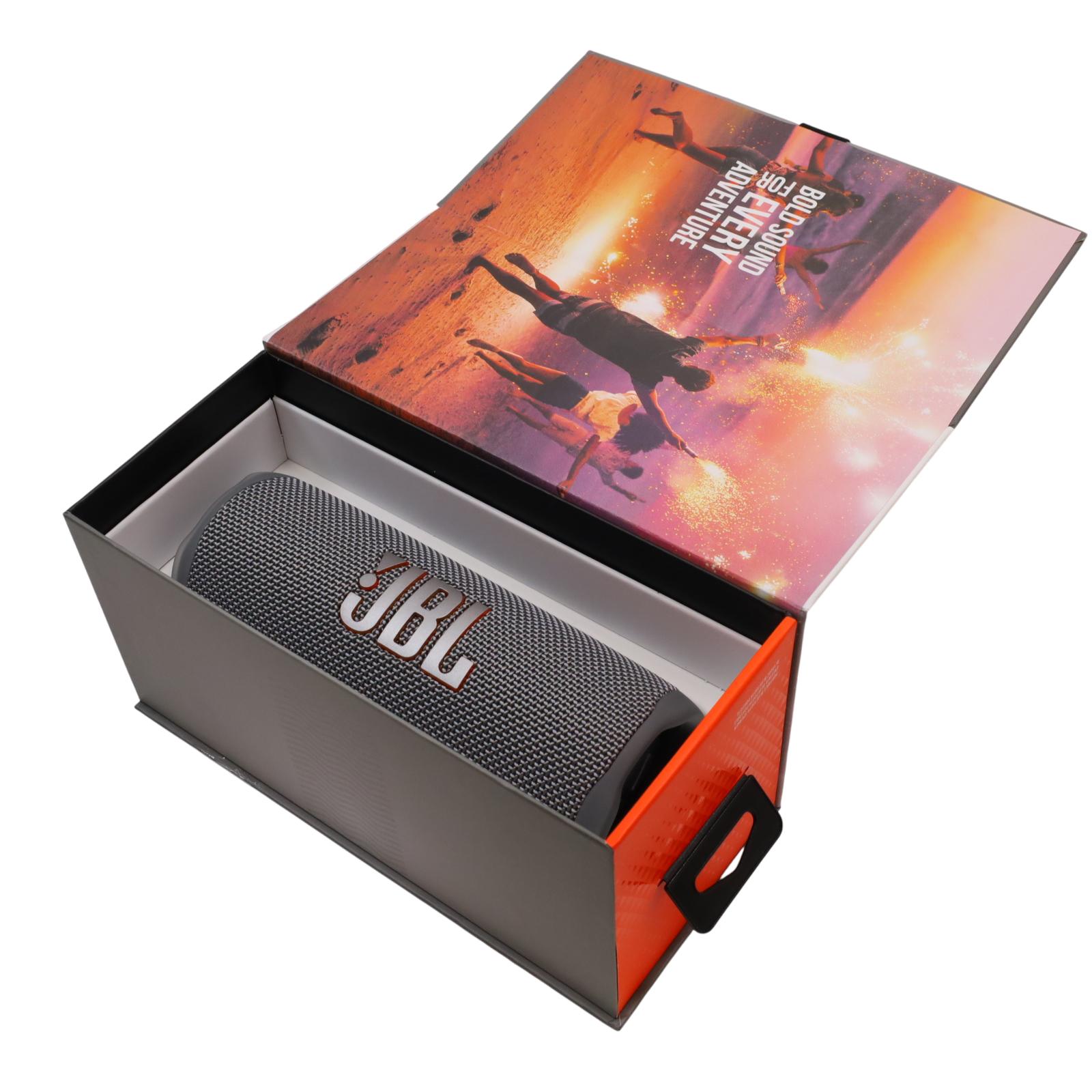 Bold sound for every adventure. Your adventure. Your soundtrack. The bold new JBL Flip 6 delivers powerful JBL Original Pro Sound with exceptional clarity thanks to its 2-way speaker system consisting of an optimized racetrack-shaped driver, separate tweeter, and dual pumping bass radiators. This big-sounding, yet easy to carry speaker is waterproof and dustproof, so you can take it anywhere in any weather.