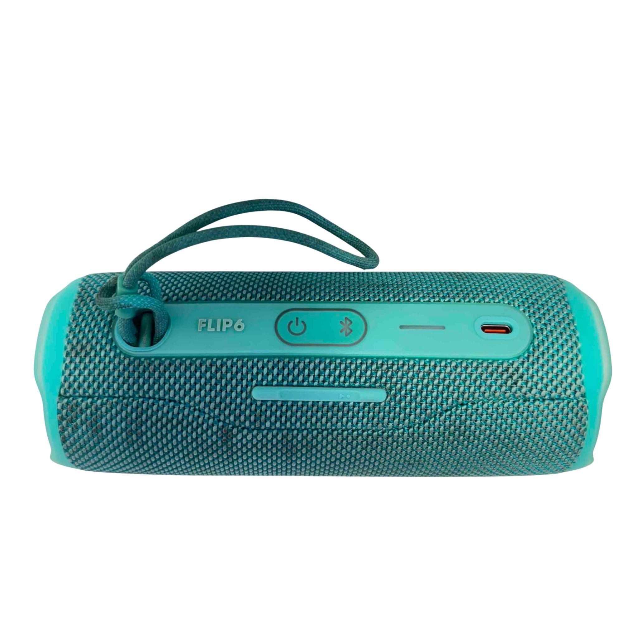 The JBL Flip 6 Portable Waterproof Bluetooth Speaker in teal delivers powerful, clear sound with enhanced bass for an immersive audio experience. Designed for outdoor and indoor use, this durable speaker features a rugged build and a convenient strap for easy carrying. Its waterproof design ensures reliable performance in various environments, making it ideal for travel and everyday use.