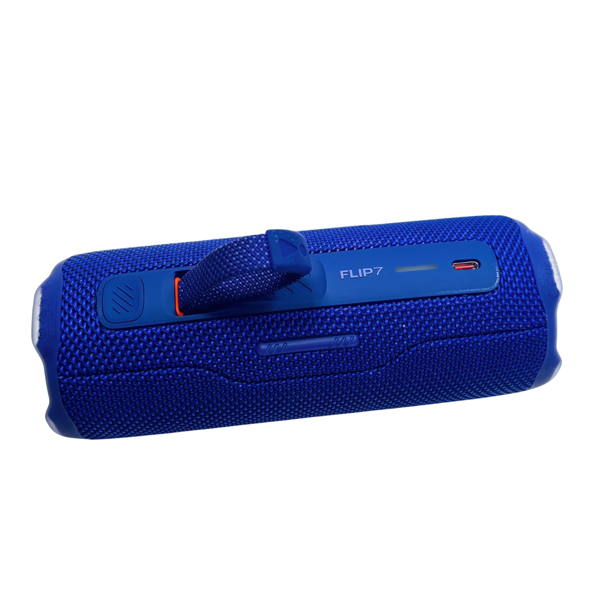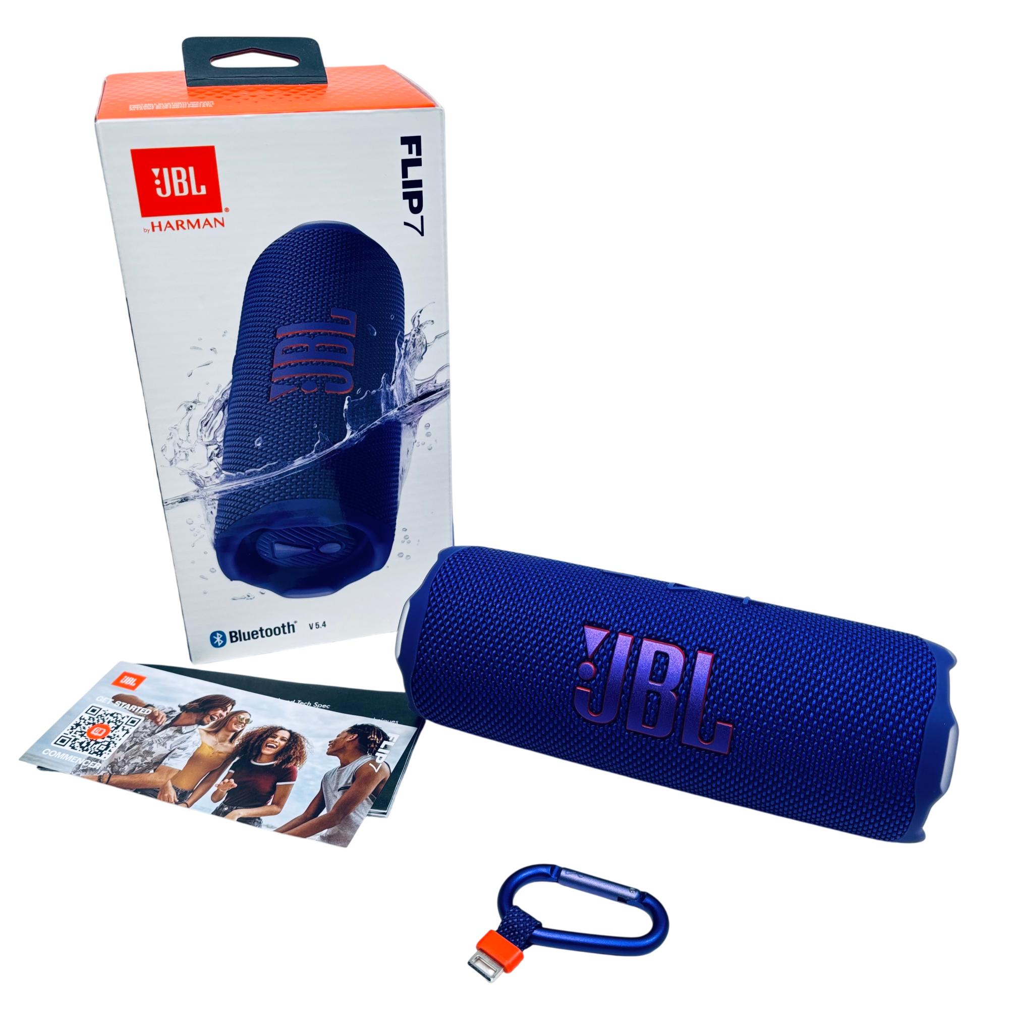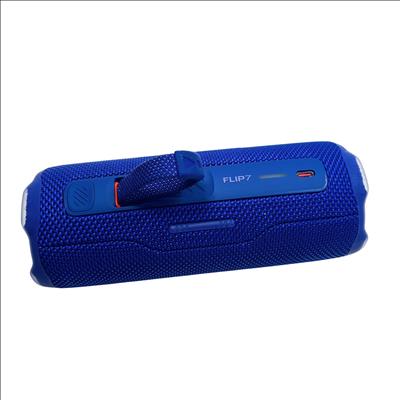 JBL Flip 7 Portable Waterproof Bluetooth Speaker offers powerful, high-quality audio with a sleek blue design featuring a convenient handle and durable strap for easy carrying. Equipped with Bluetooth 5.4 technology, this compact speaker delivers clear sound and enhanced connectivity, making it perfect for outdoor use and on-the-go listening.
