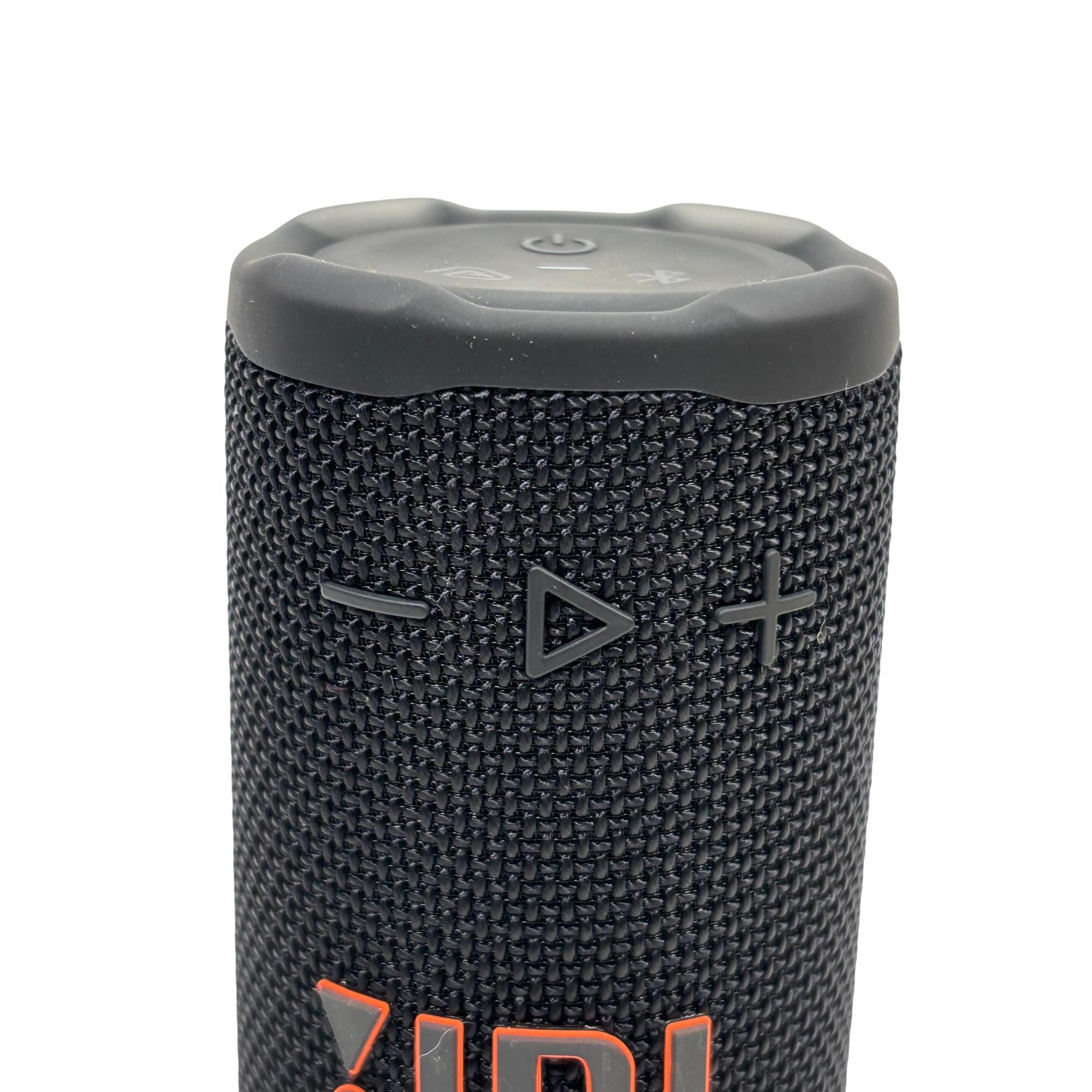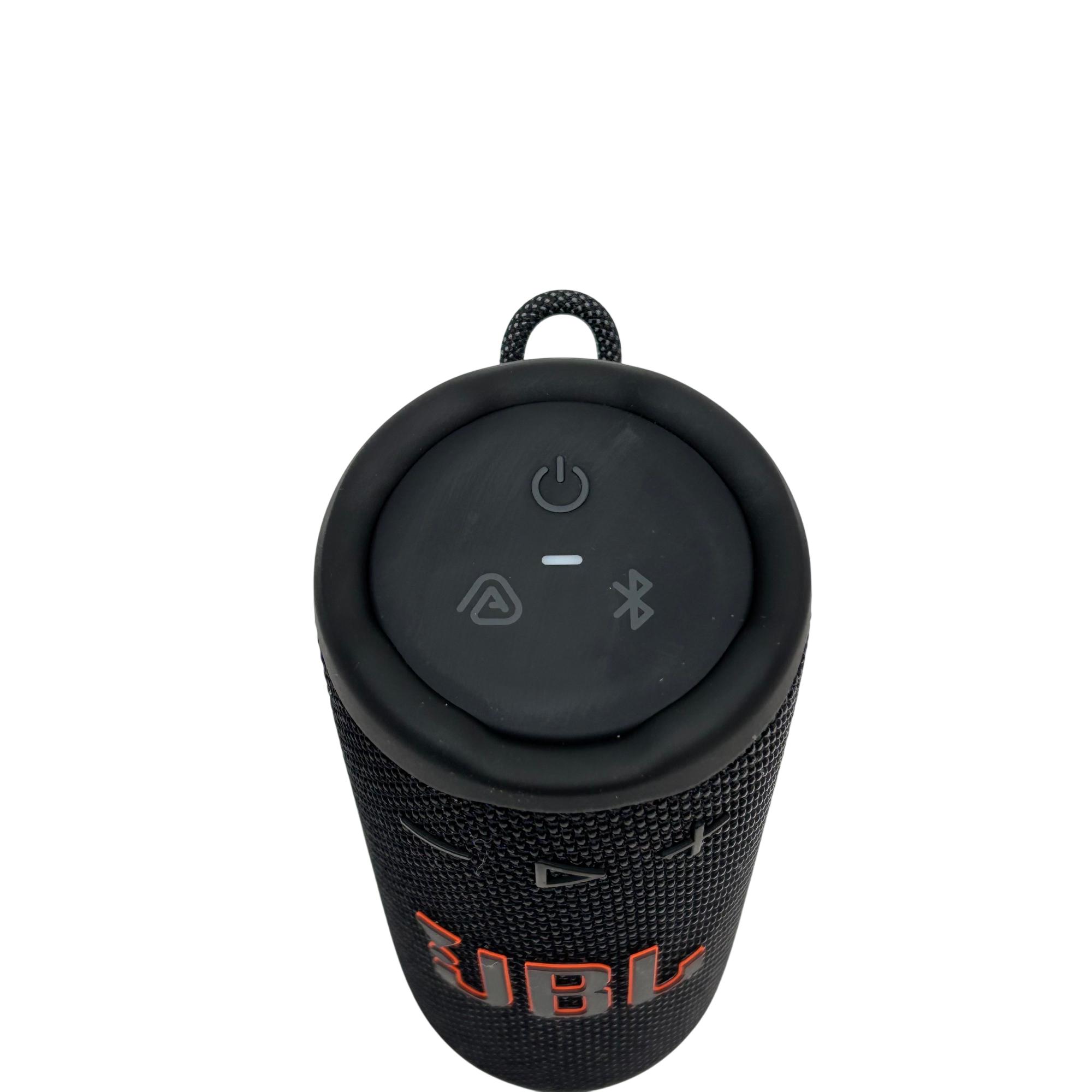 JBL Grip Compact Portable Bluetooth Speaker delivers powerful JBL sound in a rugged and compact design perfect for on-the-go use. Featuring a bold black exterior with red accents and a simple control interface, this speaker offers reliable wireless connectivity and durable construction suited for active lifestyles.