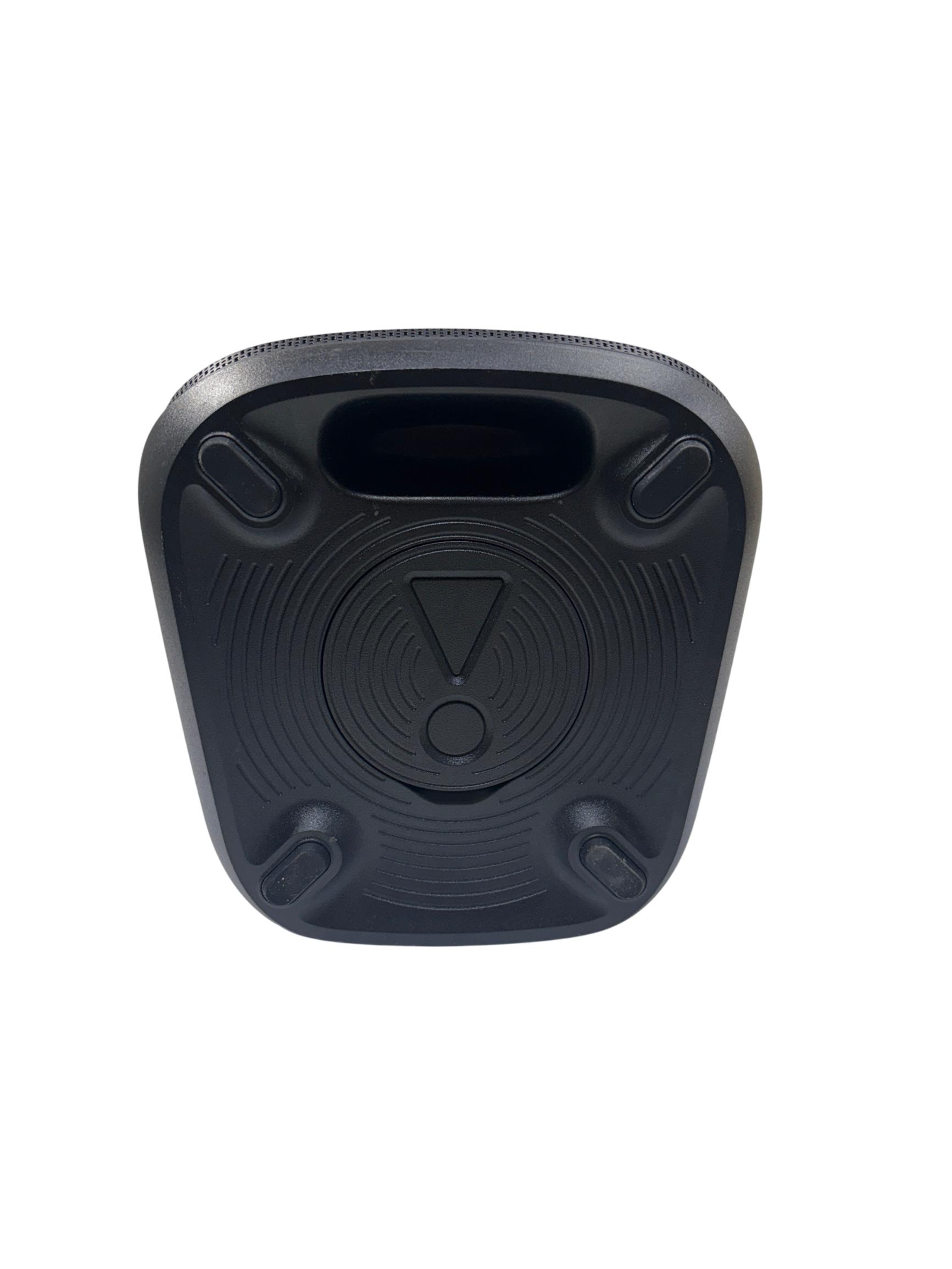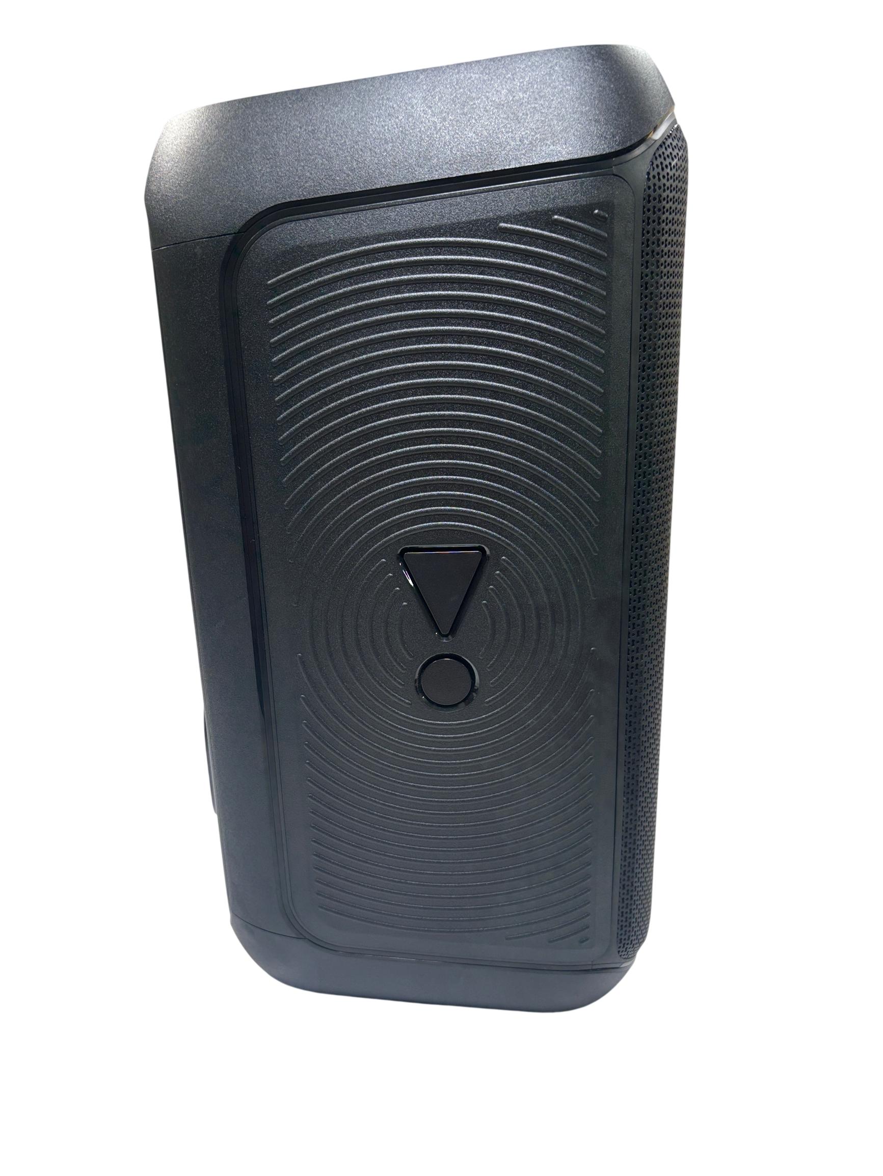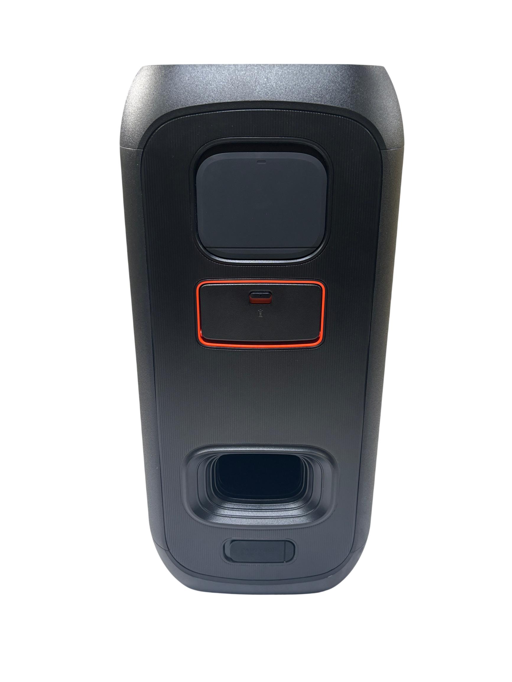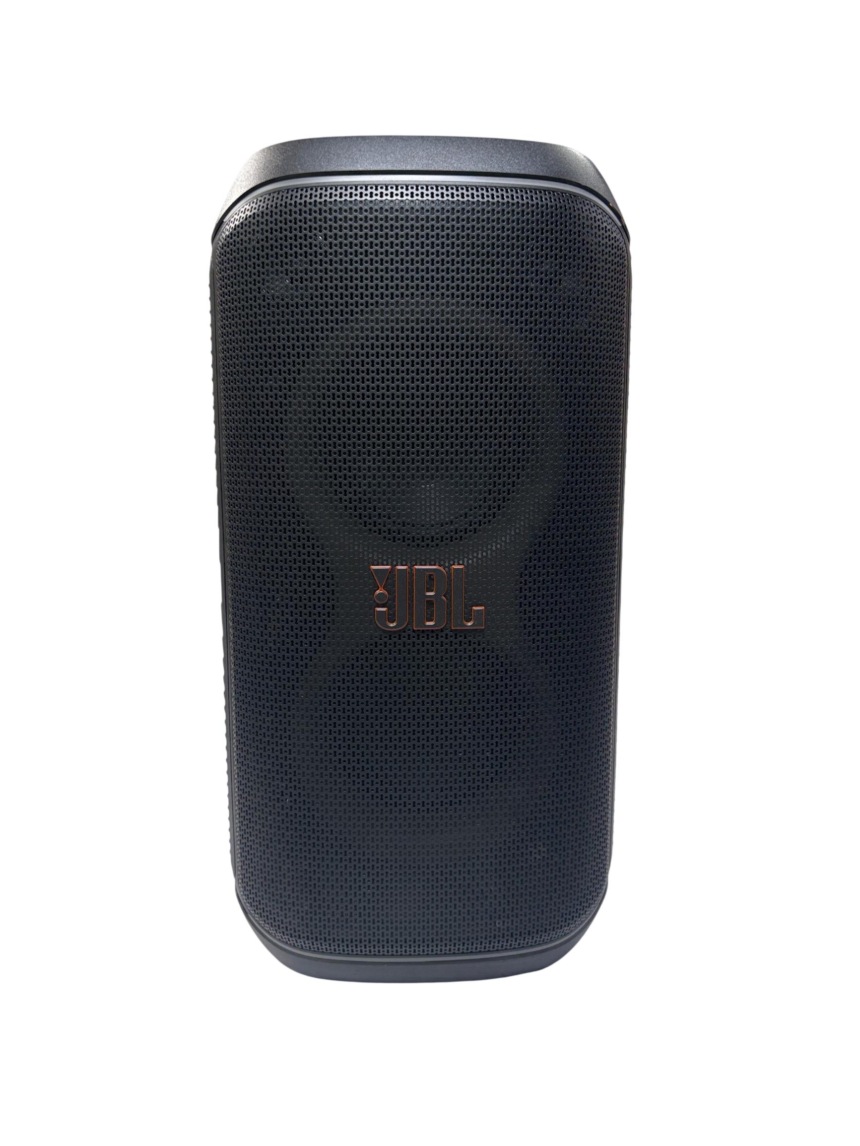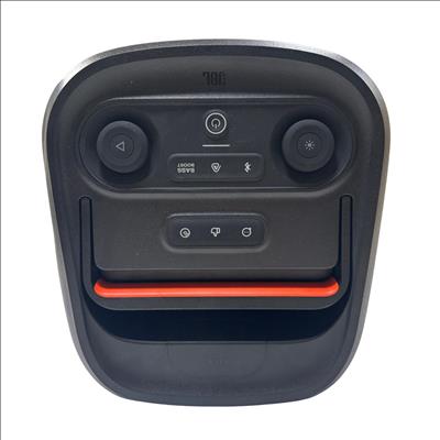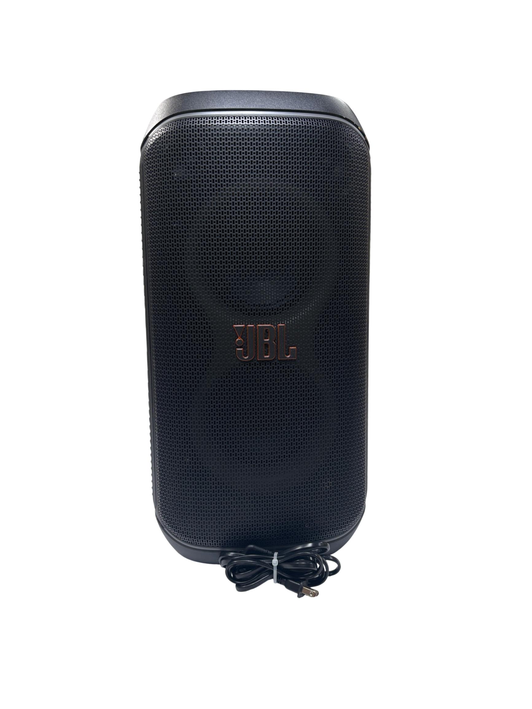A portable Bluetooth speaker designed to enhance any gathering with its sound and visual effects. It features JBL Pro Sound for clear and dynamic audio with emphasized bass. An integrated light show provides visual accompaniment with starry lights, light trails, and strobe effects that synchronize with the music. The speaker supports Bluetooth streaming and includes inputs for microphones and guitars, allowing for diverse audio sources. It is designed for portability with a folding handle and features splash-proof construction for use in various environments. Multiple units can be paired for a wider soundstage, and control options are available through the JBL PartyBox app.