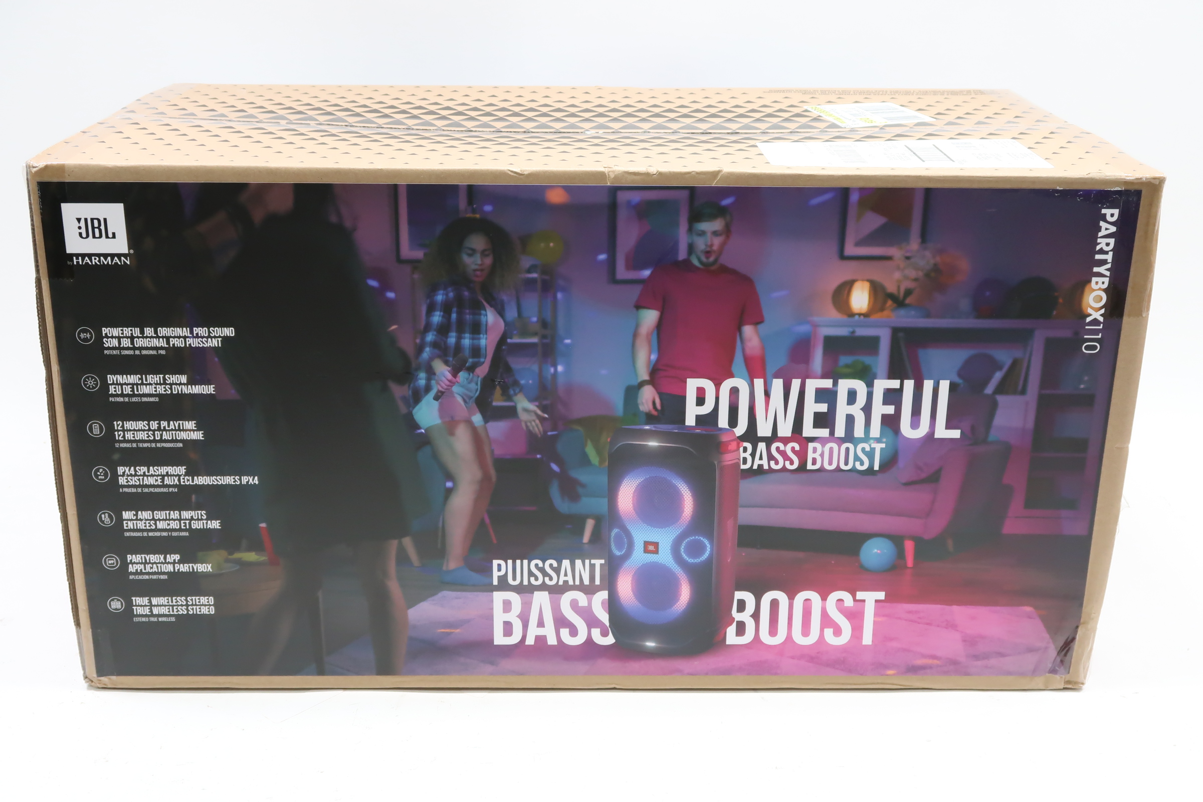 Whether you’re at home or outdoors, the JBL PartyBox 110 makes your music amazing with two levels of deep, adjustable bass and powerful JBL Original Pro Sound.