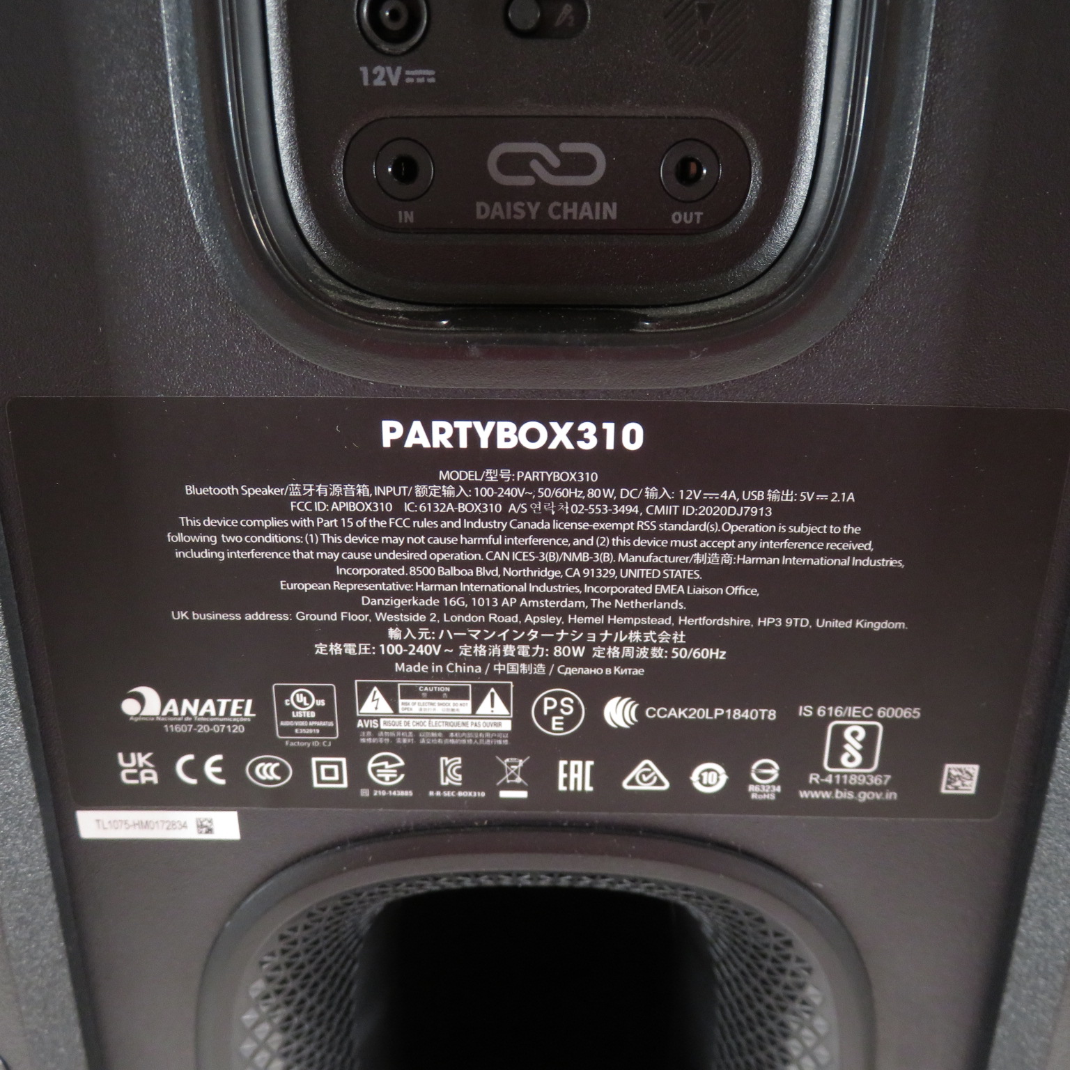Huge sound, dazzling lights and unbelievable power set this speaker apart from the crowd. The JBL PartyBox 310 packs a full party into a transportable, splashproof sound machine like no other. Turn up your favorite playlists anywhere, from get-togethers at home to dance parties on the beach. Bring big party vibes with 240 watts of JBL Pro Sound and a synced light show that grooves to the beat.